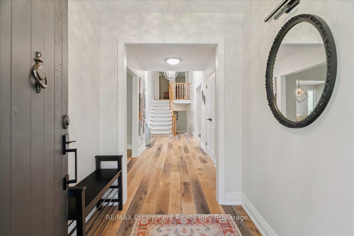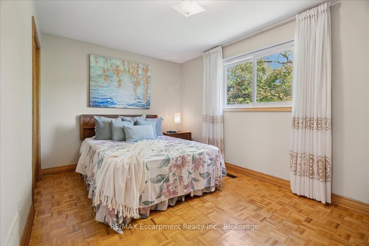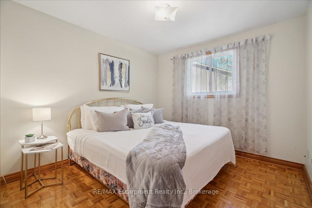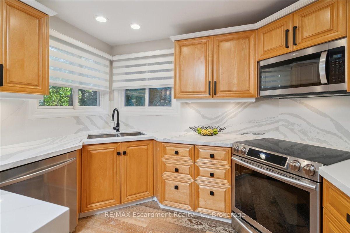 Step into the charm of this beautifully updated four-level backsplit, perfectly situated in the heart of Old Milton. This is where tranquility meets convenience, just a short walk to historic downtown, schools, trails, shopping and more! Backing onto the picturesque 16 Mile Creek and surrounded by lush forest, this home provides a serene retreat right in your own backyard. Inside, you’ll find app 3,300 total square feet of thoughtfully designed living space. The interior boasts a fabulous, functional layout with skylights, large windows, engineered hardwood flooring, and ample storage. The modern eat-in kitchen features sleek quartz counters and backsplash, stainless appliances, a built-in workstation, and stylish lighting. The open flow from the living to dining room is ideal for large gatherings, creating an inviting setting for unforgettable holiday celebrations! A few steps down, the family room is the heartbeat of the home, highlighted by a custom stone feature wall with a cozy gas fireplace, built-in bookshelves to showcase your cherished memories and direct access to the private, pool-sized yard – perfect for outdoor relaxation! This level also includes a fourth bedroom that can easily be used as a den, and ideal for in-laws or a nanny. Additional features include a powder room, laundry room, bonus flex room and access to the side yard. On the upper level, three spacious bedrooms await, including the primary with a private four-piece ensuite and balcony that overlooks stunning natural views… indeed, a tranquil spot to start or end your day. With a total of four bedrooms, four bathrooms, including a versatile den/office, this home offers ample space for family life and remote work. The finished lower level features a custom built 15′ bar, a cedar sauna, a cantina for your preserves and wine, a large crawl space and a 3-piece bath. All this to offer and located on one of the most desireable enclaves in town, this is a rare find and your dream come true!