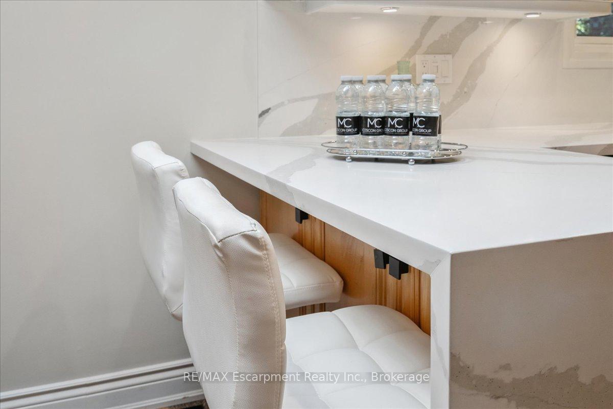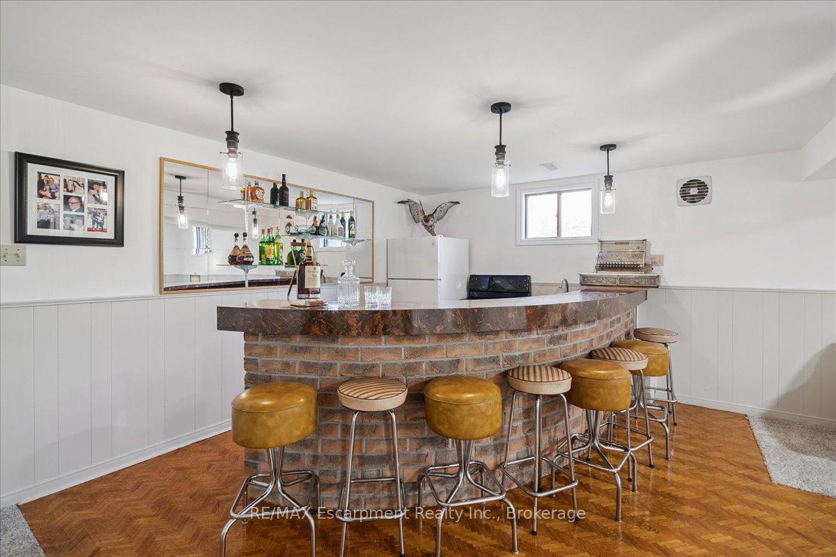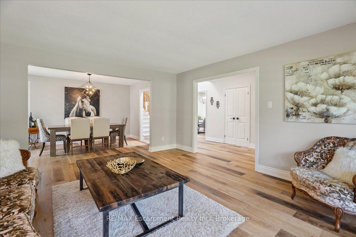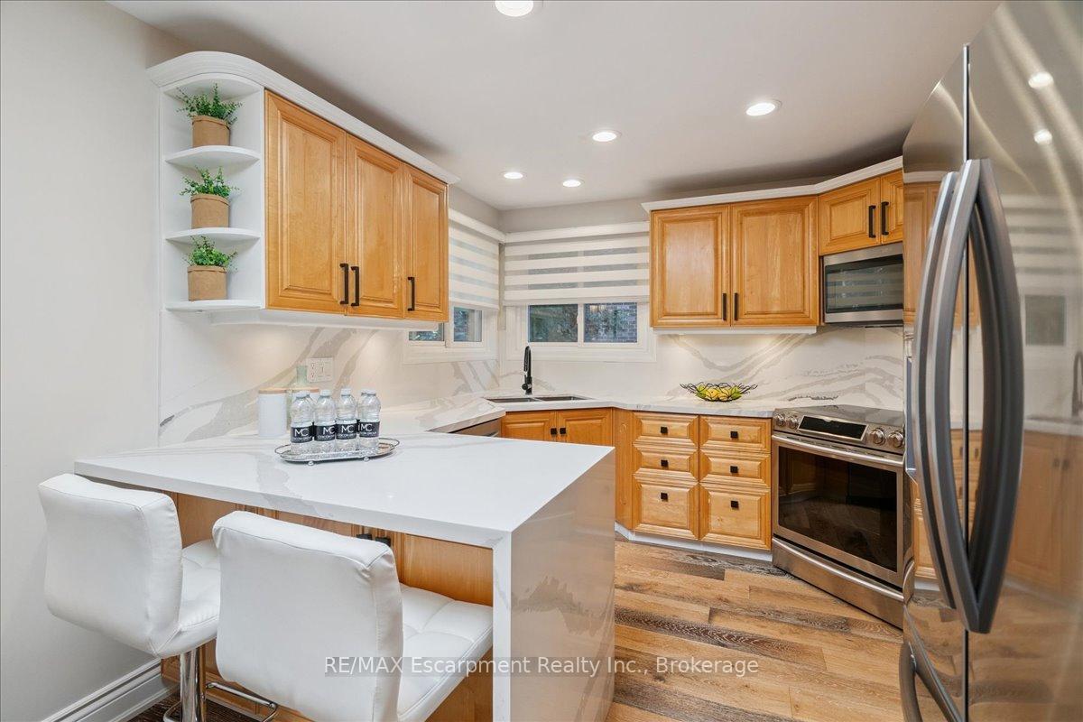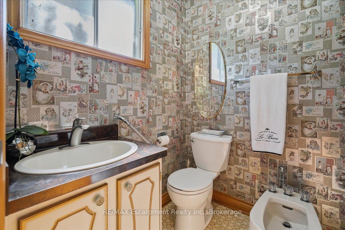 Step into the charm of this beautifully updated four-level backsplit, perfectly situated in the heart of Old Milton. This is where tranquility meets convenience, just a short walk to historic downtown, schools, trails, shopping and more! Backing onto the picturesque 16 Mile Creek and surrounded by lush forest, this home provides a serene retreat right in your own backyard. Inside, you’ll find app 3,300 total square feet of thoughtfully designed living space. The interior boasts a fabulous, functional layout with skylights, large windows, engineered hardwood flooring, and ample storage. The modern eat-in kitchen features sleek quartz counters and backsplash, stainless appliances, a built-in workstation, and stylish lighting. The open flow from the living to dining room is ideal for large gatherings, creating an inviting setting for unforgettable holiday celebrations! A few steps down, the family room is the heartbeat of the home, highlighted by a custom stone feature wall with a cozy gas fireplace, built-in bookshelves to showcase your cherished memories and direct access to the private, pool-sized yard – perfect for outdoor relaxation! This level also includes a fourth bedroom that can easily be used as a den, and ideal for in-laws or a nanny. Additional features include a powder room, laundry room, bonus flex room and access to the side yard. On the upper level, three spacious bedrooms await, including the primary with a private four-piece ensuite and balcony that overlooks stunning natural views… indeed, a tranquil spot to start or end your day. With a total of four bedrooms, four bathrooms, including a versatile den/office, this home offers ample space for family life and remote work. The finished lower level features a custom built 15′ bar, a cedar sauna, a cantina for your preserves and wine, a large crawl space and a 3-piece bath. All this to offer and located on one of the most desireable enclaves in town, this is a rare find and your dream come true!