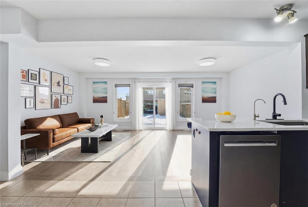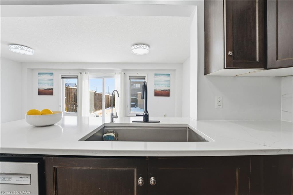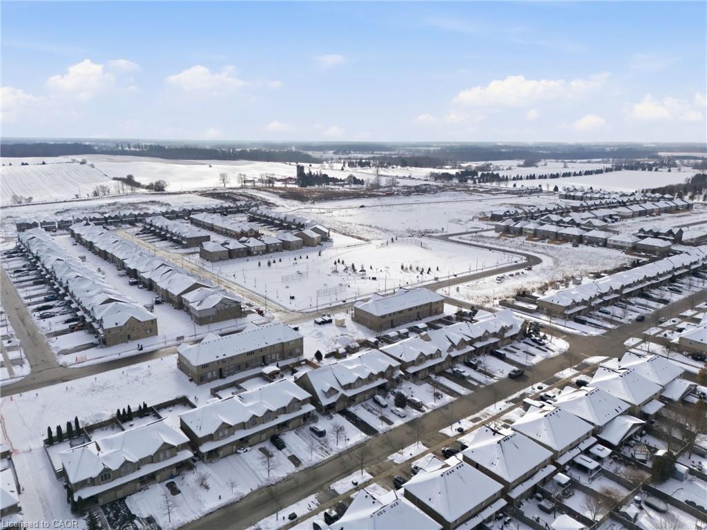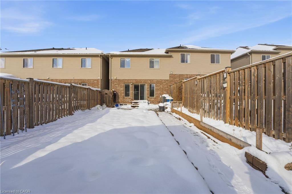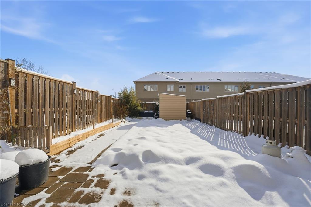 Welcome to 347 Vincent Drive in Ayr! This FREEHOLD townhome offers you the chance to own in an established and family friendly neighbourhood in Ayr, close to parks and Cedar Creek Public School. Newly installed pavers lead you to the front porch, offering a cozy sitting area. Through the front door, the hall and coat closet have plenty space for your outdoor gear and bring you through to your main living area with tons of natural light. The kitchen, boasting dark cabinetry, upgraded quartz counters, backsplash, and an undermount sink with R/O system overlook your dining area and large living room with ample space for different décor and furniture configurations. A cute powder room, and access to the garage complete the main floor. Upgraded stairs lead you to the carpet-free second floor with newer flooring. The oversized primary bedroom showcases an upgraded ensuite, and a MASSIVE walk-in closet with a window for extra light. Two additional bedrooms are complete with good-sized closets, and benefit from the additional 4pc bathroom on this level. You are sure to appreciate the upgraded light fixtures that can be found all throughout the main and second floor. The unspoiled basement area offers the perfect space for you to put your finishing touches and design a rec-room, office, or even another bedroom. The south-facing backyard, accessible from the garage or through the sliding door in the living room, receives lots of sun and has been recently outfitted with gardens on one side and a walkway from the stone patio to the shed at the rear! Don’t miss out on your chance to make this townhome, your home. Book your private viewing today!