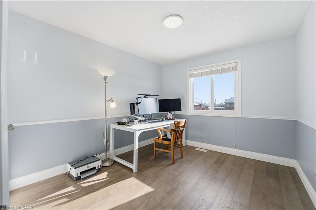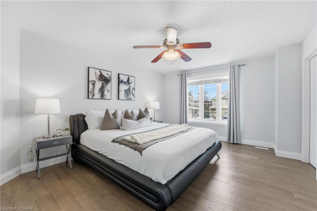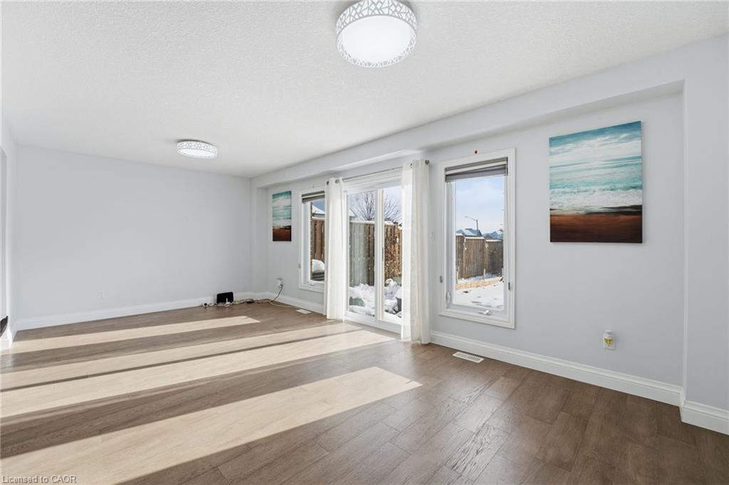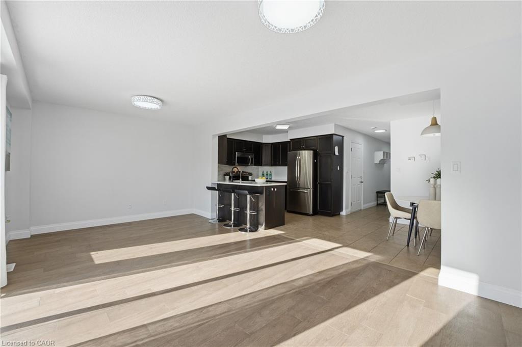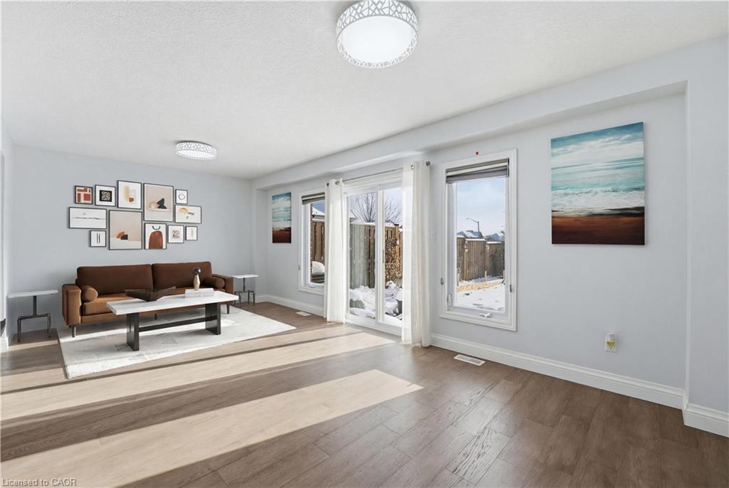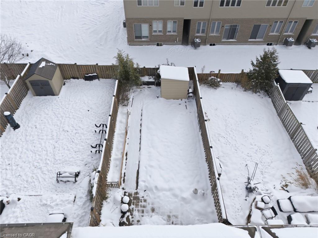Welcome to 347 Vincent Drive in Ayr! This FREEHOLD townhome offers you the chance to own in an established and family friendly neighbourhood in Ayr, close to parks and Cedar Creek Public School. Newly installed pavers lead you to the front porch, offering a cozy sitting area. Through the front door, the hall and coat closet have plenty space for your outdoor gear and bring you through to your main living area with tons of natural light. The kitchen, boasting dark cabinetry, upgraded quartz counters, backsplash, and an undermount sink with R/O system overlook your dining area and large living room with ample space for different décor and furniture configurations. A cute powder room, and access to the garage complete the main floor. Upgraded stairs lead you to the carpet-free second floor with newer flooring. The oversized primary bedroom showcases an upgraded ensuite, and a MASSIVE walk-in closet with a window for extra light. Two additional bedrooms are complete with good-sized closets, and benefit from the additional 4pc bathroom on this level. You are sure to appreciate the upgraded light fixtures that can be found all throughout the main and second floor. The unspoiled basement area offers the perfect space for you to put your finishing touches and design a rec-room, office, or even another bedroom. The south-facing backyard, accessible from the garage or through the sliding door in the living room, receives lots of sun and has been recently outfitted with gardens on one side and a walkway from the stone patio to the shed at the rear! Don’t miss out on your chance to make this townhome, your home. Book your private viewing today!