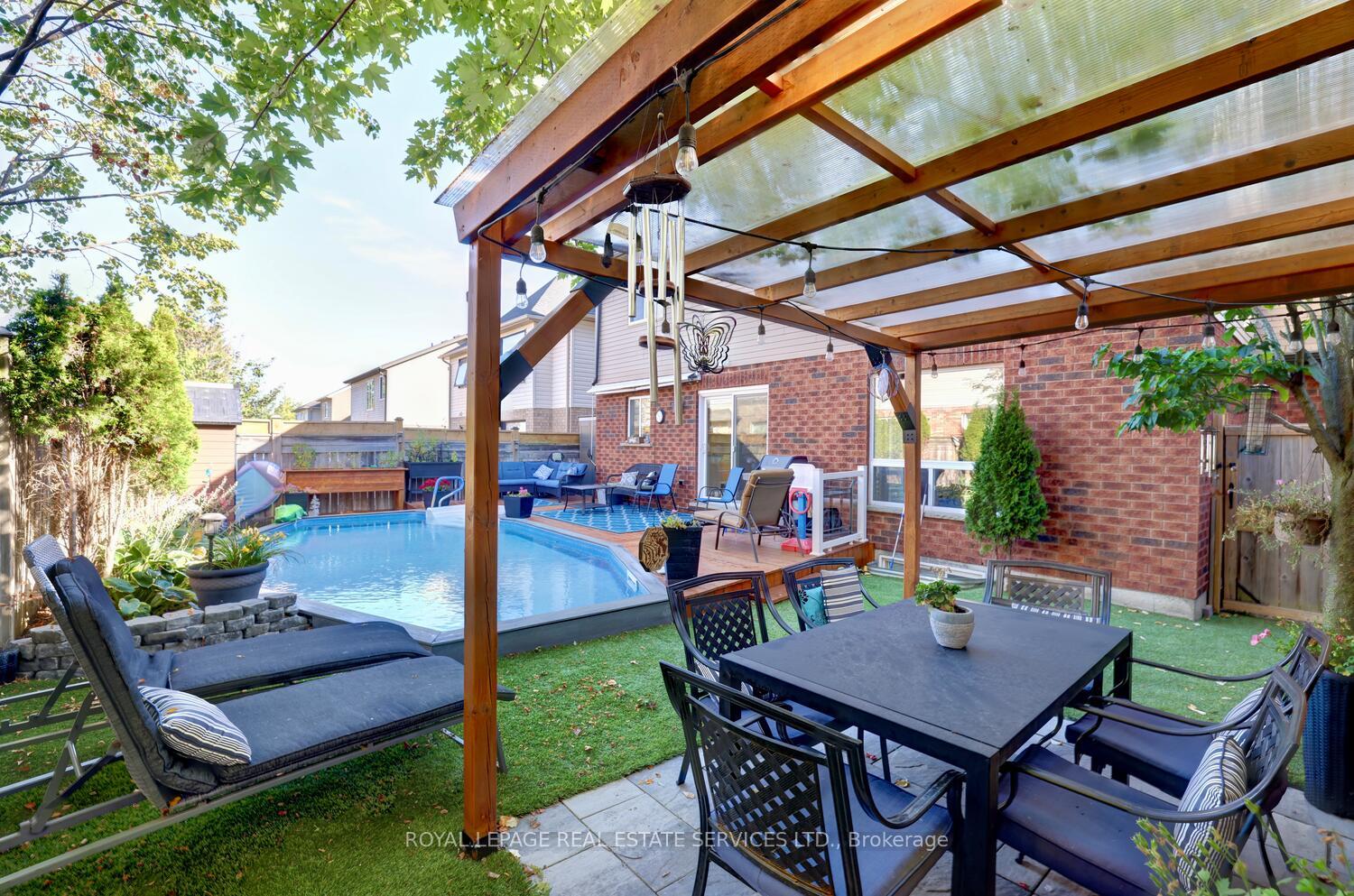 This beautifully updated home features fresh paint throughout, an eat-in kitchen with a largecenter island, quartz countertops, and stainless steel appliances, opening to adjacent familyroom. Walk out to your private backyard oasis, complete with a sparkling pool and a brand-newpergola (2025) perfect for entertaining.Upstairs, the spacious primary suite offers a walk-in closet and a luxurious 5-piece ensuite. Thesecond level also includes convenient laundry, two generously sized bedrooms, and a versatilemezzanine area ideal for a home office.The finished basement adds even more living space with a large recreation room, an additionalbedroom or office, and a 3-piece bath.A stylish, move-in ready home that blends comfort, function, and outdoor living.