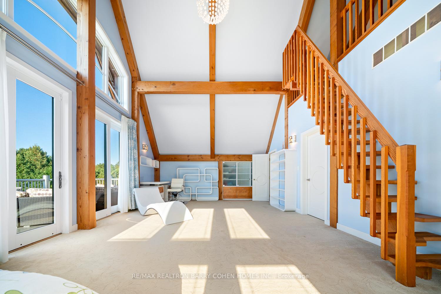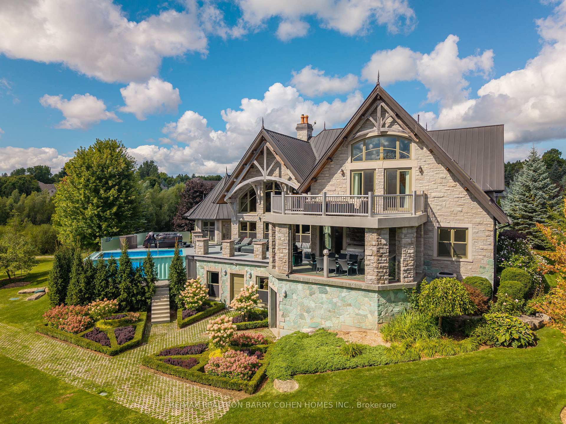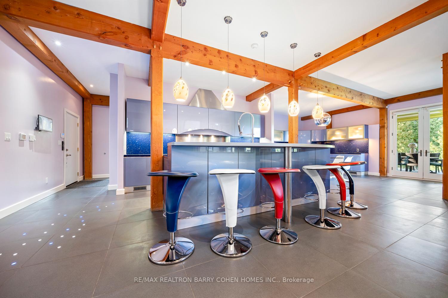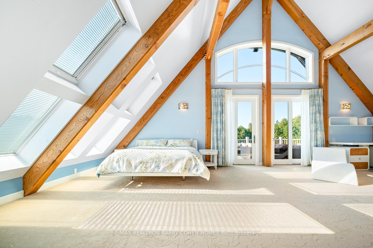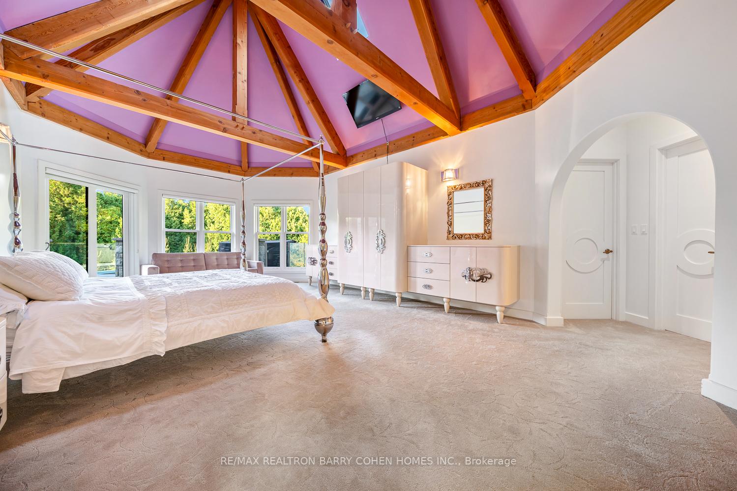 This One-Of-A-Kind Residence Was Custom Built By The Owners To Showcase Their Unique Vision, Blending The Chic Allure Of High-End Chalet Design With The Timeless Strength Of Canadian Timber Frame Craftsmanship. A Striking Copper Roof Crowns The Home, While A Dramatic Great Room With Soaring 35-Foot West-Facing Windows And A Circular Gas Fireplace Sets The Tone For Inspired Living. Overlooking This Impressive Space Is A Designer Snaidero Kitchen With Seating For 10, Walkout To The Wraparound Deck, And An Infinity Pool Bordered By Glass Walls. The Main Floor Is Anchored By A Private Office Or Dining Room, And A Bauhaus-Inspired Powder Room With Tile Detailing. The Primary Suite Serves As A True Sanctuary, Featuring Cathedral-Like Beamed Ceilings, Bespoke Poliform His-And-Hers Walk-In Closets, A Luxurious Spa-Like 5-Piece Ensuite. Upstairs, Two Expansive Bedroom Suites With 25-Foot Ceilings Each Enjoy Private Walk-In Closets And Share A Large 6-Piece Ensuite With Loft Areas. The Walk-Out Lower Level Offers A Family Room, Acoustic Music Studio, Private Hair Salon, And Powder Room, Along With Additional Bedrooms For Family Or Guests. Designed With Both Scale And Intimacy In Mind, This Home Balances Contemporary Elegance With Natural Warmth An Irreplaceable Retreat Surrounded By Unmatched Privacy.