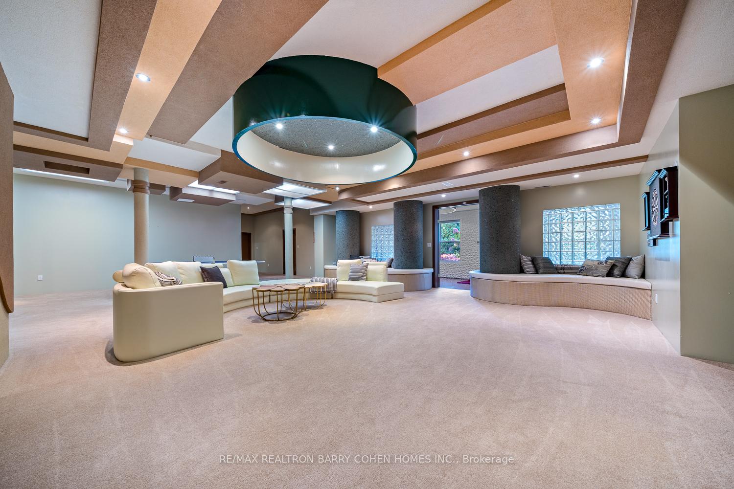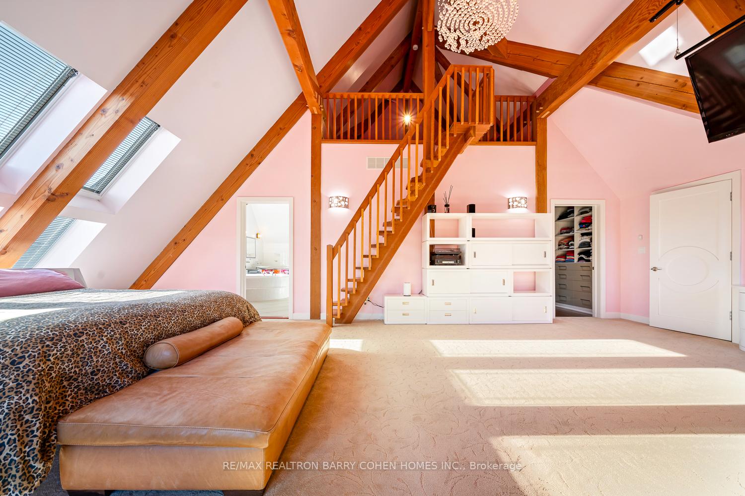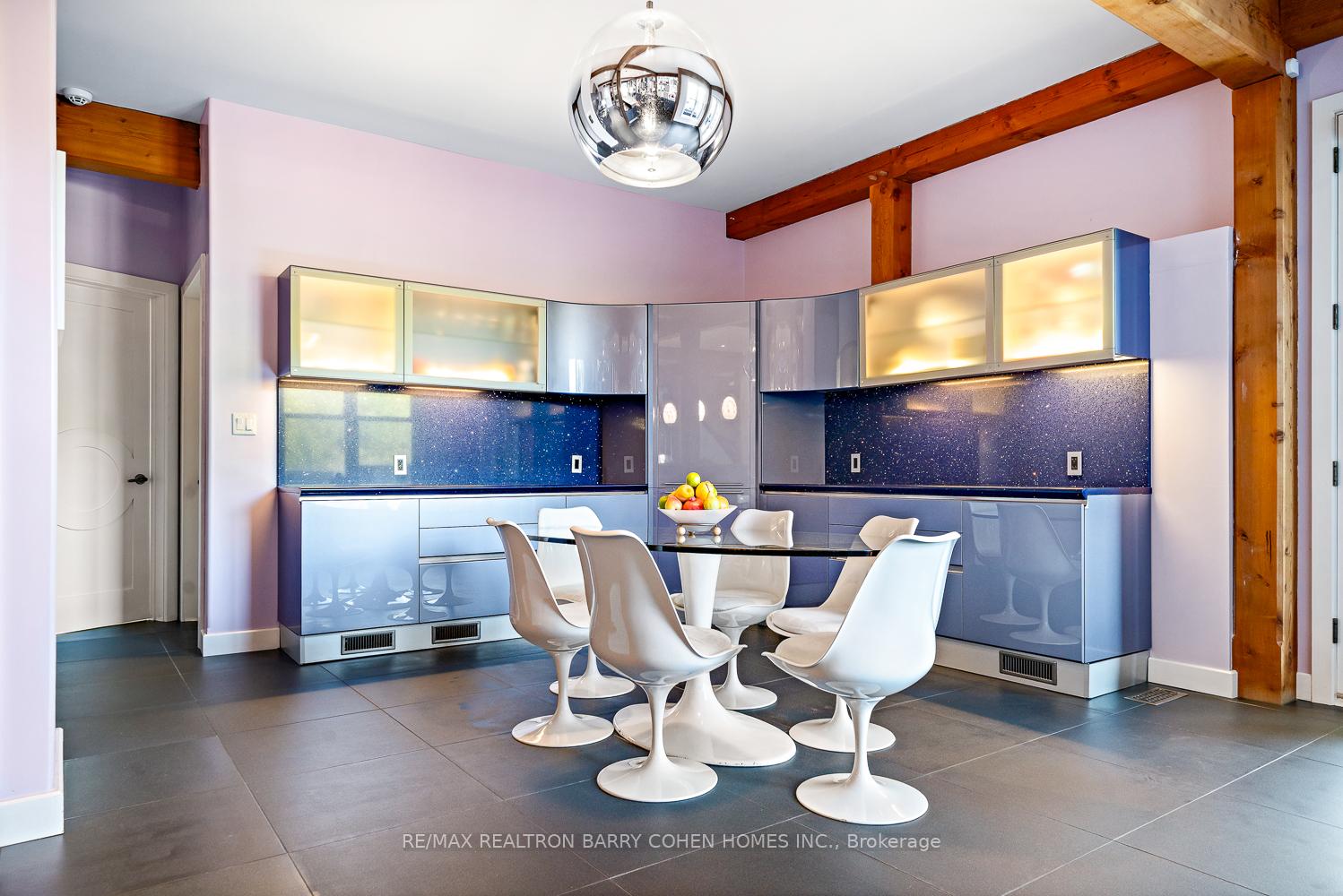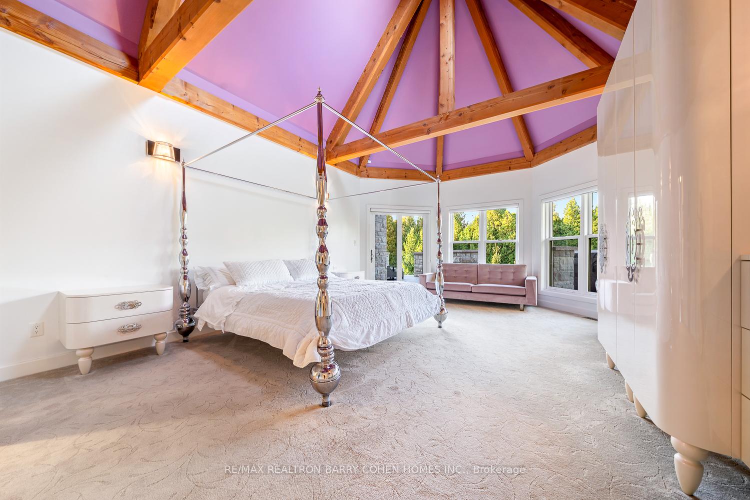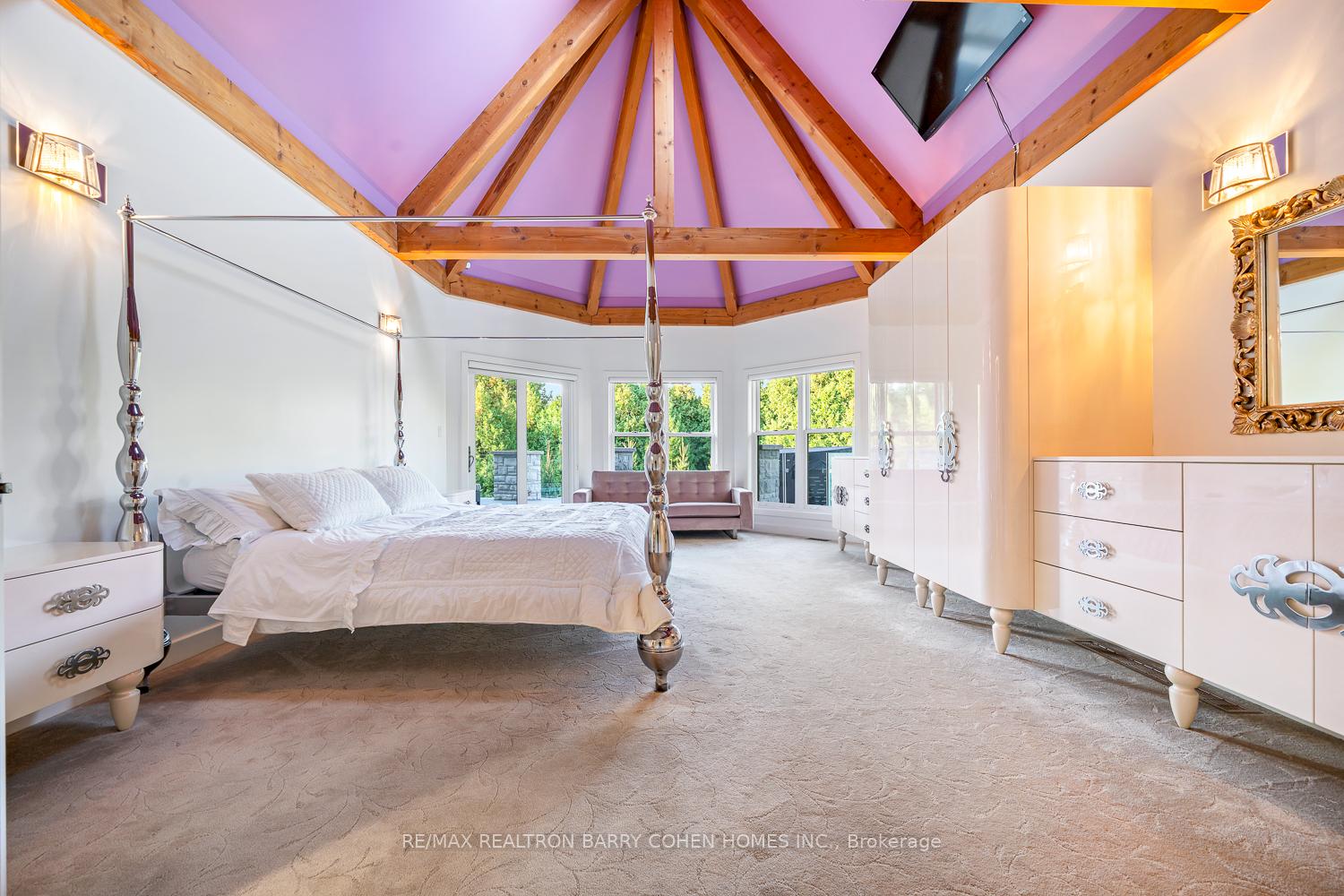 This One-Of-A-Kind Residence Was Custom Built By The Owners To Showcase Their Unique Vision, Blending The Chic Allure Of High-End Chalet Design With The Timeless Strength Of Canadian Timber Frame Craftsmanship. A Striking Copper Roof Crowns The Home, While A Dramatic Great Room With Soaring 35-Foot West-Facing Windows And A Circular Gas Fireplace Sets The Tone For Inspired Living. Overlooking This Impressive Space Is A Designer Snaidero Kitchen With Seating For 10, Walkout To The Wraparound Deck, And An Infinity Pool Bordered By Glass Walls. The Main Floor Is Anchored By A Private Office Or Dining Room, And A Bauhaus-Inspired Powder Room With Tile Detailing. The Primary Suite Serves As A True Sanctuary, Featuring Cathedral-Like Beamed Ceilings, Bespoke Poliform His-And-Hers Walk-In Closets, A Luxurious Spa-Like 5-Piece Ensuite. Upstairs, Two Expansive Bedroom Suites With 25-Foot Ceilings Each Enjoy Private Walk-In Closets And Share A Large 6-Piece Ensuite With Loft Areas. The Walk-Out Lower Level Offers A Family Room, Acoustic Music Studio, Private Hair Salon, And Powder Room, Along With Additional Bedrooms For Family Or Guests. Designed With Both Scale And Intimacy In Mind, This Home Balances Contemporary Elegance With Natural Warmth An Irreplaceable Retreat Surrounded By Unmatched Privacy.
