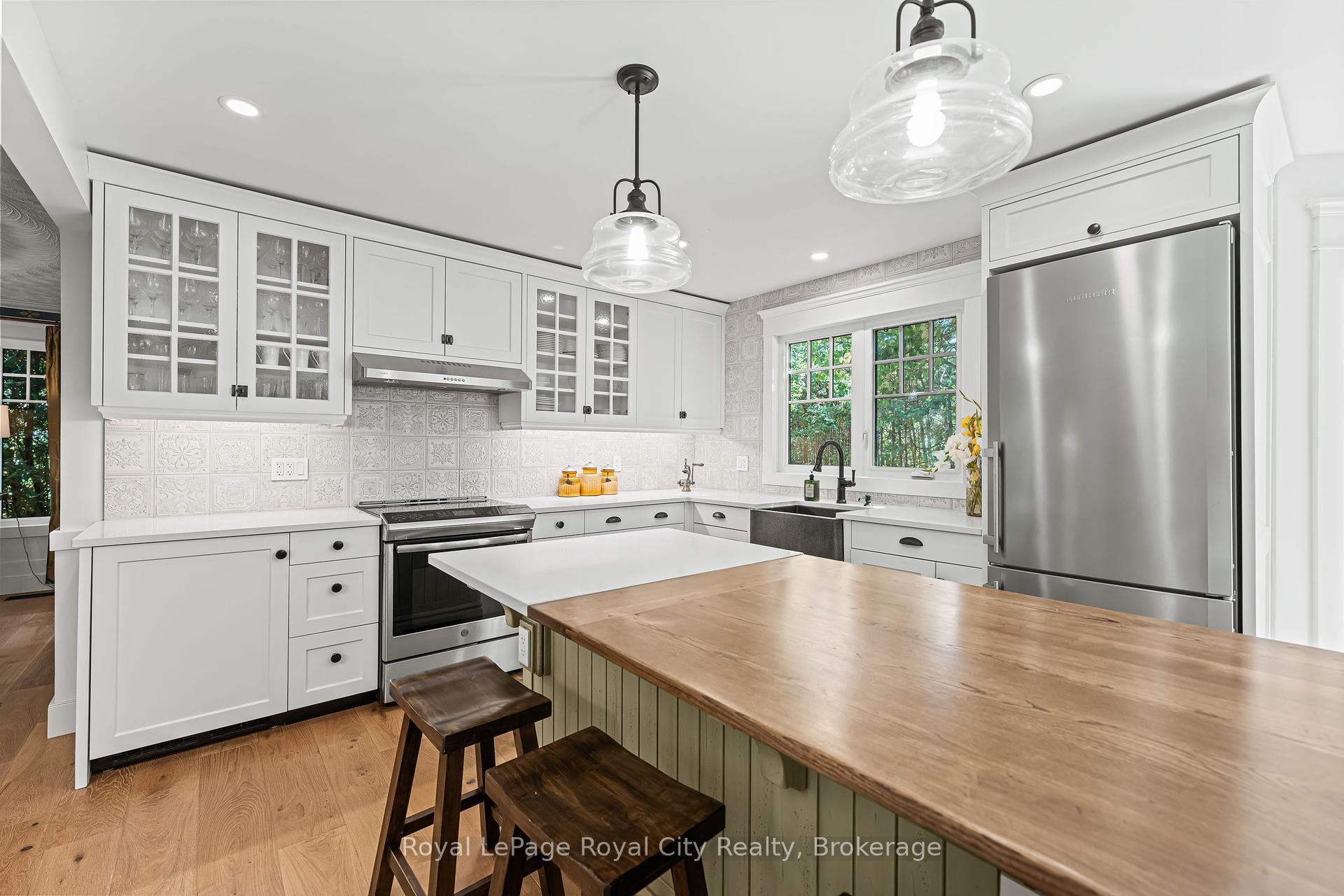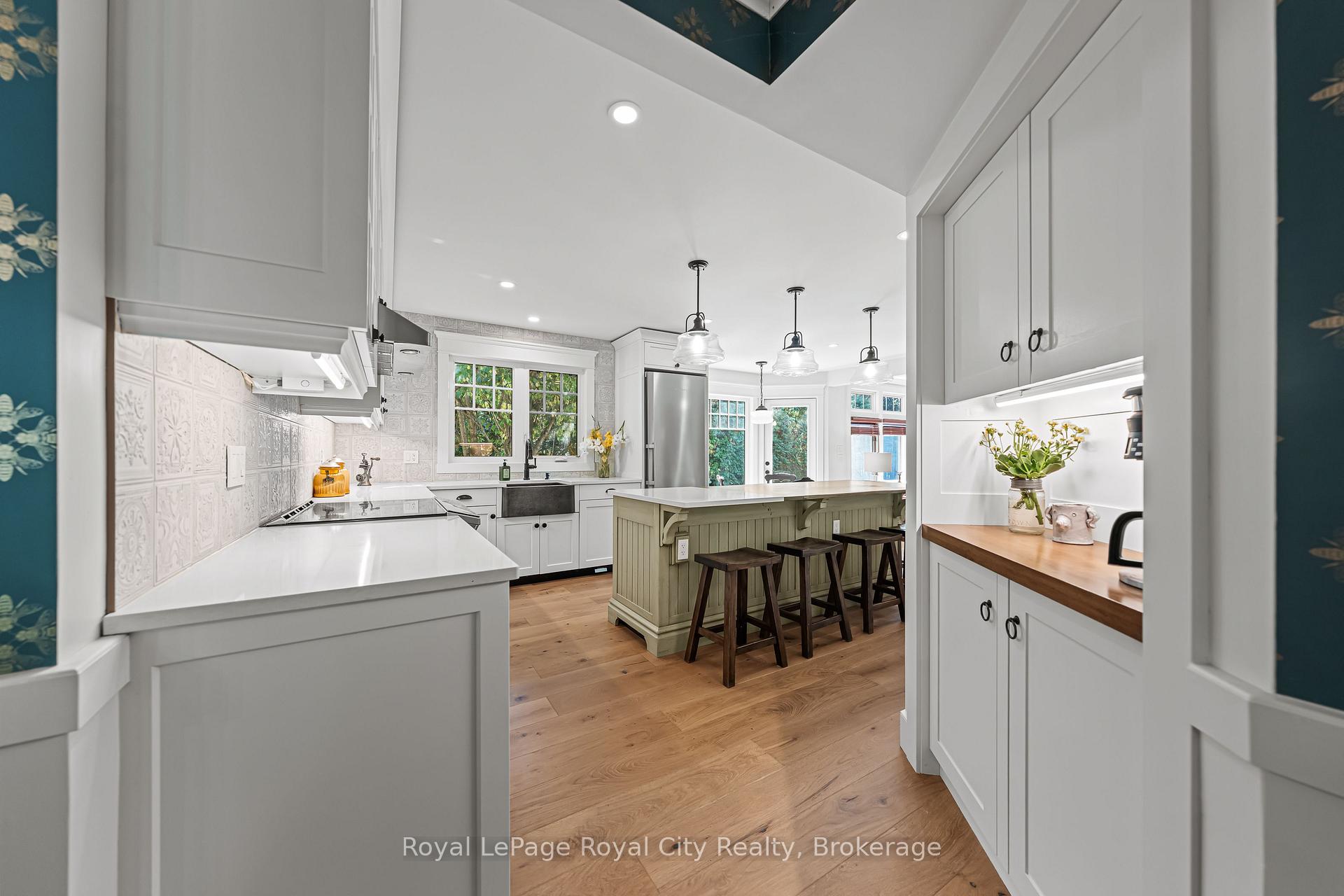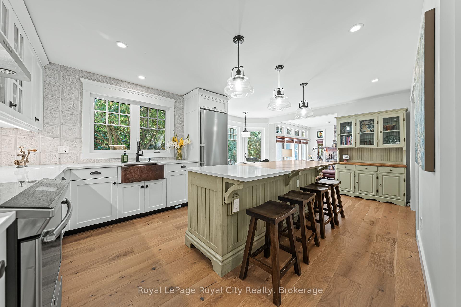 Welcome to 35 Monticello Crescent! This beautifully renovated home, just a block from the University of Guelph, blends vintage charm with modern comfort. Updated in 2020 by Bellamy Custom Homes, it features a stunning custom kitchen by Old World Woodworking, detailed wainscoting, classic built-ins, and multiple fireplaces. Enjoy a dry heat sauna and a cozy screened-in porch overlooking a serene treetop oasis. The basement includes a separate entrance and egress window and was previously a legal 2-bedroom suite easily convertible back for income or extended family use. The backyard is perfect for entertaining, showcasing a saltwater pool (liner 2024) and mature trees for privacy. The exterior was renovated in 2014 with Hardie Board siding, new windows and doors, and classic 1910-style details. Major systems are in great shape, including the roof (2008) and furnace/AC (2010). With a prime location near U of G, Arboretum trails, and downtown, this home is a rare find! Don”t miss out!