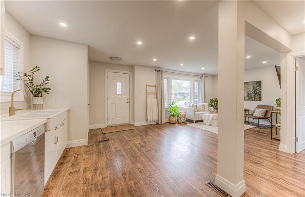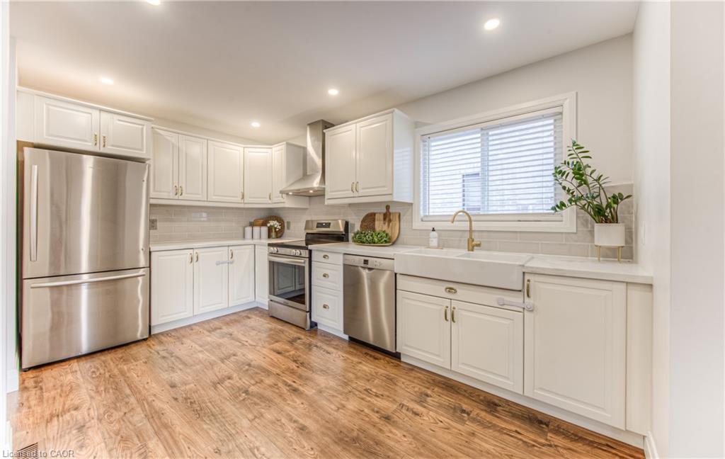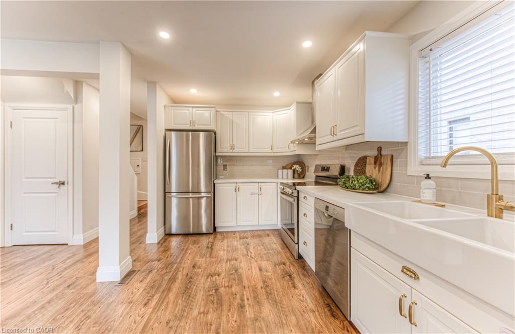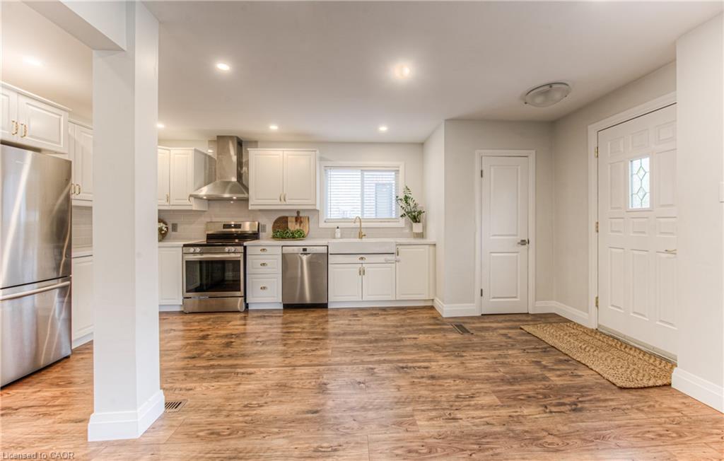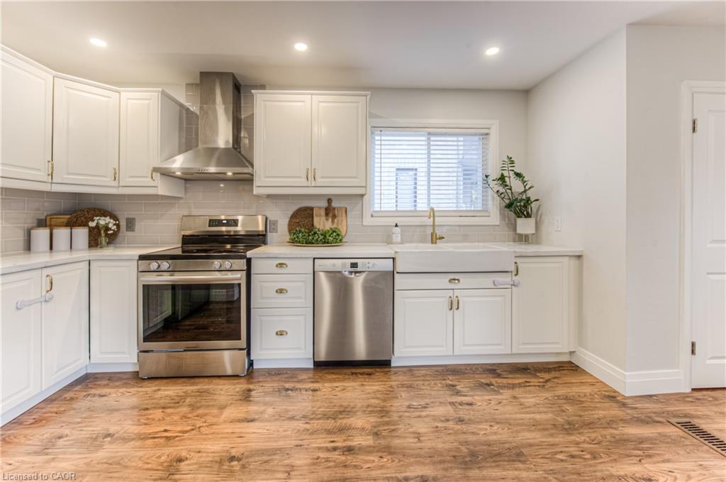 OFFERS WELCOME ANY TIME … Welcome to 35 Pattandon Avenue, Kitchener—a beautifully maintained 1.5-storey home nestled on a quiet, tree-lined street in the desirable Southdale neighborhood. This charming detached property combines timeless character with modern updates, offering a warm and functional layout perfect for families, first-time buyers, or those looking to downsize. Step inside to discover a bright and spacious living room that flows seamlessly into a fully renovated gourmet kitchen, featuring sleek countertops, contemporary cabinetry, and high-end stainless steel appliances. The main floor also boasts a versatile flex space—originally a bedroom, now used as a separate dining room, ideal for family meals or formal entertaining. Additionally, you’ll find a home office and a stylishly updated 4-piece bathroom. Upstairs, two cozy bedrooms are filled with natural light, offering peaceful retreats at the end of the day. The finished basement provides even more living space with a generous rec room, complete with a wood-burning fireplace, a brand-new 3-piece bathroom, and ample storage—perfect for a guest suite, home gym, or future in-law suite. Situated on a 41-foot-wide lot with a detached garage and parking for three vehicles in the driveway, the exterior features mature trees, great curb appeal, and a private backyard ready for your personal touch. Located just minutes from parks, schools, shopping, hospitals, and transit, this move-in-ready home offers the perfect blend of style, convenience, and community. Don’t miss your chance to make 35 Pattandon Avenue your own—schedule your private showing today!