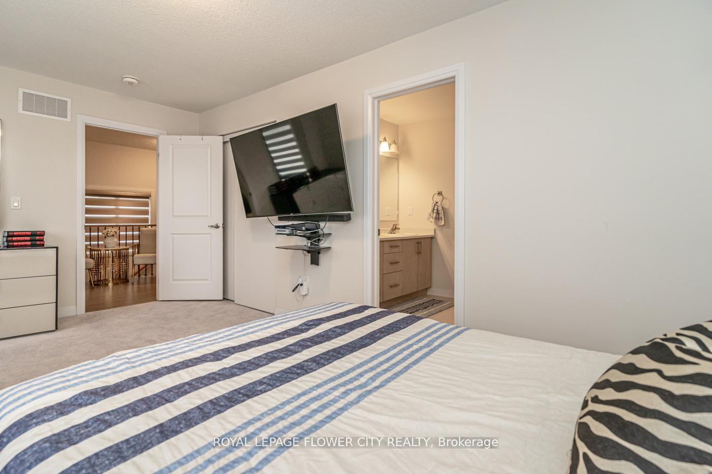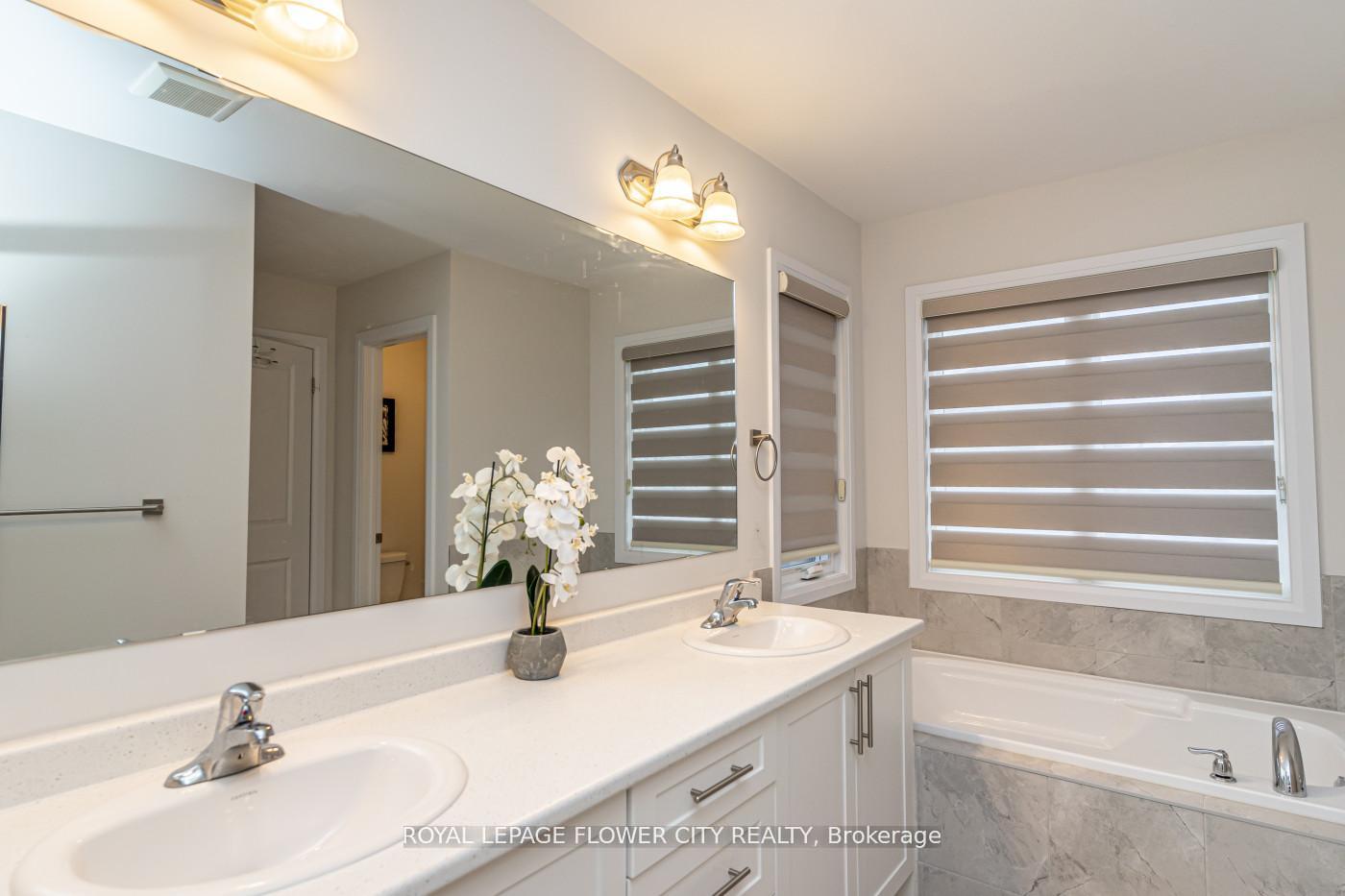 Welcome to this stunning 4-bedroom fully brick detached home, perfectly combining elegance and functionality. Featuring hardwood floors throughout main floor and upstairs hall way. This home exudes quality crafts man ship. The modern kitchen offers quartz countertops, stainless steel appliances, and a spacious layout-ideal for family gatherings and entertaining. Modern zebra blinds and Large windows bringing in natural light, and a well-designed floor plan that provides both openness and privacy. Each bedroom is generously sized, with three full washroom supstairs for ultimate convenience. Situated on a no-sidewalk lot with a large driveway accommodating up to 4 cars, this home offers both curb appeal and convenience. Located in a quiet and desirable Erin neighbour hood, this home is the perfect blend of style, space, and comfort. A truly move-in-ready gem!