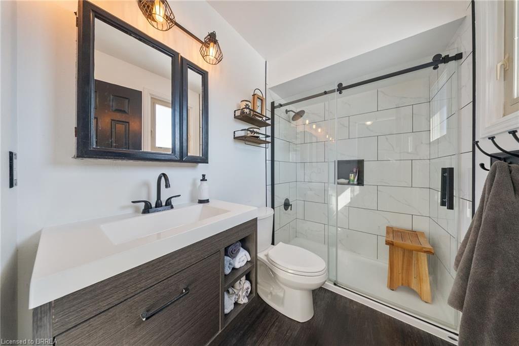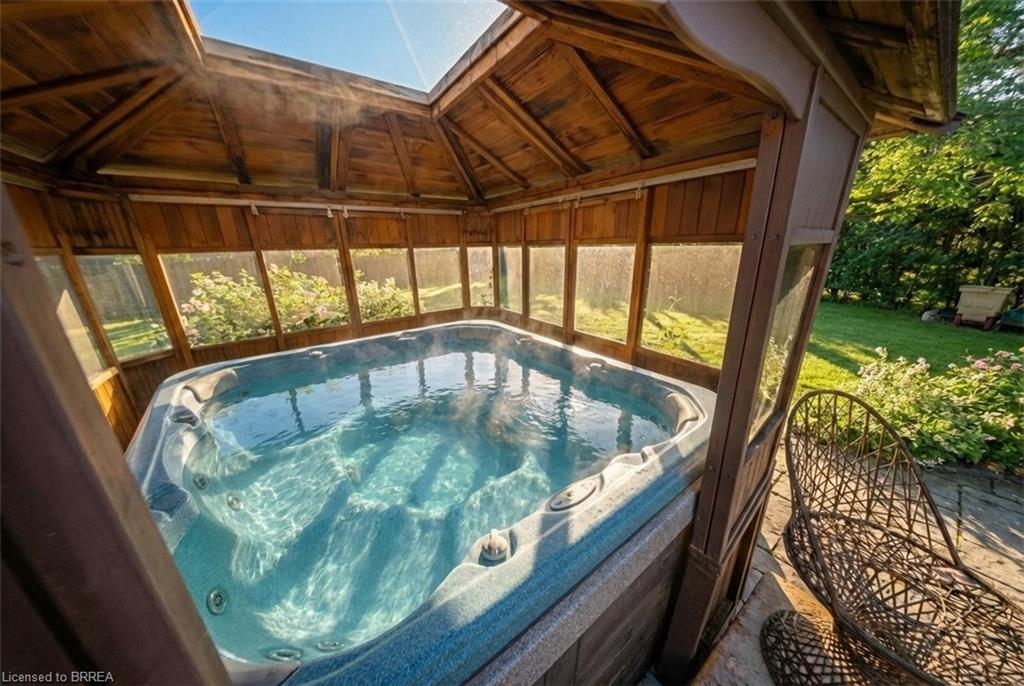 Welcome to 35 Rose Court, a beautifully updated family home nestled on a quiet cul-de-sac in the charming town of Paris. This inviting property offers the perfect blend of comfort, style, and functionality in a peaceful, family-friendly setting. Freshly painted throughout, the home feels bright, modern, and move-in ready. The stunning remodeled kitchen is a true focal point, featuring elegant quartz countertops, stylish new hardware, and a large live-edge island that adds warmth and character while providing ample space for gathering and entertaining. Upstairs, engineered hardwood flooring enhances the second-floor hallway and the spacious primary bedroom, creating a seamless and sophisticated look. The primary suite offers a private retreat complete with a beautifully renovated ensuite bathroom and a generous walk-in closet. All bathrooms throughout the home have been recently remodeled with tasteful, contemporary finishes. The fully finished lower level provides additional versatile living space, perfect for a recreation room, home office, or growing family needs. Step outside to your own private backyard oasis, surrounded by mature cherry, maple, walnut, and sumac trees that offer beauty and natural privacy. Enjoy relaxing evenings in the hot tub, complete with a new cover, new electrical, and a new heat pump. A large new deck creates the perfect space for outdoor entertaining and summer gatherings. Additional updates include eavestroughs replaced within the last 18 months and a striking new hand-stained fibreglass front door that enhances the home’s curb appeal. A four-car driveway and double-car garage provide ample parking and convenience. Ideally located within walking distance to excellent schools and just minutes from shopping, the hospital, and local restaurants, this exceptional home offers everything your family needs in one of Paris’s most desirable neighbourhoods.