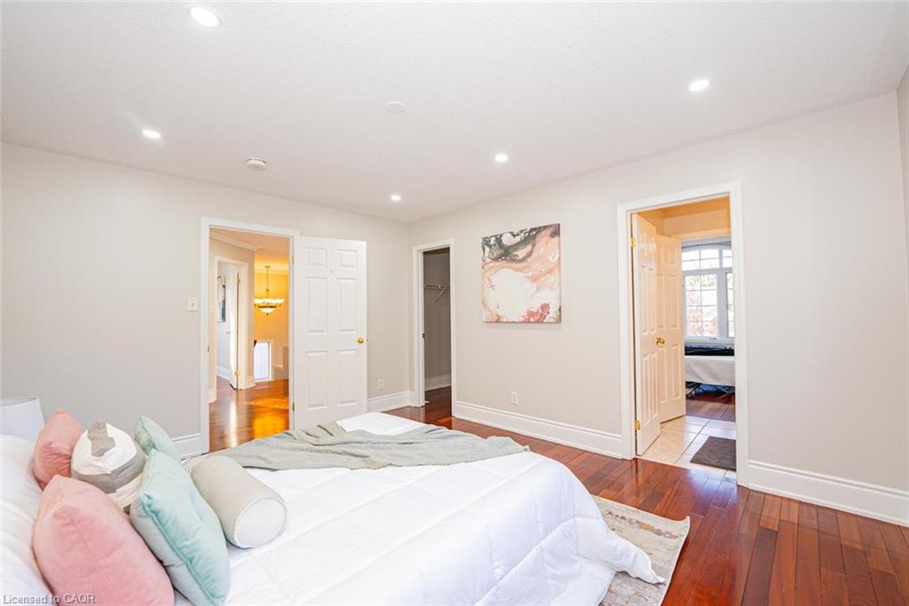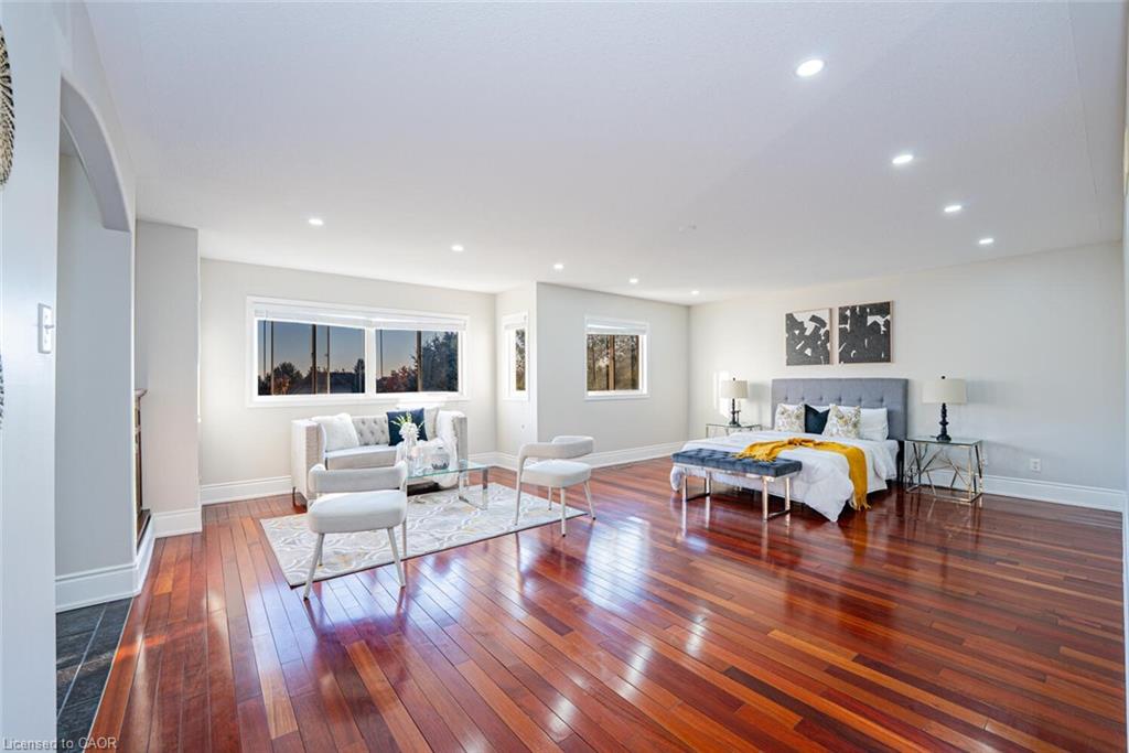 Welcome to this stunning Monarch-built home in the prestigious Wyldwoods community, just minutes from Hwy 401. Situated on a premium lot with no sidewalk, the driveway offers parking for up to 5 cars. Featuring over 5,000 sq. ft. of luxurious living space with a total of 6 bedrooms and 6 baths, this home includes a legal 2-bedroom basement apartment with a separate side entrance – perfect for extended family or rental income. The main floor showcases a double-height living room, formal dining area, office with double French doors, and three fireplaces. Enjoy a gourmet kitchen with granite countertops, Brazilian cherry hardwood floors throughout, and granite finishes in all baths. Professionally landscaped front and backyards include an irrigation system, deck with pergola , private backyard and exceptional curb appeal.