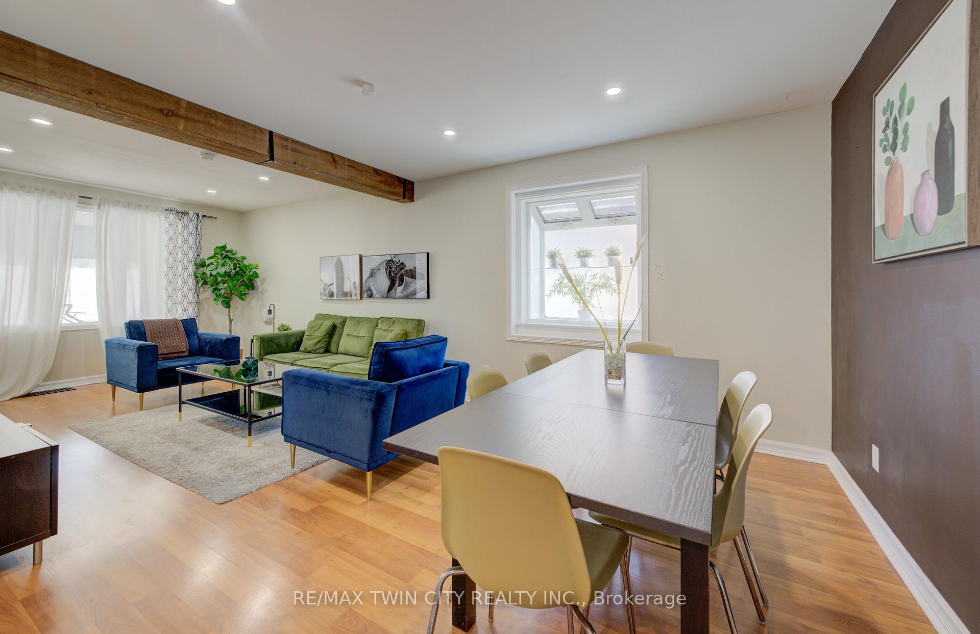 PARKING FOR 6! Charming 3 bedroom, 2 bathroom, 2-storey home in the heart of Kitchener! Located near Victoria Park, the University of Waterloo, and countless amenities, this cozy home blends modern upgrades with convenience. The enclosed front porch offers all-season enjoyment, while the open-concept, carpet-free main level is perfect for entertaining. The recently updated white kitchen features a sleek tiled backsplash, upgraded counters, ample cabinetry, and an eat-in island with direct access to the back deck. Upstairs, you’ll find 3 spacious bedrooms and a renovated 4-piece bath with enhanced water-resistant flooring. The finished basement adds extra living space, a 3-piece bath, and laundry. A paved driveway runs through to the backyard with parking for up to 10 vehicles, plus a handy side entrance to the home. With the new updates and amazing this home is move in ready and waiting for its new owners.