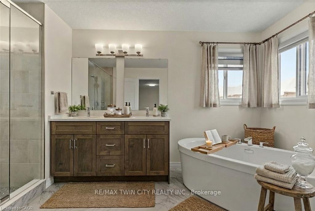 Situated in the highly sought-after community of VISTA HILLS, this nearly new home is fully loaded with premium upgrades and thoughtfully designed for elevated modern living. Offering 4 BEDROOMS plus a LOFT, the layout delivers exceptional flexibility for families, professionals, or multi-purpose living. The main floor features impressive 9-FOOT CEILINGS and hardwood flooring throughout, creating a bright and open atmosphere. The family room is anchored by a GAS FIREPLACE, adding warmth and comfort to the space. A convenient main-floor MUDROOM with LAUNDRY adds everyday functionality, while ZEBRA BLINDS and CUSTOM CLOSET ORGANIZERS enhance both style and organization throughout the home. The chef-inspired kitchen is beautifully appointed with QUARTZ COUNTERTOPS, a large ISLAND WITH BREAKFAST BAR, gas range, DOUBLE WALL OVEN, and EXTENDED KITCHEN CABINET, making it ideal for both everyday living and entertaining. QUARTZ COUNTERTOPS IN ALL BATHROOMS add a cohesive, upscale finish throughout the home. The primary suite offers a private retreat, complete with a luxurious ensuite featuring double sinks, a deep soaker tub, a large glass-enclosed shower, and separate his-and-hers walk-in closets. The LOFT provides an ideal setting for a homework space, home library, or quiet study area. There are 3 additional bedrooms all with custom closet organizers, hardwood flooring and large windows. Step outside to a fully fenced backyard with a deck-ideal for outdoor dining, relaxation, and hosting gatherings. Added bonus is EV CHARGING PORT in the garage! Located in the VISTA HILLS community known for its top rated school, parks, scenic walking and cycling trails and convenient access to shopping, dining, and major commuter routes, this home offers an exceptional balance of comfort, style, and lifestyle in one of Waterloo’s most desirable neighbourhoods. photos virtually staged. All appliances and custom blinds inculded!