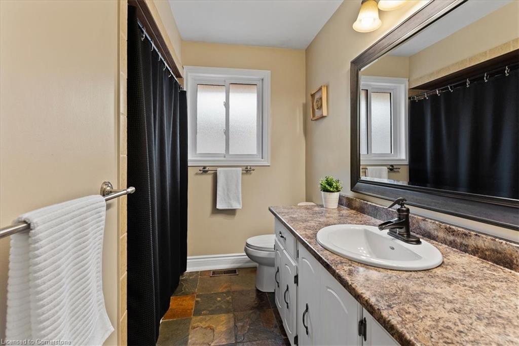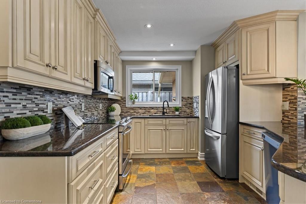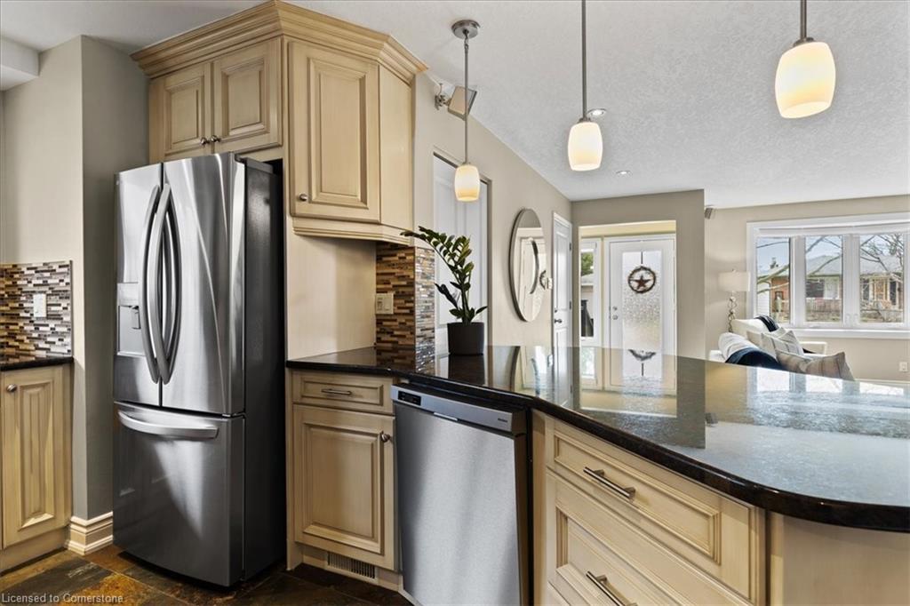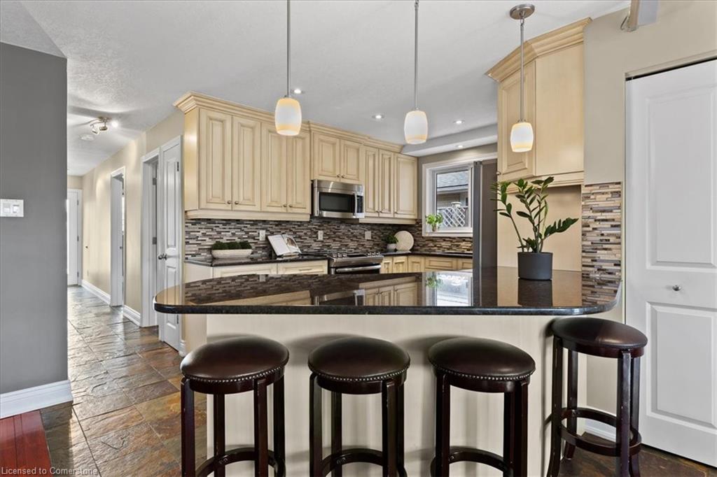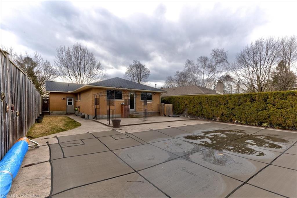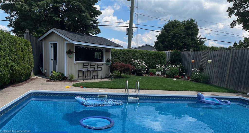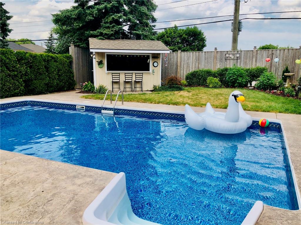 Charming All-Brick Bungalow with Inground Pool & In-Law Suite in a Highly Sought-After Neighbourhood. Welcome to this beautifully maintained bungalow tucked away on a quiet crescent in one of the areas most desirable neighbourhoods. This home offers the perfect blend of privacy, comfort, and functionality ideal for families, down sizers, or investors. The open concept main floor is perfect for entertaining, featuring hardwood flooring in the bright, spacious living room with build in unit for you tv, separate dining area, a stunning updated kitchen with granite countertops, stainless steel appliances, plenty of storage including a separate pantry and a breakfast bar for casual meals. Youll find a four piece bathroom and two generous bedrooms on the main level, including a primary suite with a massive walk-in closet with built in organizers and a make up area Step outside to your own private backyard retreat fully enclosed with an 8-foot fence for maximum privacy. Enjoy the stamped concrete patio, inground pool, and charming pool cabana, all surrounded by beautifully landscaped gardens. Downstairs, the separate in-law suite offers exceptional flexibility. Currently set up as a one-bedroom suite, it can easily be converted to two bedrooms. The basement includes two three-piece bathrooms one of which could be conveniently utilized to serve the main floor space, offering even more functionality. With oversized windows in the main space, a well appointed laundry room can be utilized by both units, in addition to generous storage, this lower level has endless potential. Additional features include a single-car garage, concrete path and steps to front door, double driveway parking, and thoughtfully designed landscaping from front to back. Carpet free, Roof 2024, furnace 2022, newer windows, brand new blinds throughout. This rare gem offers space, style, and the ultimate in backyard living. don’t miss your chance to call it home.