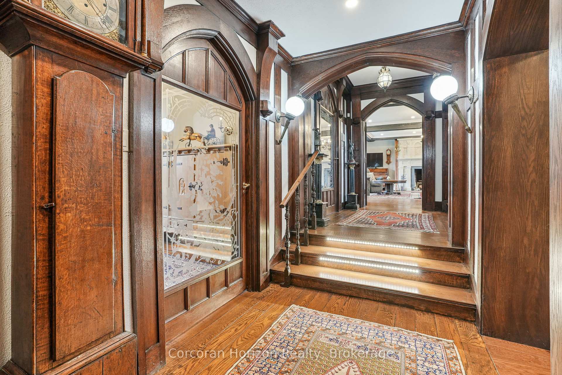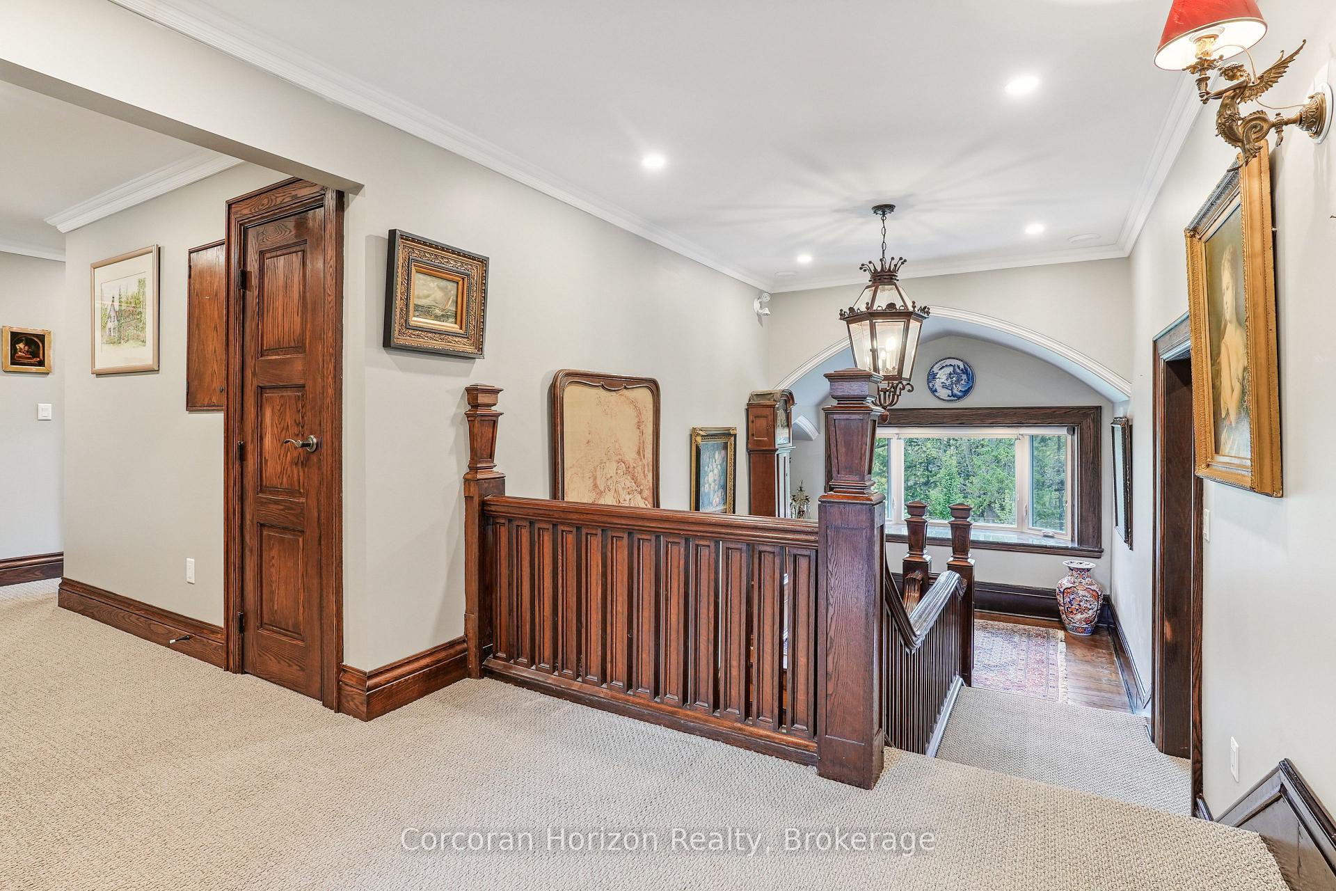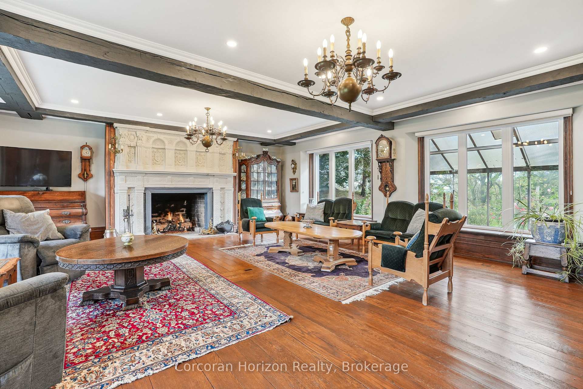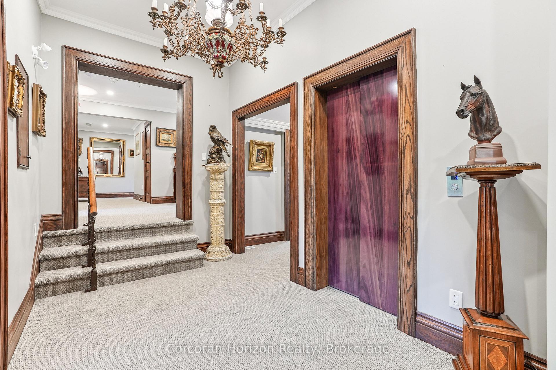 Step into history reimagined with this breathtaking 1870 estate, meticulously restored to blend timeless heritage with modern luxury. Set on over 5.5 rolling acres in Ancaster’s most coveted enclave overlooking the Dundas Valley, this home is a rare offering of elegance, craftsmanship, and comfort. Every detail has been carefully considered in the extensive restoration. Heritage features shine throughout, seamlessly complemented by modern updates: renovated kitchen and baths, new windows, plumbing, electrical, HVAC, generator, steel roof, and spray foam insulation. Fresh exterior stucco and advanced energy efficiencies ensure the home is as practical as it is beautiful. The dramatic foyer, with its lavish woodwork and sweeping staircase, makes an unforgettable first impression. The expansive living room is anchored by a towering stone fireplace, while the main floor also boasts a private office, formal dining room, two stylish washrooms, walk-in pantry, and a gourmet eat-in kitchen opening to a covered stone patio. Upstairs, accessible by both the grand staircase and a new elevator, you’ll find a spacious hallway leading to five bedrooms, three baths, and a convenient laundry. Two bedrooms include ensuites, with the sprawling primary suite offering a true retreat. The third floor, also served by the elevator, is ideal for an in-law suite with rough-ins for a kitchen and bath. A finished basement with two bedrooms and its own entrance provides yet another suite opportunity. Outside, the acreage unfolds in serene privacy. A pool awaits reactivation at the back of the property, while a detached stone garage and barn/workshop offer endless possibilities for hobbies, storage, or creative ventures. This remarkable estate pairs historic character with modern convenience, all set in one of Ancaster’s most desirable pockets. It is more than a home, it’s a lifestyle.