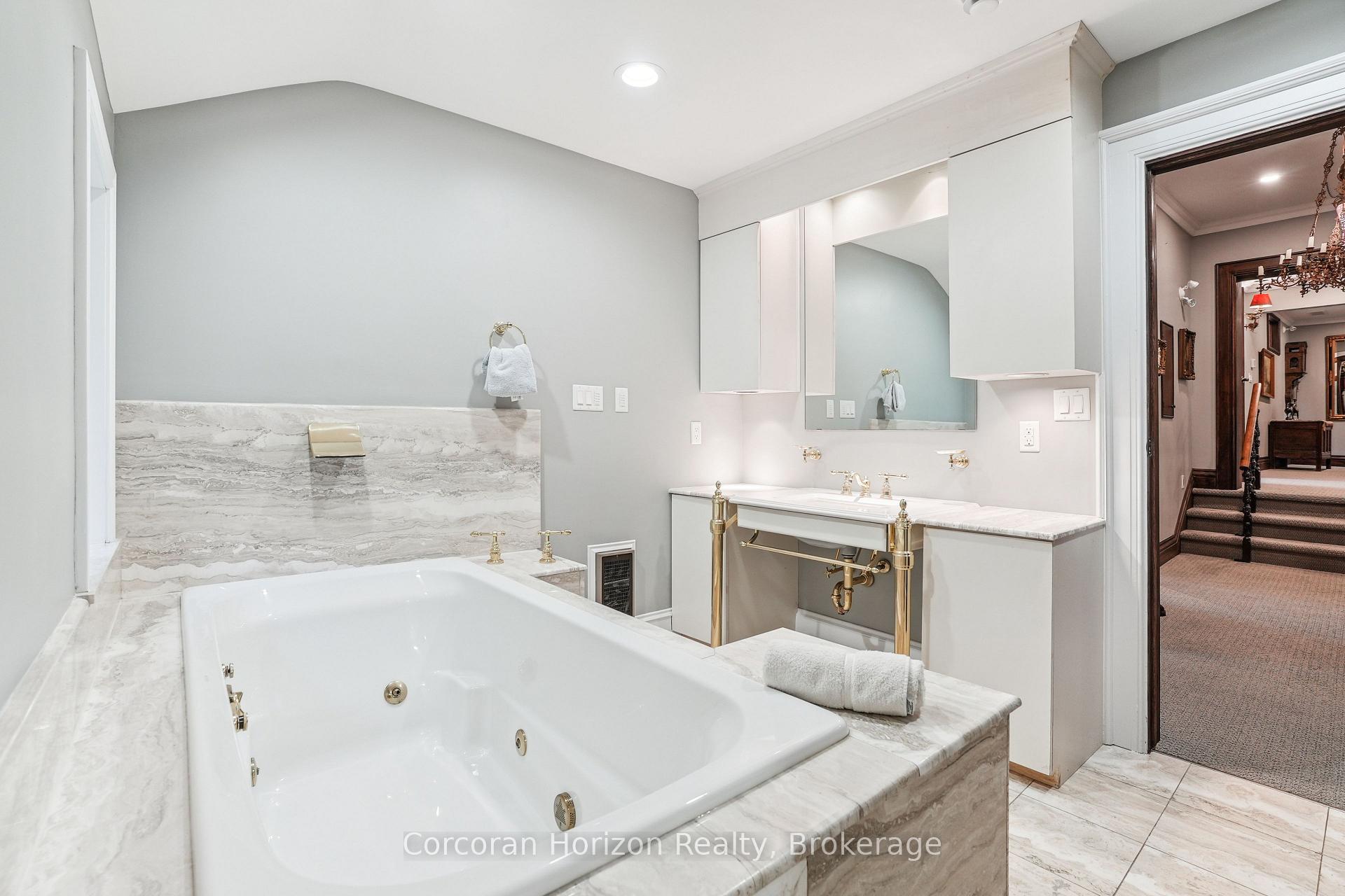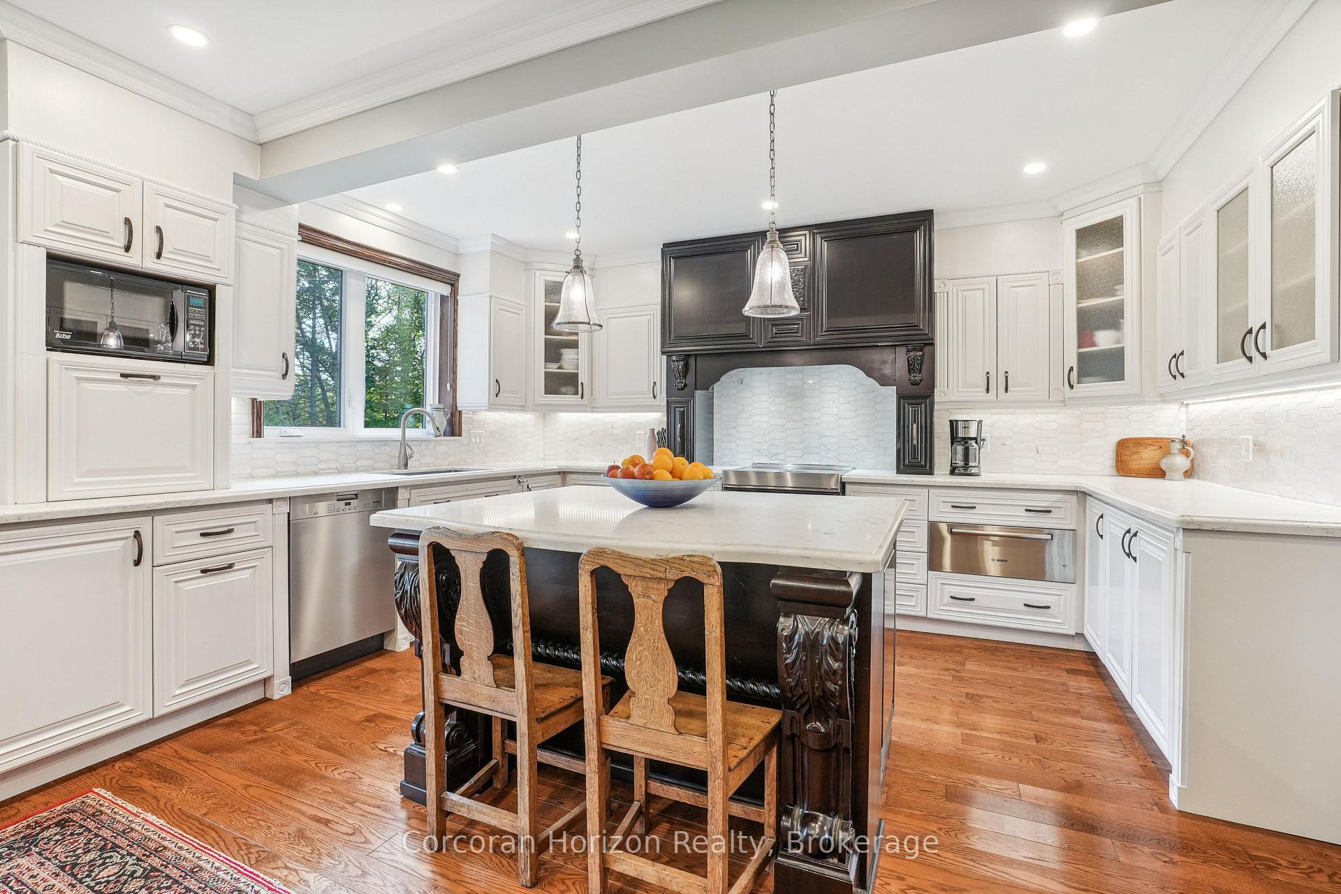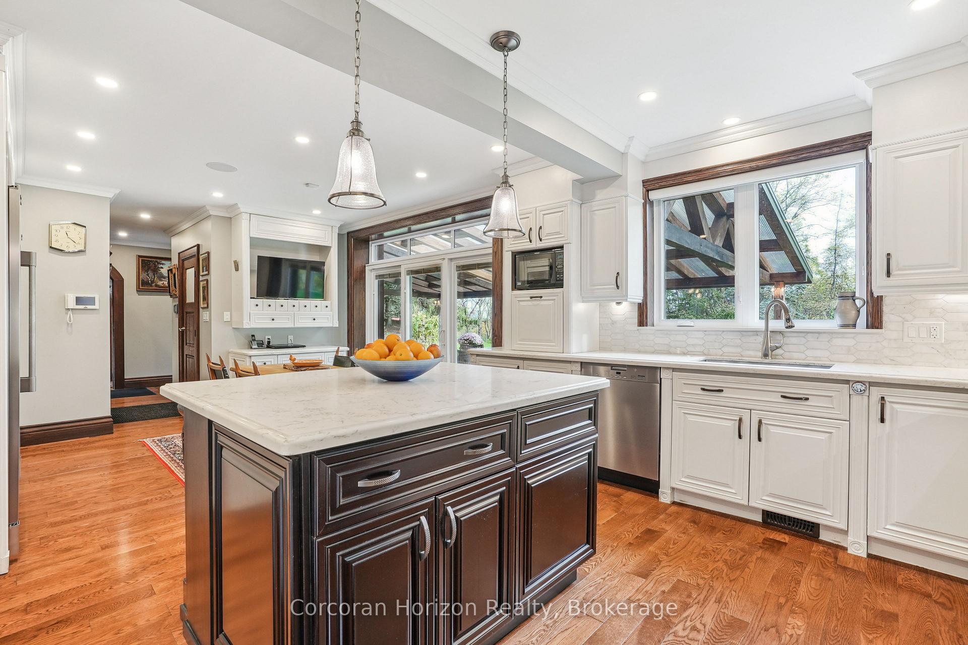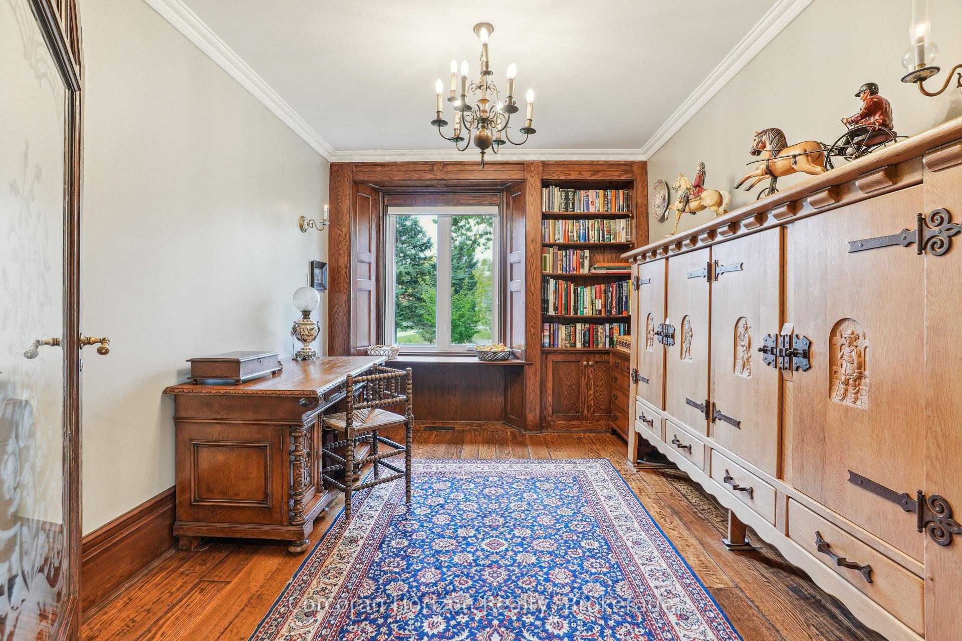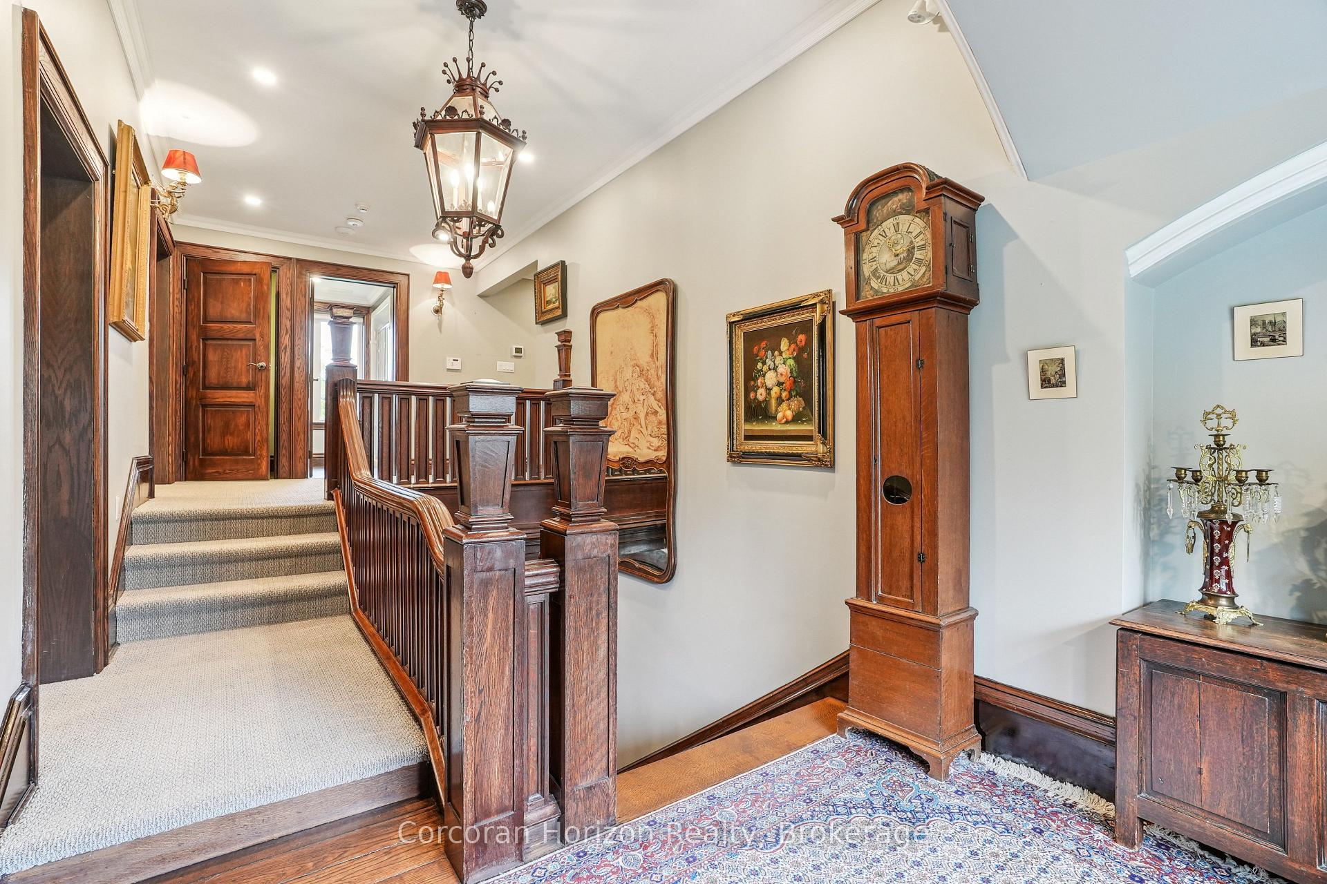 Step into history reimagined with this breathtaking 1870 estate, meticulously restored to blend timeless heritage with modern luxury. Set on over 5.5 rolling acres in Ancaster’s most coveted enclave overlooking the Dundas Valley, this home is a rare offering of elegance, craftsmanship, and comfort. Every detail has been carefully considered in the extensive restoration. Heritage features shine throughout, seamlessly complemented by modern updates: renovated kitchen and baths, new windows, plumbing, electrical, HVAC, generator, steel roof, and spray foam insulation. Fresh exterior stucco and advanced energy efficiencies ensure the home is as practical as it is beautiful. The dramatic foyer, with its lavish woodwork and sweeping staircase, makes an unforgettable first impression. The expansive living room is anchored by a towering stone fireplace, while the main floor also boasts a private office, formal dining room, two stylish washrooms, walk-in pantry, and a gourmet eat-in kitchen opening to a covered stone patio. Upstairs, accessible by both the grand staircase and a new elevator, you’ll find a spacious hallway leading to five bedrooms, three baths, and a convenient laundry. Two bedrooms include ensuites, with the sprawling primary suite offering a true retreat. The third floor, also served by the elevator, is ideal for an in-law suite with rough-ins for a kitchen and bath. A finished basement with two bedrooms and its own entrance provides yet another suite opportunity. Outside, the acreage unfolds in serene privacy. A pool awaits reactivation at the back of the property, while a detached stone garage and barn/workshop offer endless possibilities for hobbies, storage, or creative ventures. This remarkable estate pairs historic character with modern convenience, all set in one of Ancaster’s most desirable pockets. It is more than a home, it’s a lifestyle.