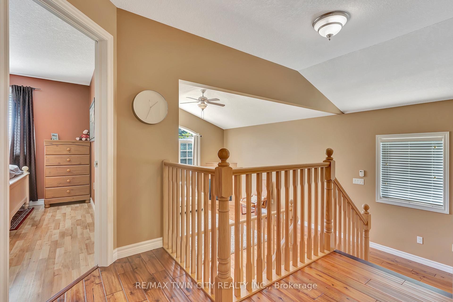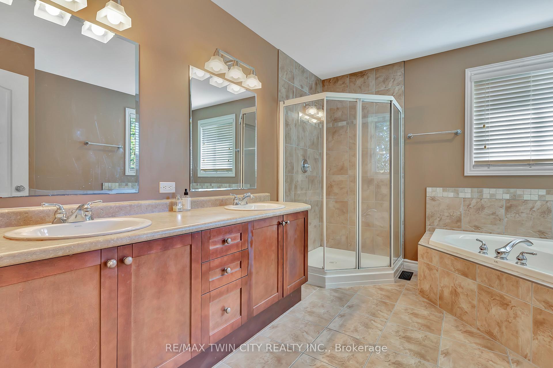 Welcome to this beautifully maintained home in the highly desirable neighbourhood of Lexington/Lincoln Village in waterloo. The double wide concrete driveway and lovely walkway add to the curb appeal of this 3 bed, 4 bath, double car garage 2 storey. Inside there is gleaming hardwood throughout the main floor, upgraded kitchen with stone backsplash, 2 pce bath and oversized living room. The dining room opens to both the kitchen and the living room and has sliding doors taking you out to your fully fenced private backyard with a large deck to enjoy the outdoors and a shed for storage. Upstairs you will love the expansive great room with large windows and a gas fireplace for cozy nights. The well laid out floor plan gives you 3 spacious bedrooms including the primary with a spa-like ensuite that has double sinks, a large soaker tub and separate walk-in shower as well as another 4 pce main bath for guests and family. The fully finished basement can be used as you wish as a rec room or extra living space with its own 3 pce bathroom with walk in shower. Close to Rim Park, Groceries, Transportation, great Schools and the Expressway! Located extremely close to the expressway, 8 mins to both UW and WLU, this rare find will not last!