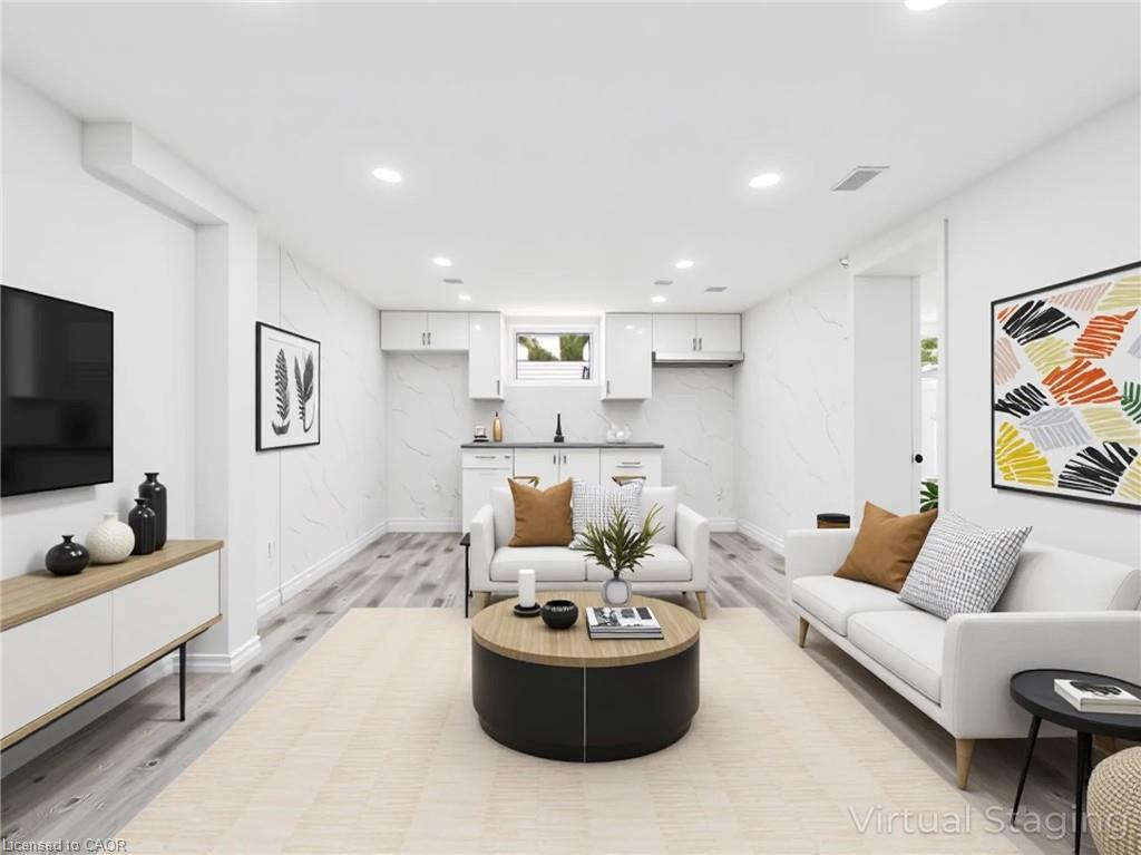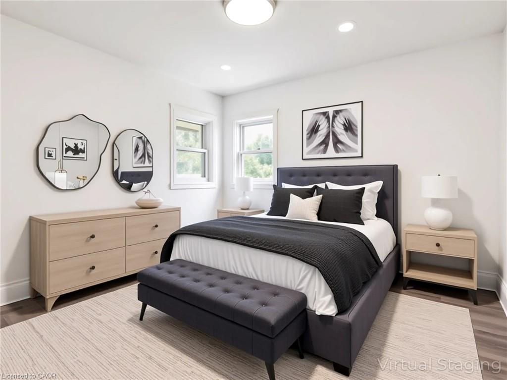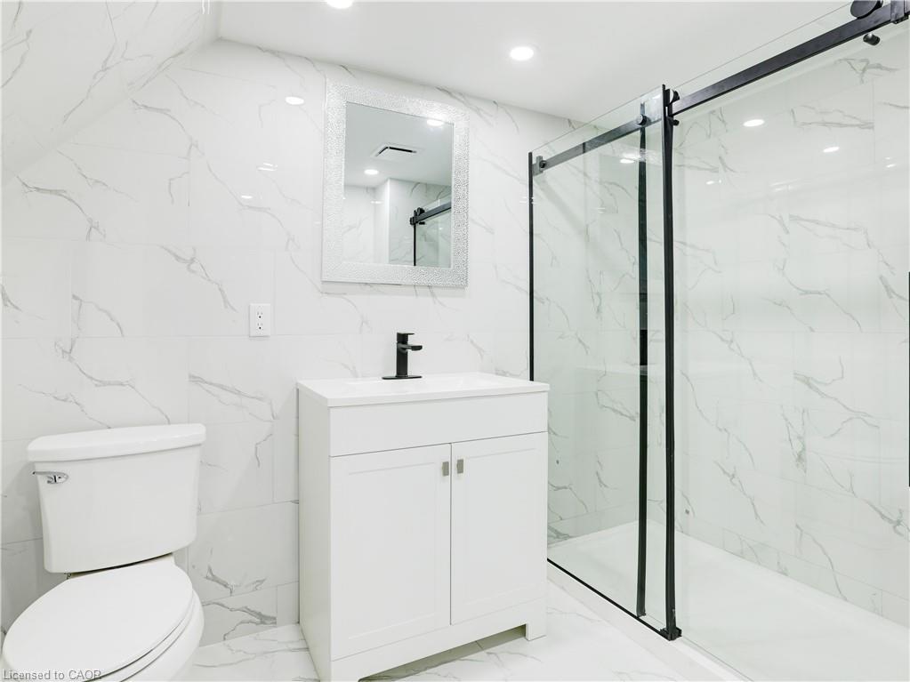 Welcome to this fully renovated detached home located in the prestigious neighborhood of Kitchener. This beautiful 3-bedroom bungalow blends modern upgrades with comfortable living, offering an open-concept layout perfect for family life and entertaining. Step into a spacious, carpet-free main floor that features a bright and airy living room combined with a dining area, creating a seamless flow throughout. The brand-new kitchen is a standout, boasting elegant ceramic flooring, quartz countertops, and contemporary finishes that will impress even the most discerning buyer .Large new windows flood the space with natural light, enhancing the open feel and providing a strong connection between the indoors and outdoors. Each of the three bedrooms offers generous space, and the main floor also includes a stylishly renovated 4-piece bathroom . The home also features a fully finished basement with a separate entrance ideal for in-laws, guests with 2 full washrooms. It includes one spacious bedroom attached with 4 piece ensuite , a modern open-concept kitchen combined with a recreation room, and another bedroom with a brand-new 3-piece bathroom featuring black fixtures and a sleek standing shower.New air conditioner. Located close to all essential amenities, highways, schools, and parks, this turn-key home is ready for you to move in and enjoy. Don’t miss the opportunity to own this stunning, freshly renovated property in one of Kitchener’s most desirable areas!