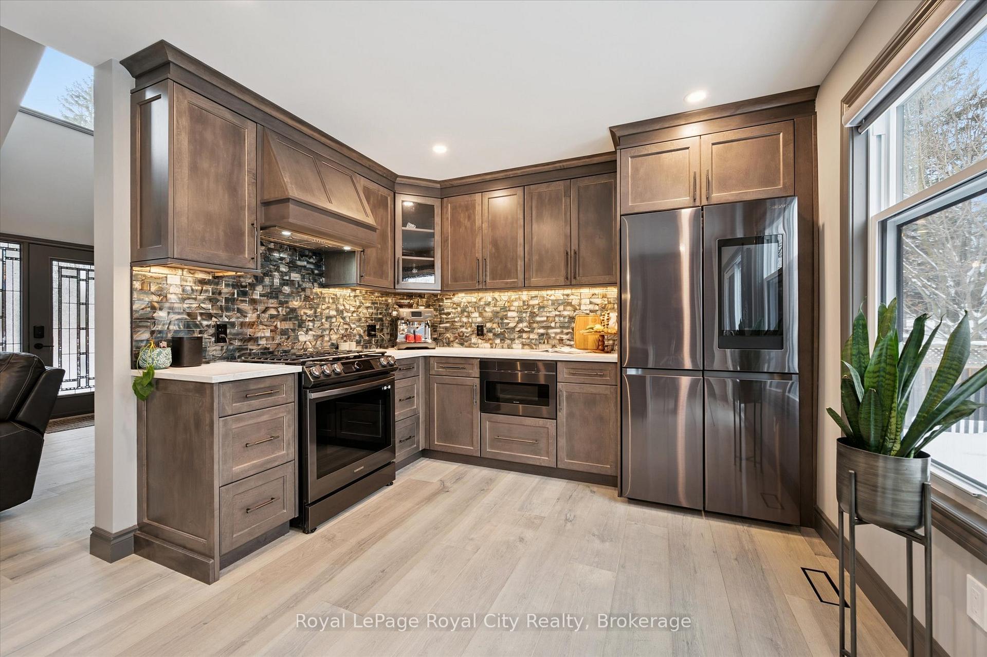 If you are looking for a beautifully updated custom built home walking distance to Downtown Elora, then this is it! This one is a real gem hiding in plain sight. Located on a very quiet little known street – not even a lot of the locals know it is there. If you are a discerning buyer looking for something different, you need to take a look. The current owner has done a truly spectacular job with high end updates over the past couple years – designer kitchen including new appliances, a jaw dropping luxury ensuite, fireplace wall and maple flooring to name a few – plus exterior updates like windows, siding, composite decking, interlock driveway and more. Great curb appeal with a magazine ready interior to match. Open concept with vaulted ceiling to upper level. A very spacious feeling home with plenty of natural light. Over 2200 square feet of living space, 3 bedrooms and 3 bathrooms. (Flexible floor plan would allow for a 4th bedroom on lower level if needed.) Main floor primary suite with walk through closet and that “to die for” ensuite. Renovated main floor laundry room. Two more bedrooms and nicely updated bath on the upper level. Completely finished lower level with walk out to double car garage. Covered front porch and spacious decking out back (with hot tub and gas bbq hookup). Situated on an amazing large private treed lot. Fenced year yard. Close to the Gorge and walking trails – and a short stroll to the restaurants, cafes, shops and everything Elora has to offer. A special home with a flexible & unique layout that will work for both empty nesters and families.