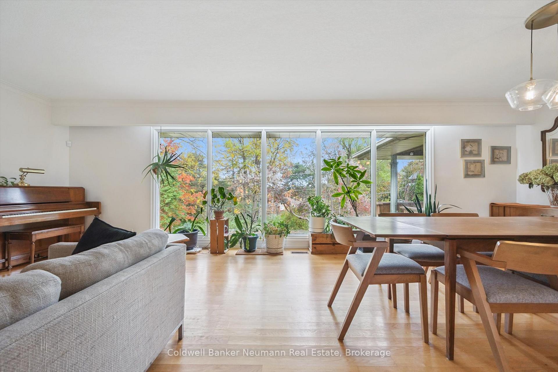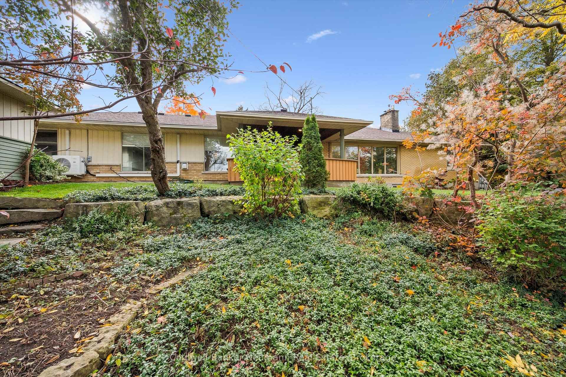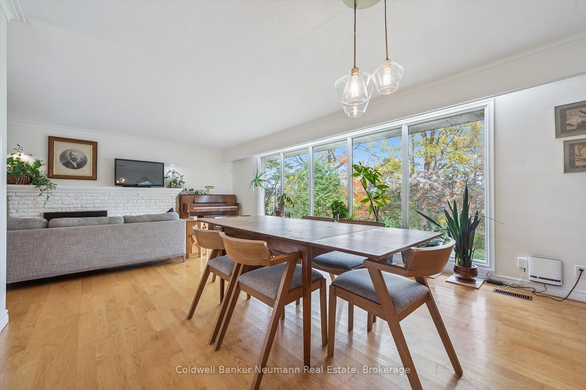 Welcome to 36 Harcourt Drive, a rare property in Guelph’s highly sought-after Old University neighbourhood on a flagship street. The location is unbeatable, with walking distance to Downtown parks, trails, and the University. This home offers two completely self-contained living spaces. The main residence is a classic ranch bungalow with three bedrooms on the main floor, plus a flexible bonus room that can serve as a playroom, mudroom, or home office, conveniently positioned between the kitchen and the double-car garage. Original hardwood flooring runs throughout much of the main level, enhancing the generous kitchen, expansive dining area, and sun-filled living room highlighted by floor-to-ceiling windows. Downstairs, the fully finished basement extends the living space with two additional bedrooms, a full bathroom, laundry, and abundant storage. The second home, added in 2002, was thoughtfully designed as a beautiful main-floor apartment ideal for in-laws, guests, or rental income. This bright, open-concept suite features a bedroom, full bathroom, spacious living and dining area with a gas fireplace, custom Olympic Kitchens built-ins, a full kitchen, and its own private laundry. Both homes enjoy access to a shared back deck overlooking a peaceful canopy of mature trees and established perennials. The backyard also includes a powered, drywalled shed-perfect for a workshop, studio, or creative space. With five bedrooms in the main home plus a separate one-bedroom suite, this property offers exceptional versatility for multi-generational living, investment potential, or a home with a dedicated workspace. Parking is plentiful, with a double-car garage and space for six or more vehicles in the driveway. A rare offering in one of Guelph’s most desirable neighbourhoods, this property truly needs to be experienced in person.