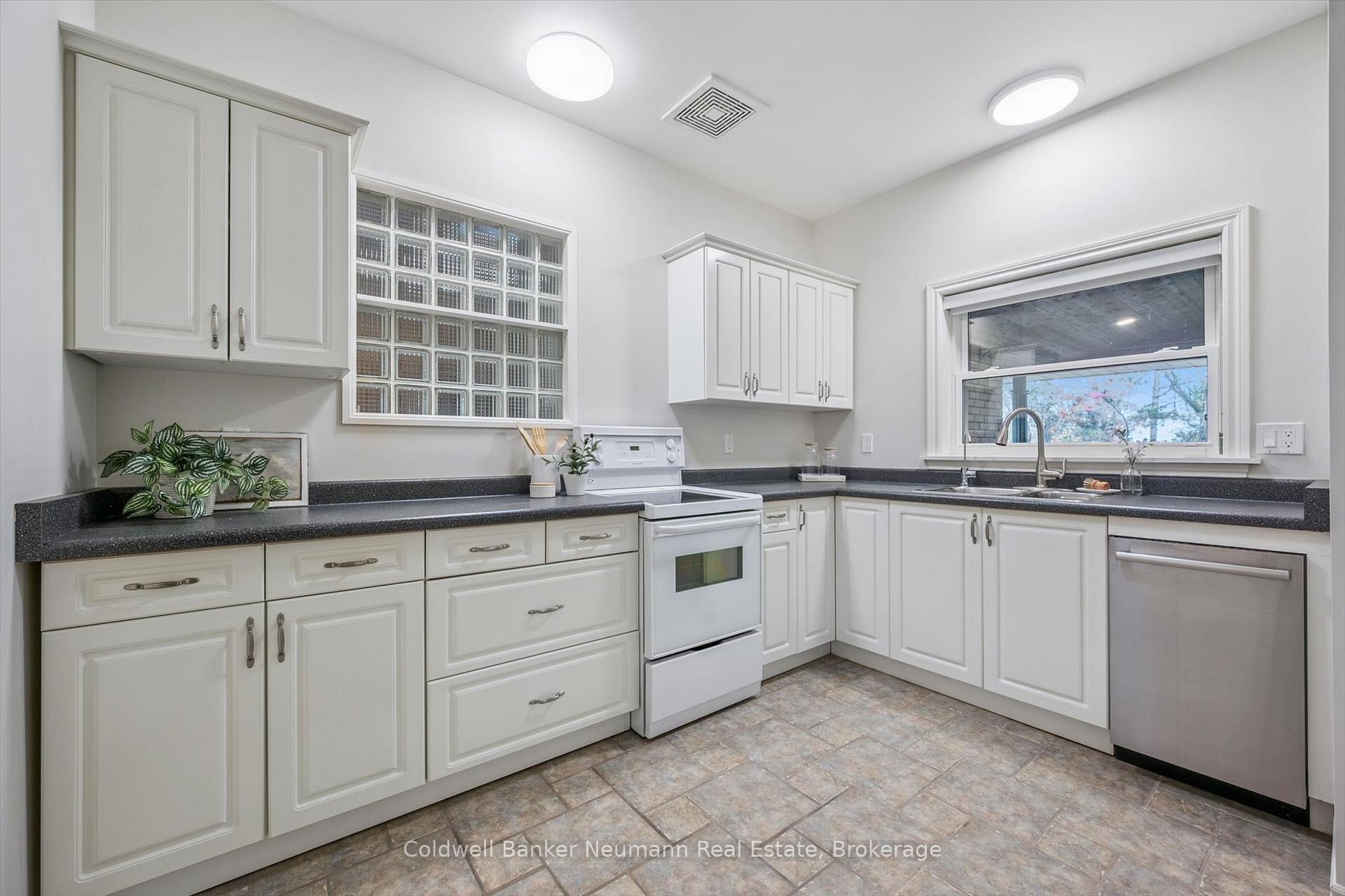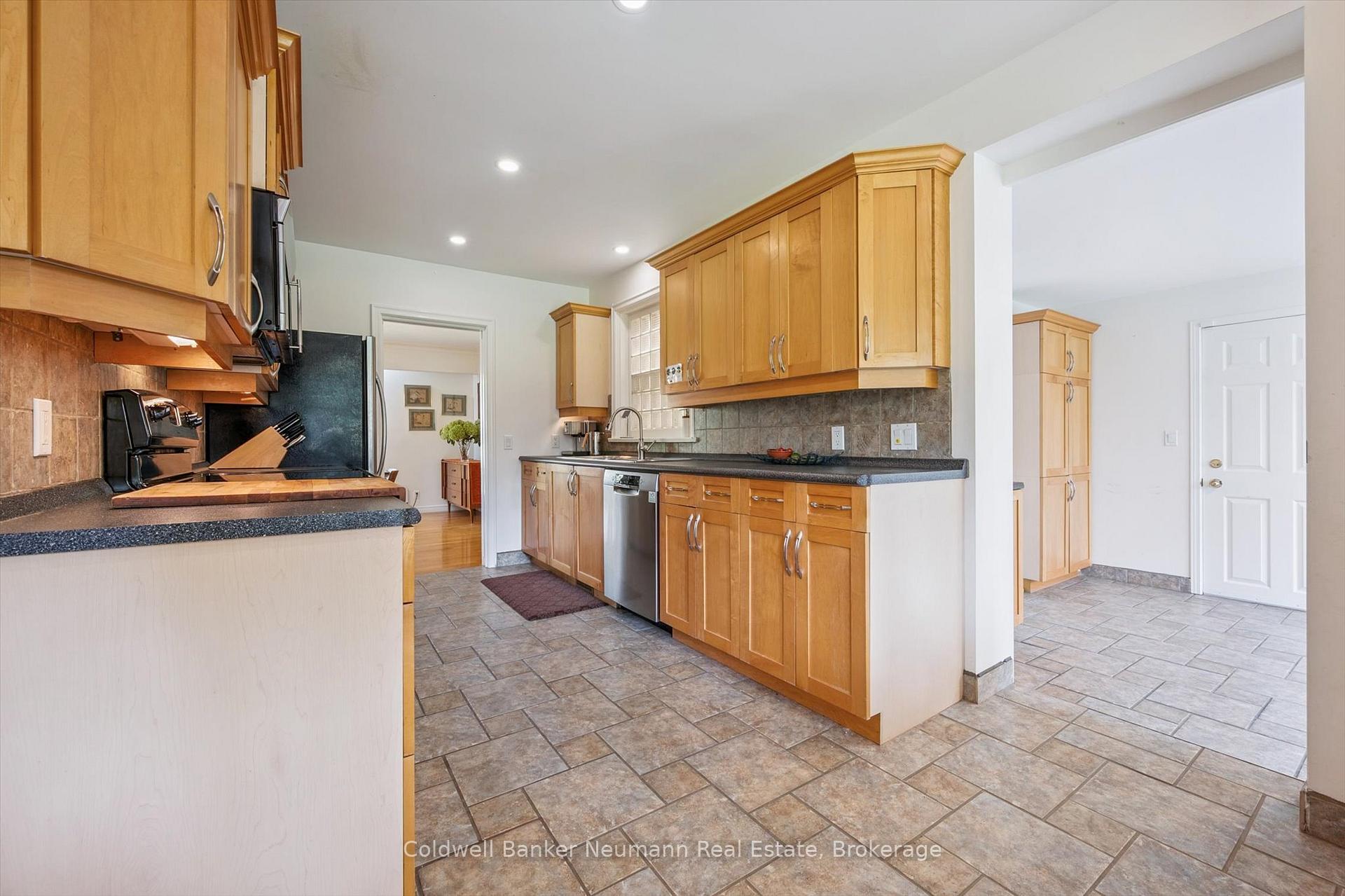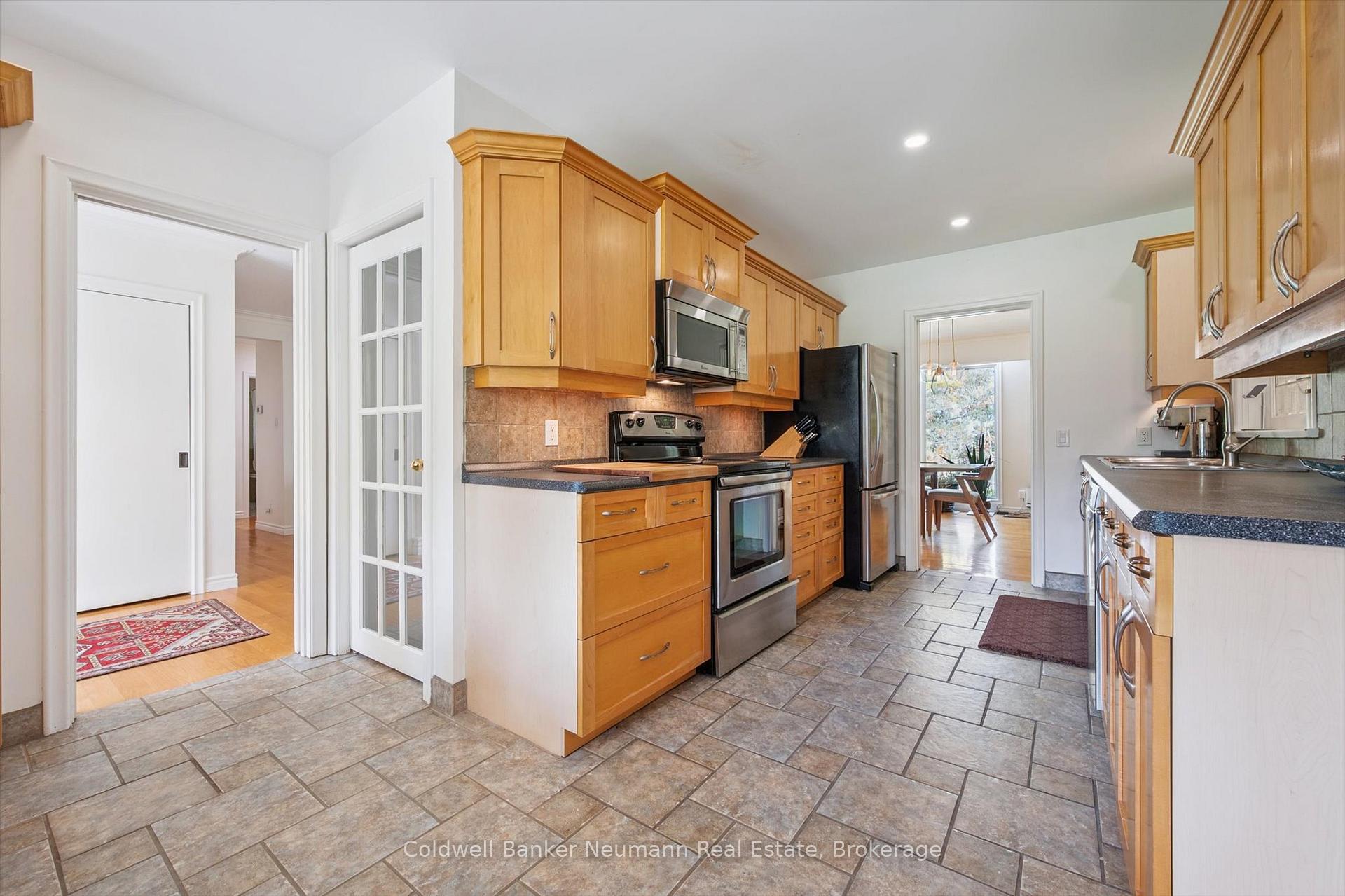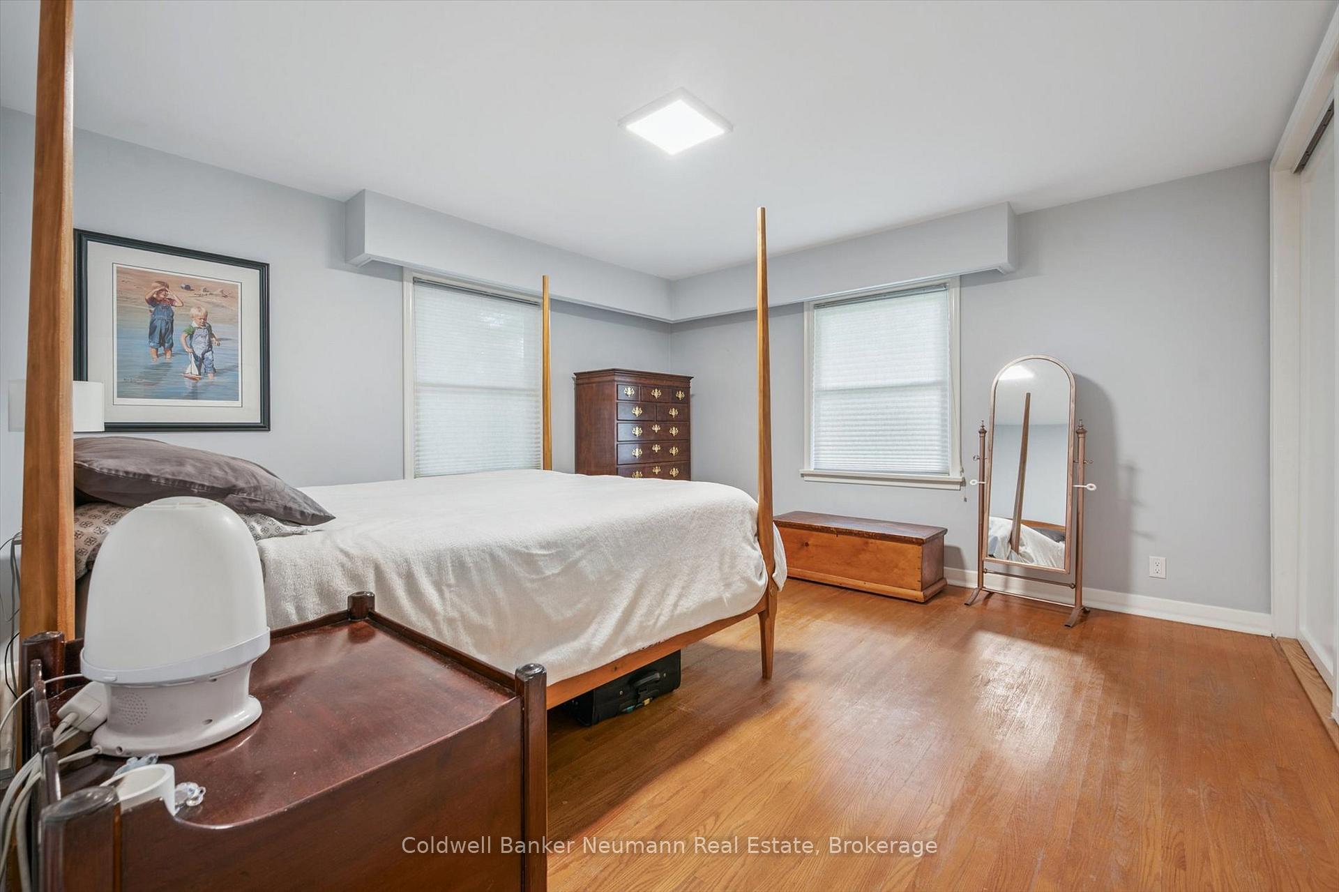Welcome to 36 Harcourt Drive, a rare property in Guelph’s highly sought-after Old University neighbourhood on a flagship street. The location is unbeatable, with walking distance to Downtown parks, trails, and the University. This home offers two completely self-contained living spaces. The main residence is a classic ranch bungalow with three bedrooms on the main floor, plus a flexible bonus room that can serve as a playroom, mudroom, or home office, conveniently positioned between the kitchen and the double-car garage. Original hardwood flooring runs throughout much of the main level, enhancing the generous kitchen, expansive dining area, and sun-filled living room highlighted by floor-to-ceiling windows. Downstairs, the fully finished basement extends the living space with two additional bedrooms, a full bathroom, laundry, and abundant storage. The second home, added in 2002, was thoughtfully designed as a beautiful main-floor apartment ideal for in-laws, guests, or rental income. This bright, open-concept suite features a bedroom, full bathroom, spacious living and dining area with a gas fireplace, custom Olympic Kitchens built-ins, a full kitchen, and its own private laundry. Both homes enjoy access to a shared back deck overlooking a peaceful canopy of mature trees and established perennials. The backyard also includes a powered, drywalled shed-perfect for a workshop, studio, or creative space. With five bedrooms in the main home plus a separate one-bedroom suite, this property offers exceptional versatility for multi-generational living, investment potential, or a home with a dedicated workspace. Parking is plentiful, with a double-car garage and space for six or more vehicles in the driveway. A rare offering in one of Guelph’s most desirable neighbourhoods, this property truly needs to be experienced in person.