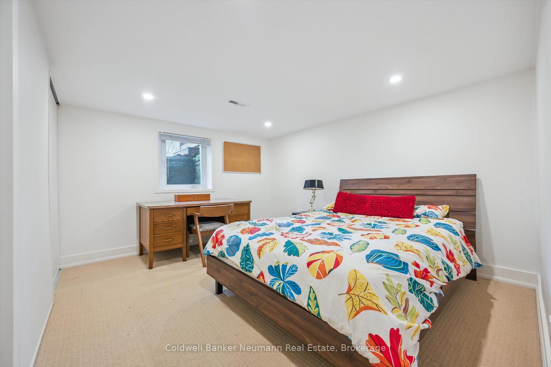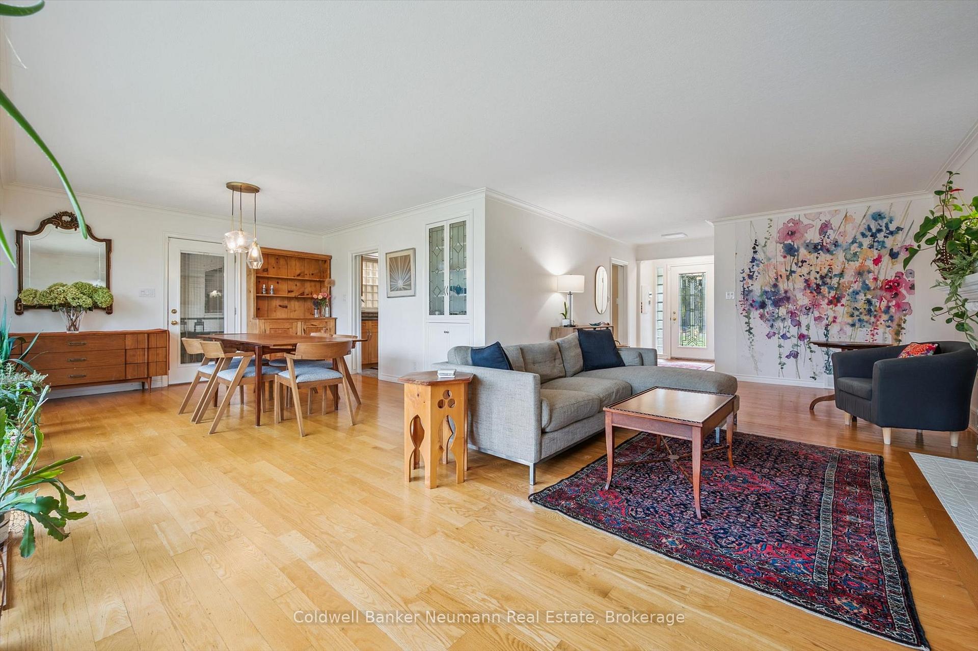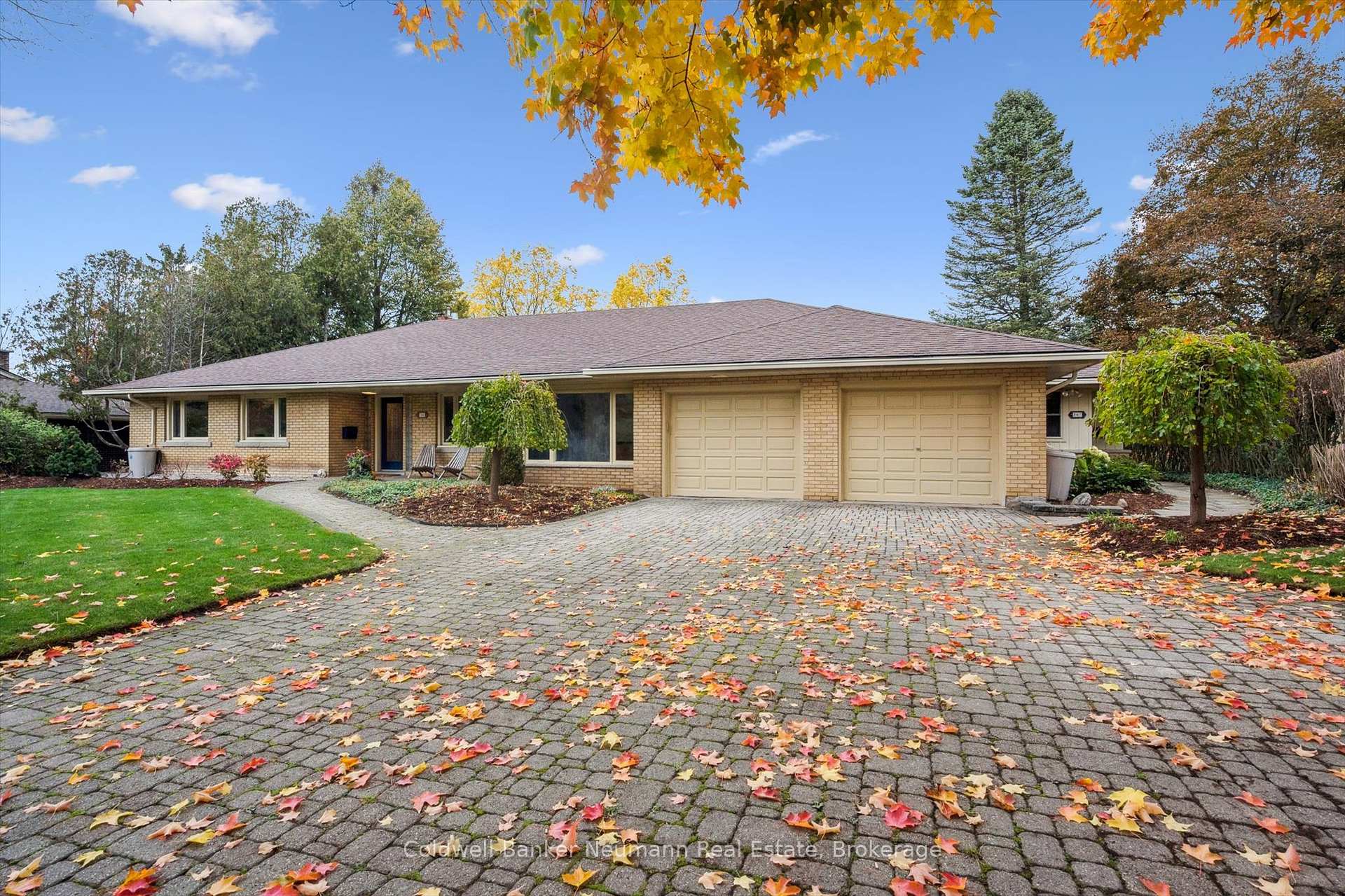 Welcome to this spacious and truly unique bungalow in Guelph’s highly desirable Old University neighbourhood. This property offers something rare – two homes in one, all above grade. Step through the front door into the main residence, featuring three bedrooms on the main floor and a versatile bonus room that can serve as a playroom, mudroom, or home office, conveniently located between the kitchen and the double-car garage. Original hardwood floors flow through most of the main level, complementing the large kitchen, expansive dining area, and a bright living room with floor-to-ceiling windows.The main home also includes a full basement, offering two additional bedrooms, another full bathroom, laundry facilities, and ample storage space. Now, let’s talk about the second home. Added in 2002, this thoughtful addition created a beautiful main-floor apartment – perfect for in-laws, guests, or rental income. This bright, open-concept suite features one bedroom, a full bathroom, a spacious living and dining area with a gas fireplace, custom built-ins by Olympic Kitchens, a full kitchen, and its own laundry. Both homes share a lovely back deck overlooking a serene canopy of trees and established perennials. The backyard also features a powered and drywalled shed – ideal for a workshop or studio. With five bedrooms in the main house plus a one-bedroom suite, this property offers exceptional flexibility as a multi-generational home, investment property, or home with a dedicated office space. Parking is abundant, with space for two vehicles in the garage and six or more in the driveway. A rare opportunity in one of Guelph’s most sought-after neighbourhoods – this is a property you’ll want to see in person.