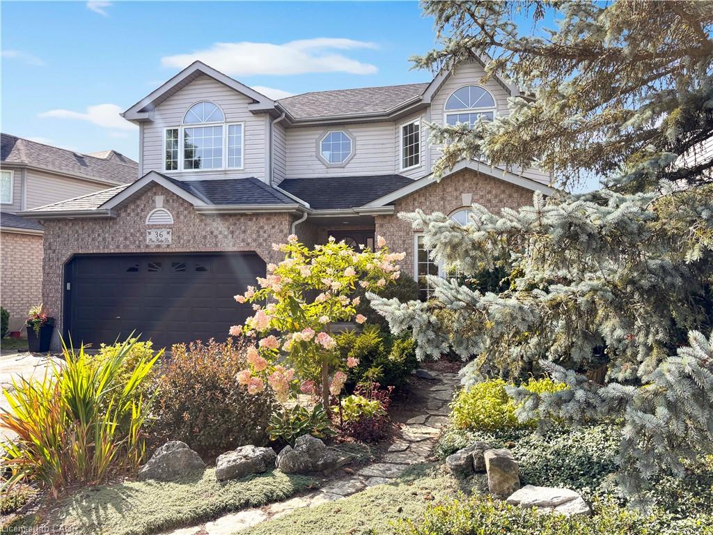 Welcome to 36 Pine Ridge Drive, a beautifully updated 3-bedroom, 3-bathroom home set in one of Guelphs most desirable neighbourhoods. With no front or rear neighbours and backing directly onto the scenic Orion Trails, this property offers privacy, nature, and modern comfort. A full main floor renovation in 2020 introduced a stunning Paragon Kitchen with quartz countertops, a Dekton island, and premium AEG appliances from Germany, including an induction cooktop and oven tower with both a regular and steam oven. The open-concept layout flows seamlessly to the dining area and the new deck (2024), creating an ideal space for entertaining indoors and out. The upper level features spacious bedrooms with vaulted ceilings and large windows. The ensuite and main bathrooms (2021) were fully renovated with stylish, spa-like finishes, while the powder room was refreshed in 2020.The bright walkout basement expands your living space with a Valor fireplace (2023) and direct access to the private backyard, making it perfect for a home office, gym, or family retreat. Major updates provide peace of mind, including a new roof (2018), new furnace (2023), and the new backyard deck (2024). Additional highlights include an attached double garage, new LG washer/dryer tower, and all attached appliances. With its blend of thoughtful updates, trail-side location, and move-in-ready condition, 36 Pine Ridge Drive is the perfect place to call home.