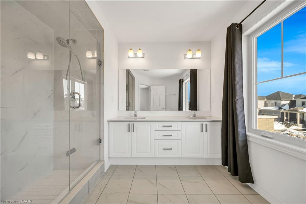 This stunning 3-bedroom, 3-bathroom SEMI DETACHED home shows like a model and truly stands out from the rest. Thoughtfully designed and meticulously maintained, it features quartz countertops throughout, high-end appliances, a cozy gas fireplace, and beautifully upgraded showers that add a touch of everyday comfort. From the moment you step inside, you’ll appreciate the quality finishes, modern design, and attention to detail that elevate this home above the ordinary. The open-concept main floor is perfect for entertaining, while the inviting living space offers the ideal setting to relax by the fireplace after a long day. Upstairs, the spacious primary suite provides a private retreat designed for comfort and style.Located in a desirable neighbourhood in Fergus, close to parks, schools, and local amenities, this home is ideal for families, professionals, or anyone seeking modern living in a thriving small-town community.A perfect blend of style, comfort, and convenience – ready for you to call home.