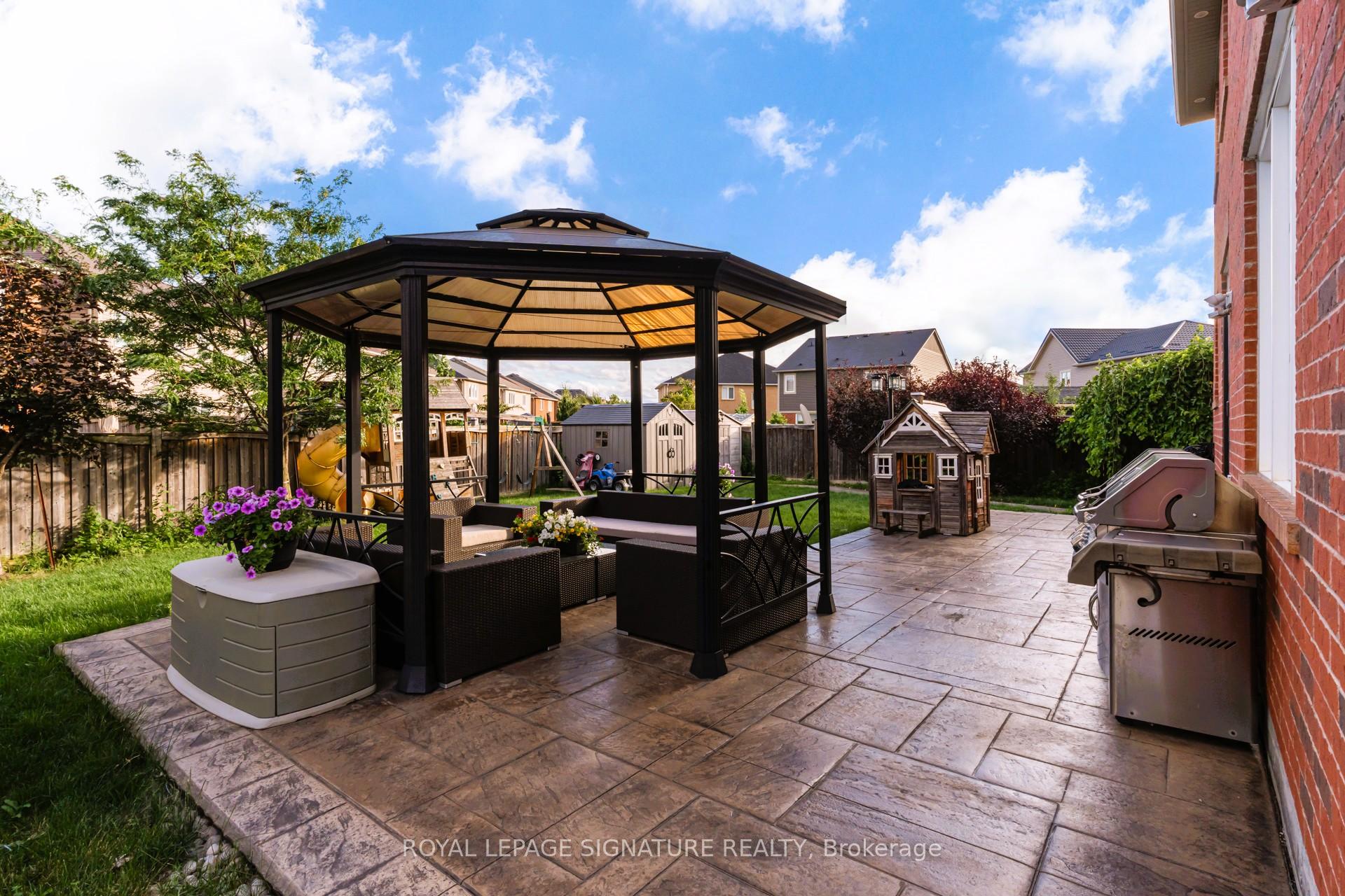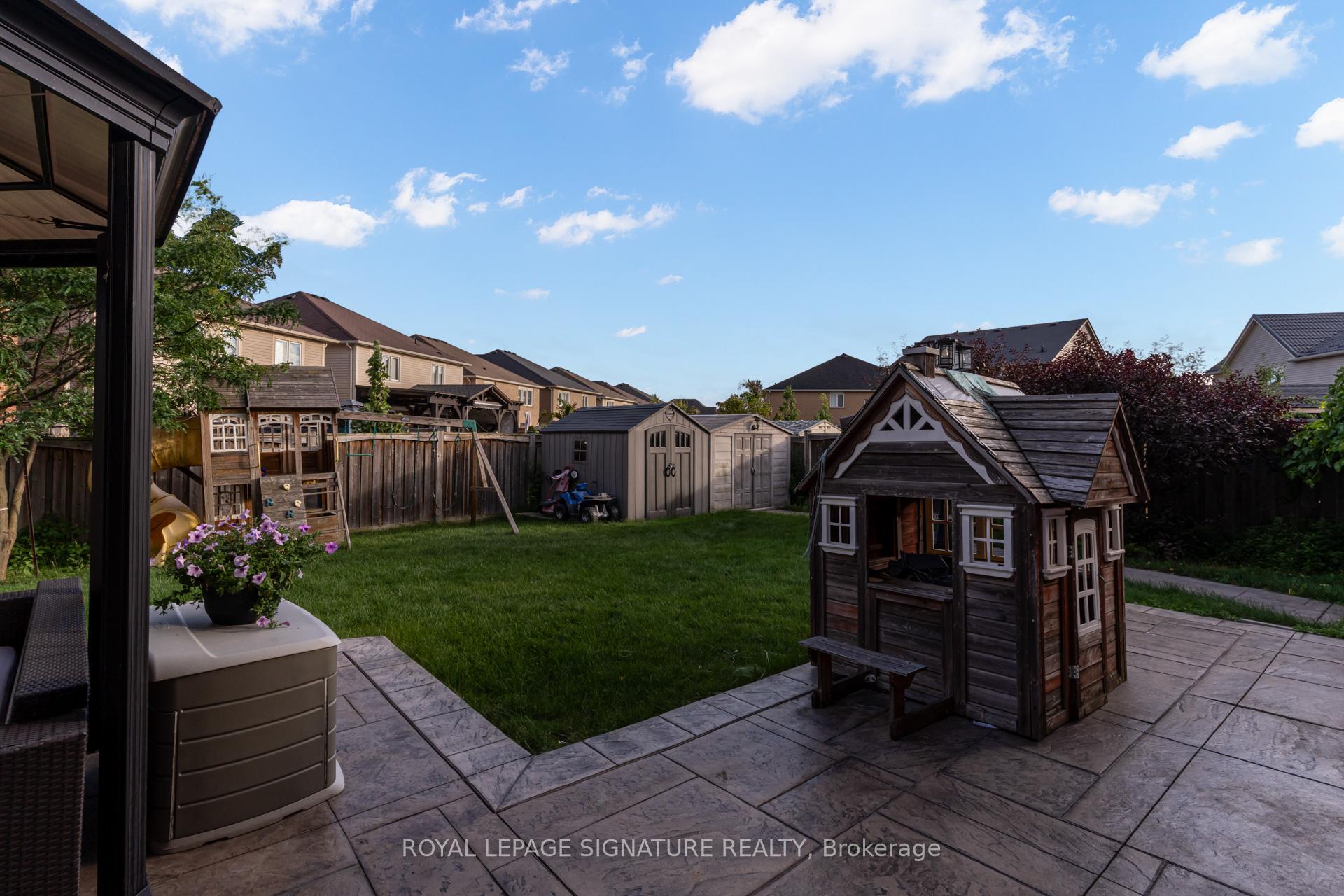 Stunning Family Home on a Premium Lot in Milton!Welcome to this beautifully upgraded home Originally a 4-bedroom layout, it has been thoughtfully converted to 3 bedrooms + 2nd flr media room ideal for movie nights or a home office on 2nd floor or Seller can convert back to 4th bedroom by adding wall back. The home is nestled on one of the larger lots in the neighbourhood, offering exceptional outdoor and indoor living. From the moment you arrive, youll notice the stamped concrete driveway and walkways that flow seamlessly from front to back, surrounded by lush, professionally landscaped gardens an entertainers dream complete with an above-ground pool for summer fun!Inside, youll find hardwood flooring throughout and elegant wainscotting that add timeless charm to the home. . The finished basement extends your living space with a bedroom, 3-piece bathroom, rec room, and kitchenette perfect for guests or extended family.Additional highlights include no sidewalk, providing ample parking, and a family-friendly location close to parks, schools, and shopping.This home truly has it all space, style, and comfort inside and out. Dont miss your chance to own this exceptional property in Milton! Extras: 2 EV charger (Telsa 48amp and 40amp 200amp upgrade panel, Backup generator ready, Pattern concrete surrounding the whole hose $60K upgrade, Brand new furnace installed 2024, 14 seer energy efficient A/C installed 2023, Wifi garage openers installed 2025, Hardwood floor with extra subfloor for soundproofing, Wainscoting and waffle ceiling in the living room, Led exterior pot lights, Gas barbecue line, California shutters, Commercial grade gas stove And range hood, Upgraded cabinets, 6/7 car parking on driveway plus 2 car garage, Above ground pool, 4 storage sheds, Energy efficient hot water tank, Gas laundry, Cold cellar, Energy efficient certified home with R60-R80.