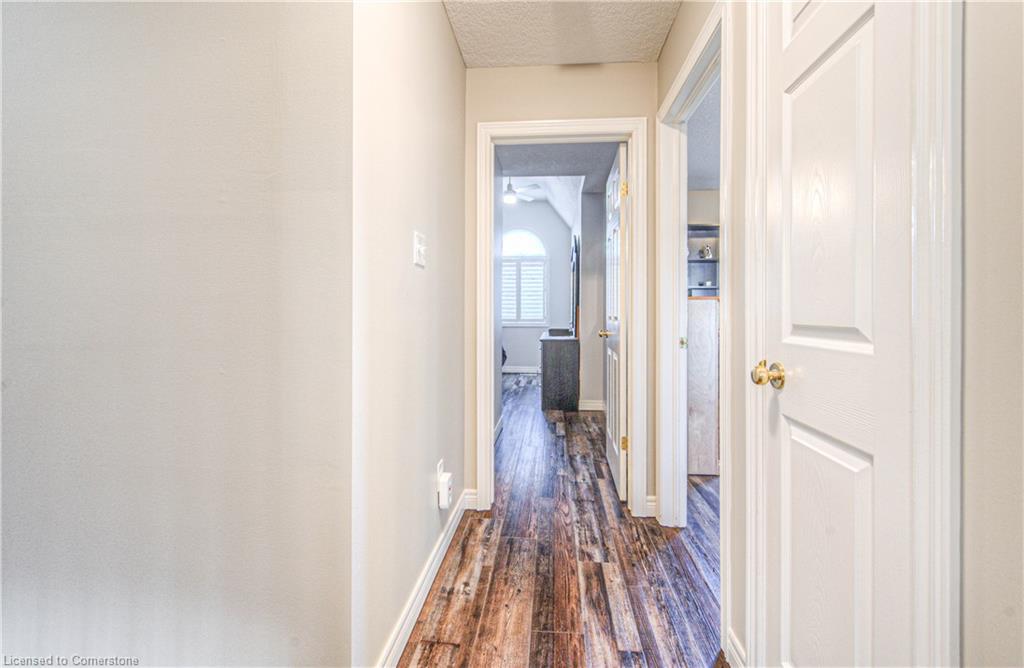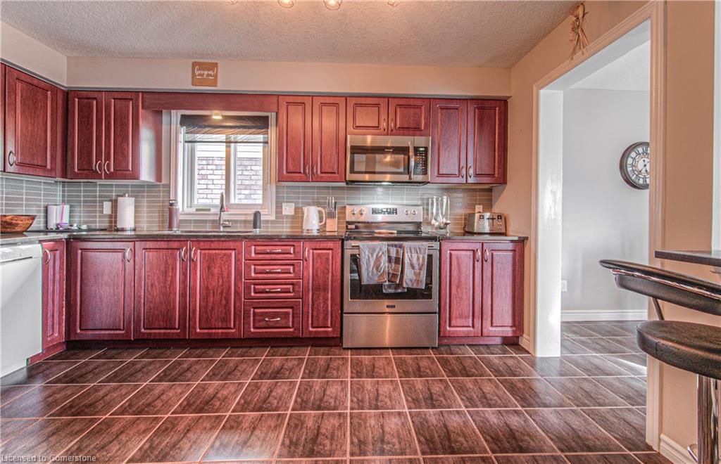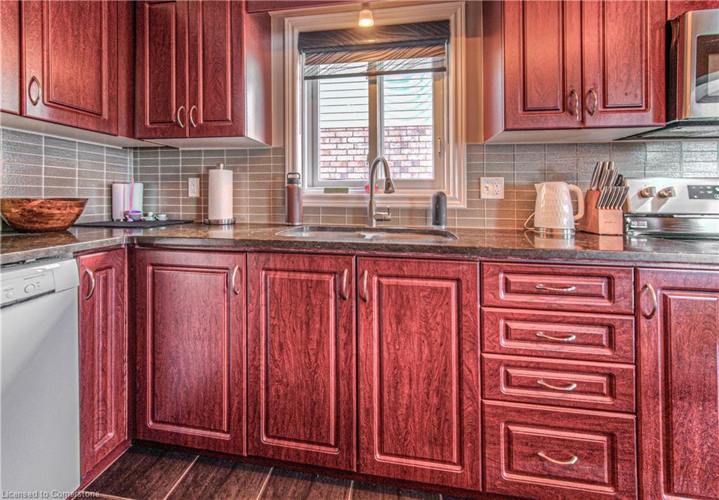 Welcome to your dream home in the highly sought-after neighborhood of Doon South! This beautiful and freshly painted 3-bedroom, 3-bathroom residence is designed with comfort and modern living in mind. As you step onto the main floor, you’ll appreciate the carpet-free layout, featuring a warm, tiled entryway, a convenient powder room, and easy access to a 1.5-car garage—perfect for your busy lifestyle. Imagine gathering in the large kitchen, complete with stunning granite countertops and ample cupboard space. The eat-in island opens up to the dining and living areas, where natural light pours in through large windows and a sliding door, leading you to your private, fenced backyard. This serene outdoor space, adorned with a lovely wooden patio, is just waiting for you to create cherished memories with friends and family. As you head upstairs, you’ll find three cozy bedrooms, each with the inviting warmth of laminate flooring, along with a well-appointed 4-piece main bathroom. The primary bedroom offers a welcoming retreat, featuring vaulted ceilings, a spacious walk-in closet, and plentiful windows that fill the room with light. The 4-piece ensuite, complete with a whirlpool tub and separate shower, will be your personal sanctuary for relaxation after a long day. The basement is a treasure trove of possibilities, boasting a large recreation room where you can unwind or entertain, along with a generous utility/laundry room that provides extra space for all your needs and dreams. Step outside to discover a beautifully landscaped and fully fenced backyard, complete with a deck and shed. This outdoor haven is perfect for hosting gatherings, letting your children and pets play safely, or simply enjoying a quiet moment in nature. Your new home is ideally situated near schools, Conestoga College, parks, trails & public transit, easy access to Highway 401. Come and experience all the warmth and joy this detached home has to offer, priced at the cost of a townhouse!