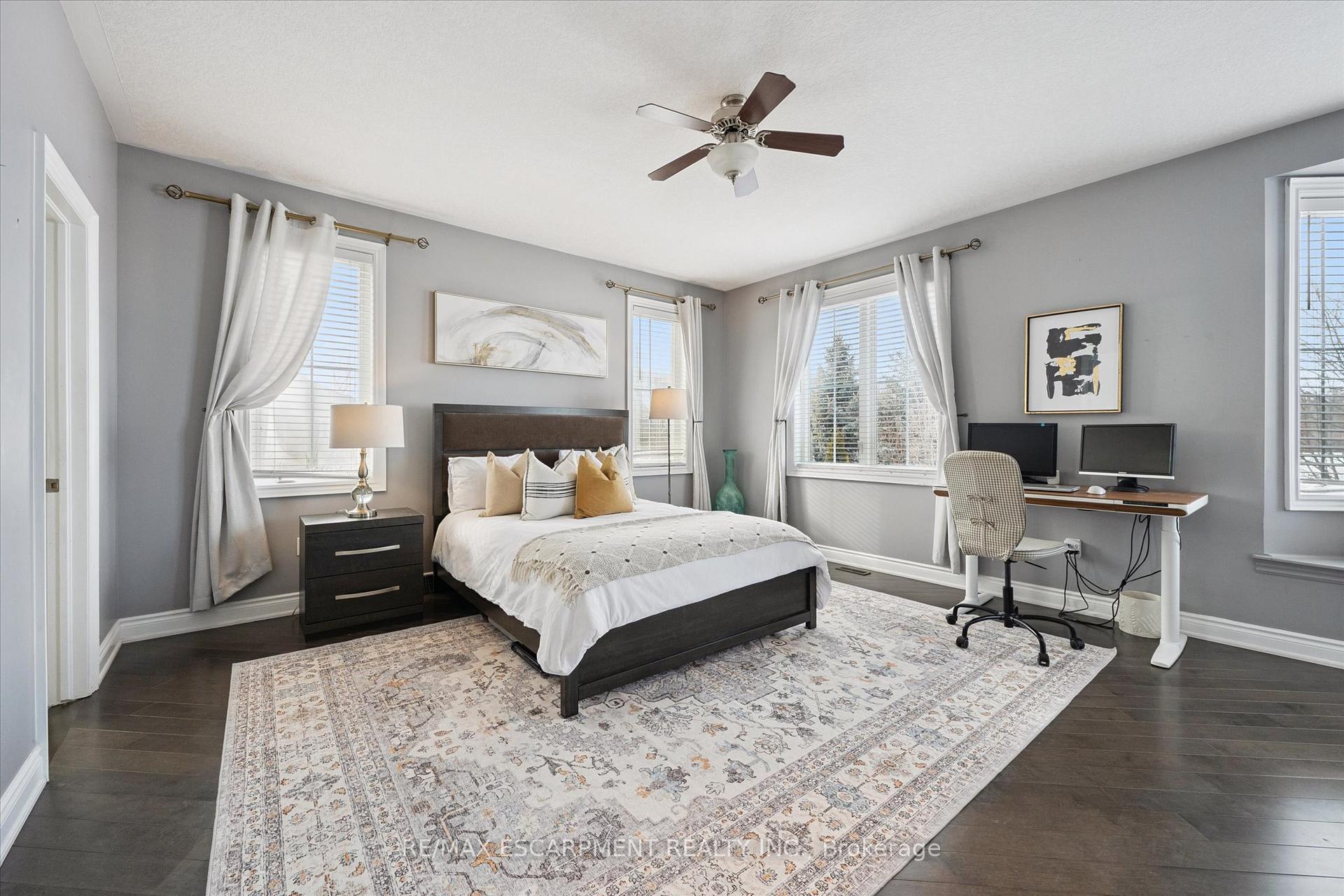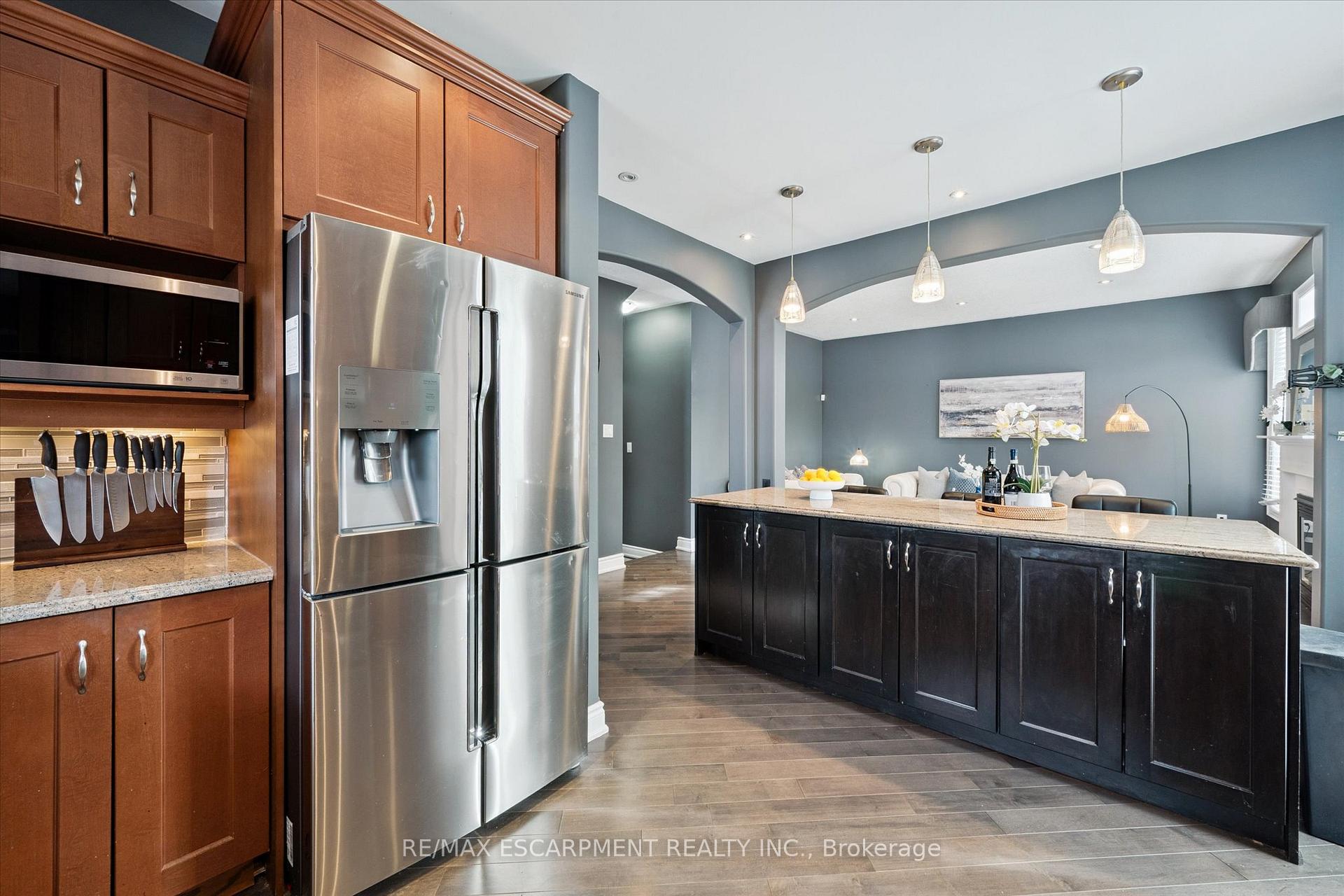 Welcome to this beautifully updated 3+1 bedroom, 2.5 bathroom home, situated on a 50 ft lot in the sought after Mill Pond community of East Hespeler. Known for its family friendly atmosphere, mature streetscapes, parks, walking trails, and convenient access to major commuter routes, this neighbourhood is the perfect blend of comfort, convenience, and community. Amazing curb appeal with covered veranda & double front doors. Inside, you’ll find carpet free living with 9 foot ceilings and maple hardwood flooring(Jan ’20) flowing seamlessly throughout the main level. The renovated kitchen is the heart of the home, thoughtfully redesigned to create a bright open concept layout ideal for entertaining. It features granite countertops, upgraded maple cabinetry with crown moulding, glass backsplash, under cabinet LED lighting, stainless steel appliances, and an 8 foot island with custom cabinetry & breakfast bar seating. Sliding patio doors lead directly to the backyard. The spacious living room offers pot lights, 5″ baseboards, and cozy gas fireplace with classic white mantel and overhead transom. The expansive dining room, with soaring ceilings and abundant windows, is flooded with natural light and perfect for hosting large gatherings. Convenient inside entry to the double car garage. Upstairs, you’ll find three generously sized bedrooms along with the convenience of bedroom level laundry. The primary suite is a retreat featuring a large walk-in closet and luxurious 5 pc ensuite with double sinks, granite countertop, corner Jacuzzi tub, and upgraded glass shower with marble seat. An additional 4 pc bathroom completes this level. The fully finished basement has a large rec room, 4th bedroom, rough-in for an additional bathroom, and a versatile office/storage room – perfect for guests, teens, or a home gym setup. Step outside to your private backyard oasis featuring a 16′ x 24′ cedar deck with BBQ gas line, a hot tub, and 10′ x 10 shed. Central Vac throughout.