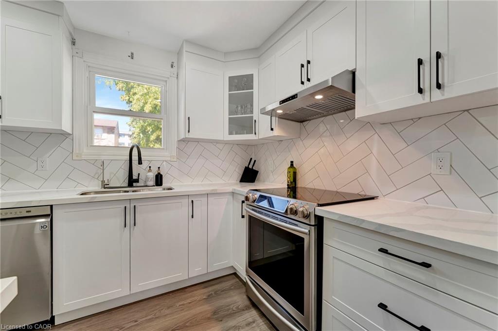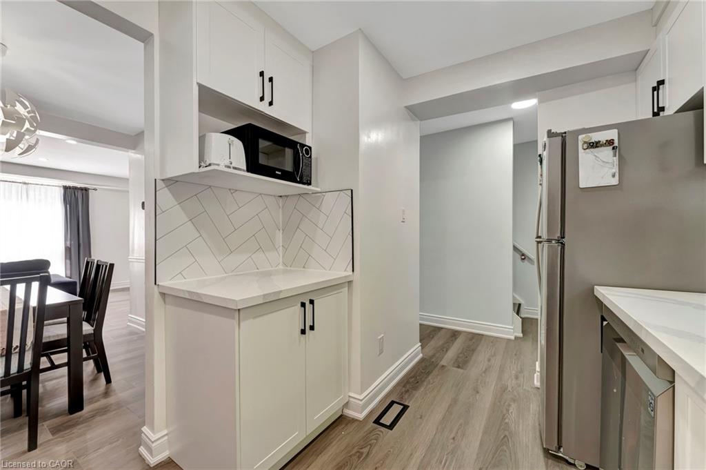 Welcome to Unit 37 at 175 Cedar Street – one of the largest units in the highly sought-after Cambridge Woodlands complex, ideally located directly across from Westgate Plaza. This beautifully renovated 4-bedroom, 2.5-bathroom townhome offers a spacious and functional layout, thoughtfully upgraded with modern finishes throughout. The main floor features a bright, open-concept design with fresh neutral paint, new vinyl flooring, updated baseboards, modern doors, and a stunning kitchen complete with quartz countertops, stainless steel appliances, a stylish backsplash, and generous counter space—perfect for everyday living and entertaining. The adjoining living/dining area walks out to a large balcony deck, ideal for barbecuing or relaxing outdoors, and a convenient powder room completes this level. Upstairs, you’ll find three comfortable bedrooms and a renovated four-piece bathroom. The fully finished lower level enhances the home’s flexibility with a large recreation room that also serves as the fourth bedroom, a full bathroom, and a spacious utility/laundry room offering ample storage. This layout makes the home one of the largest in the complex, thanks to the additional living space on the lower level. Property also comes with an EV charger. Enjoy unbeatable convenience with Sobeys, Tim Hortons, Dollarama, and more just steps away, and take advantage of downtown Galt’s vibrant shops, restaurants, public library, Grand River trails, and historic attractions—all within walking distance. This exceptional home offers modern updates, practical space, and a prime location. Book your private showing today!