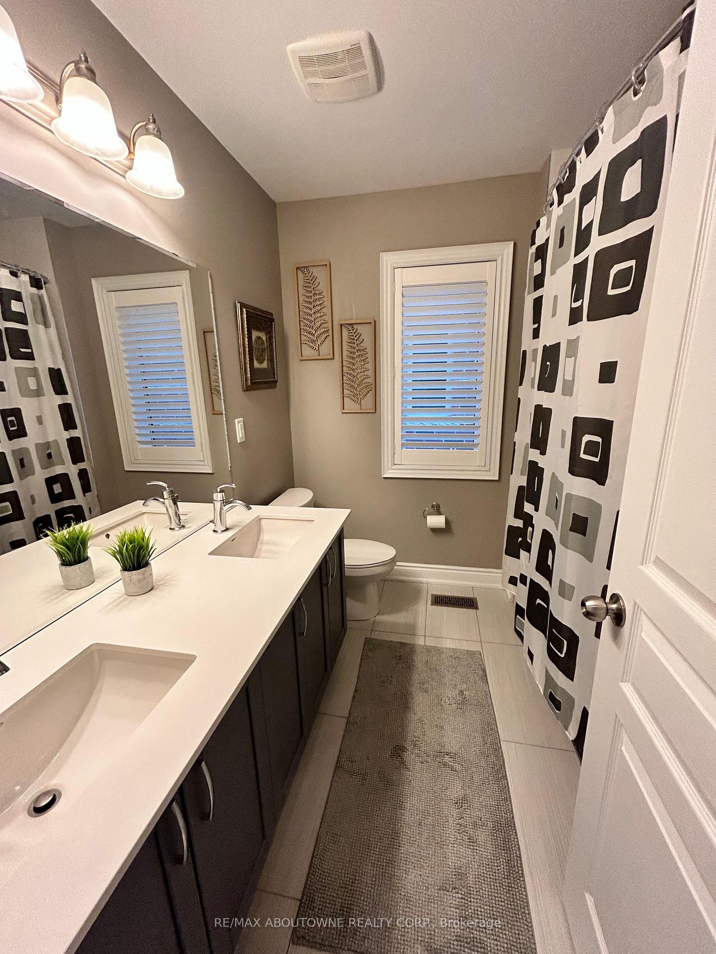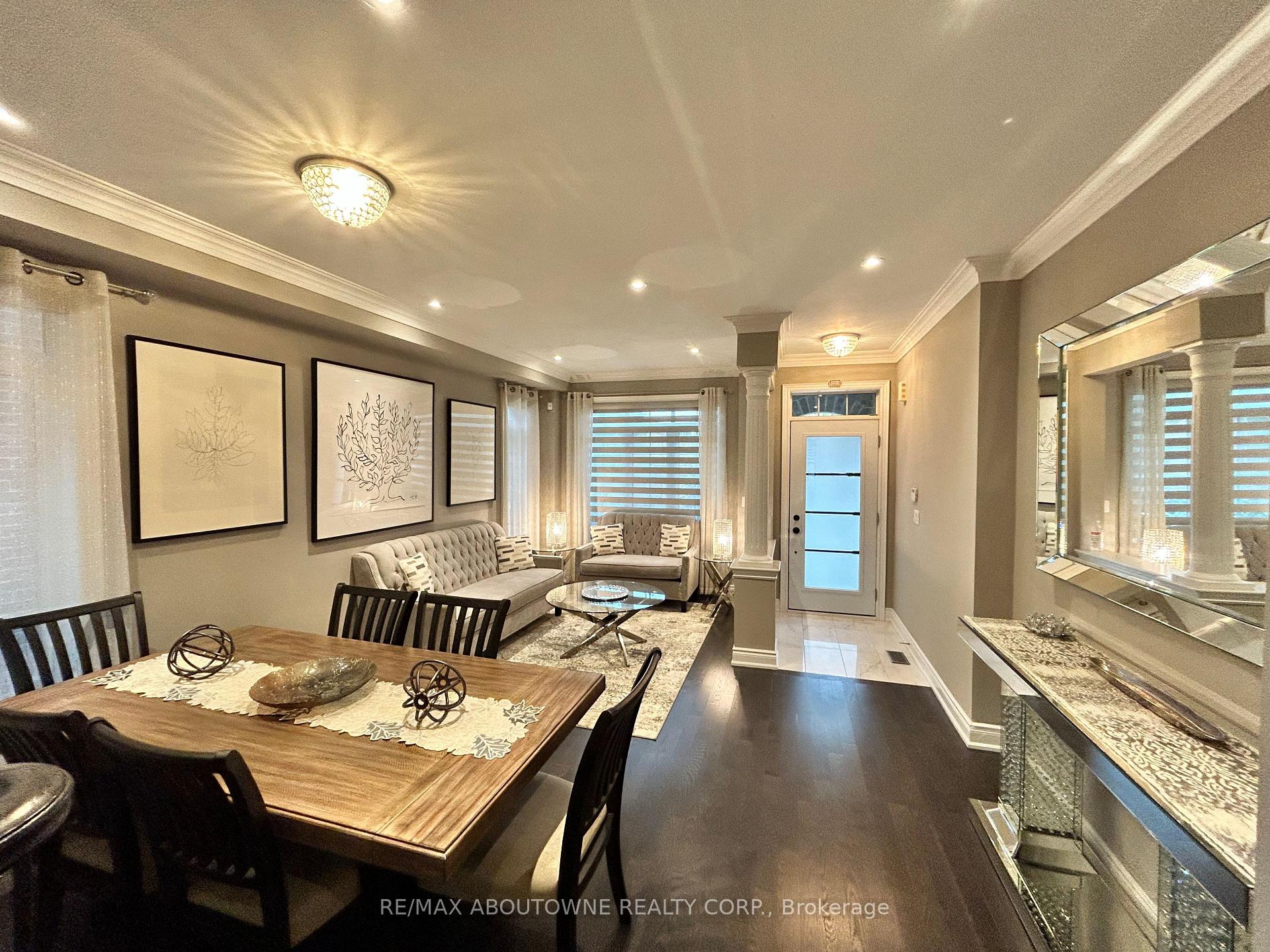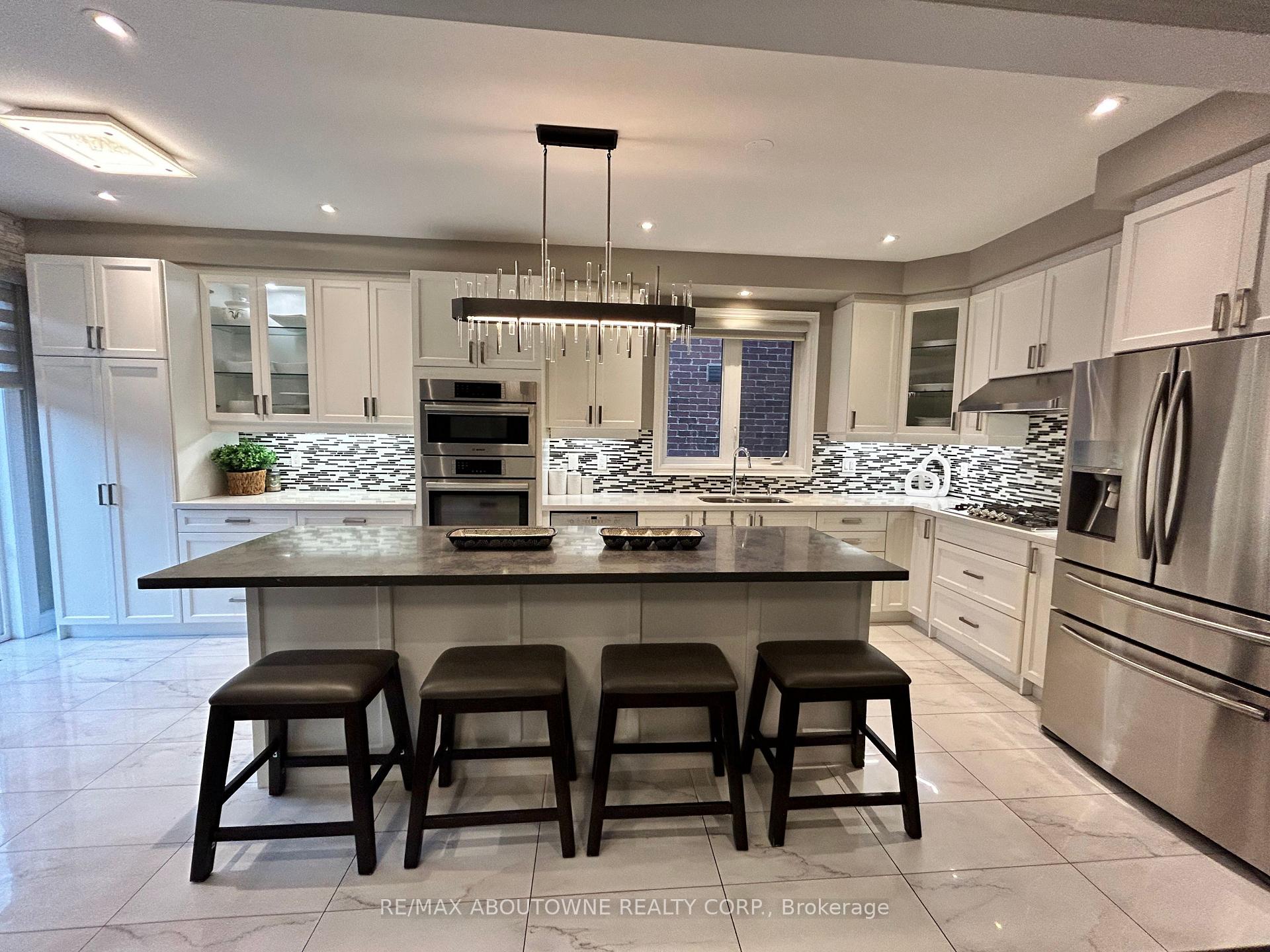 Nestled between the James Snow Parkway and Trudeau Drive, this tastefully upgraded link-detached home is ideally located close to schools, parks, shopping, groceries, and major highways-perfect for a growing family. Offering 4 bedrooms and 3.5 bathrooms, the home features a finished open-concept basement with a spacious great room, wet bar, office/den, pot lights, and a 3-piece bath. The extended chef’s kitchen showcases stainless steel appliances, Caesar stone countertops, a large eat-in island, custom soft-close cabinetry, tiled backsplash, and a walkout to a deck overlooking a paver-stone backyard with an 8′ x 10′ garden shed. The main floor includes a family room with gas fireplace and a separate living and dining area, enhanced by modern lighting, upgraded handrails with wrought iron pickets, crown mouldings, high baseboards, California shutters, and zebra blinds. Upper-level laundry offers upgraded appliances and linen storage. Hardwood floors throughout, with matching laminate in the basement. Exterior pot lights and fence lighting on timers. Parking for three cars and EV plug-in in the attached garage. Note: The home has been tenanted for approximately 1.5 years. Photos are from prior to the lease. Property will be professionally cleaned and freshly painted before closing.