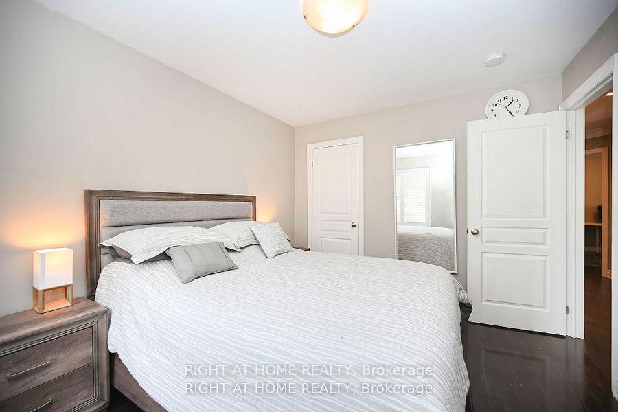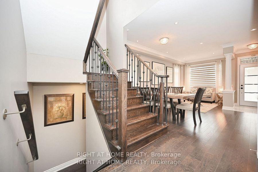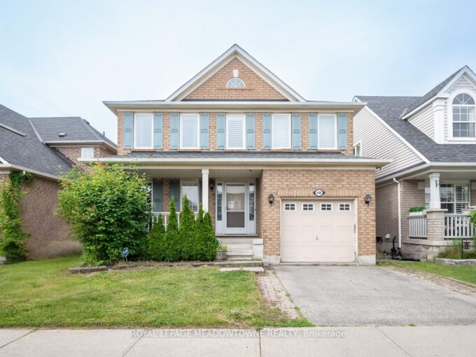 Nestled between James Snow and Trudeau area of Milton. Tastefully upgraded link-detached home close to schools, parks, grocery, shopping & highways. Perfect for a growing family. 4 bedrooms, 3.5 washrooms, Finished open concept basement with a great room, wet bar, office/den space, pot lights & 3 pc washroom. Extended Chef’s kitchen boasts S/S appls, Caesarstone countertops with large eat-in island, custom storage & soft close cabinets, tiled backsplash, walkout to a deck leading down to a paver stoned backyard & an 8*10 garden shed for all your additional storage. Main floor family room w/gas fireplace, separate living room combined with a dining room. Inviting space with well-placed pot lights, modern paint color & light fixtures, upgraded handrails & wrought iron pickets, crown moldings, high baseboards, California shutters and zebra blinds. Laundry in upper level with upgraded appliances and linen cabinets. Hardwood floors except basement have matching laminate floors. Exterior pot lights and fence lighting installed with timer. Parking 3 cars. EV Plugin in attached garage. Please note: Home has been tenanted for approx. 1.5 years. Pictures shared are from before the lease term commenced. Home will be cleaned and freshly painted prior to closing.