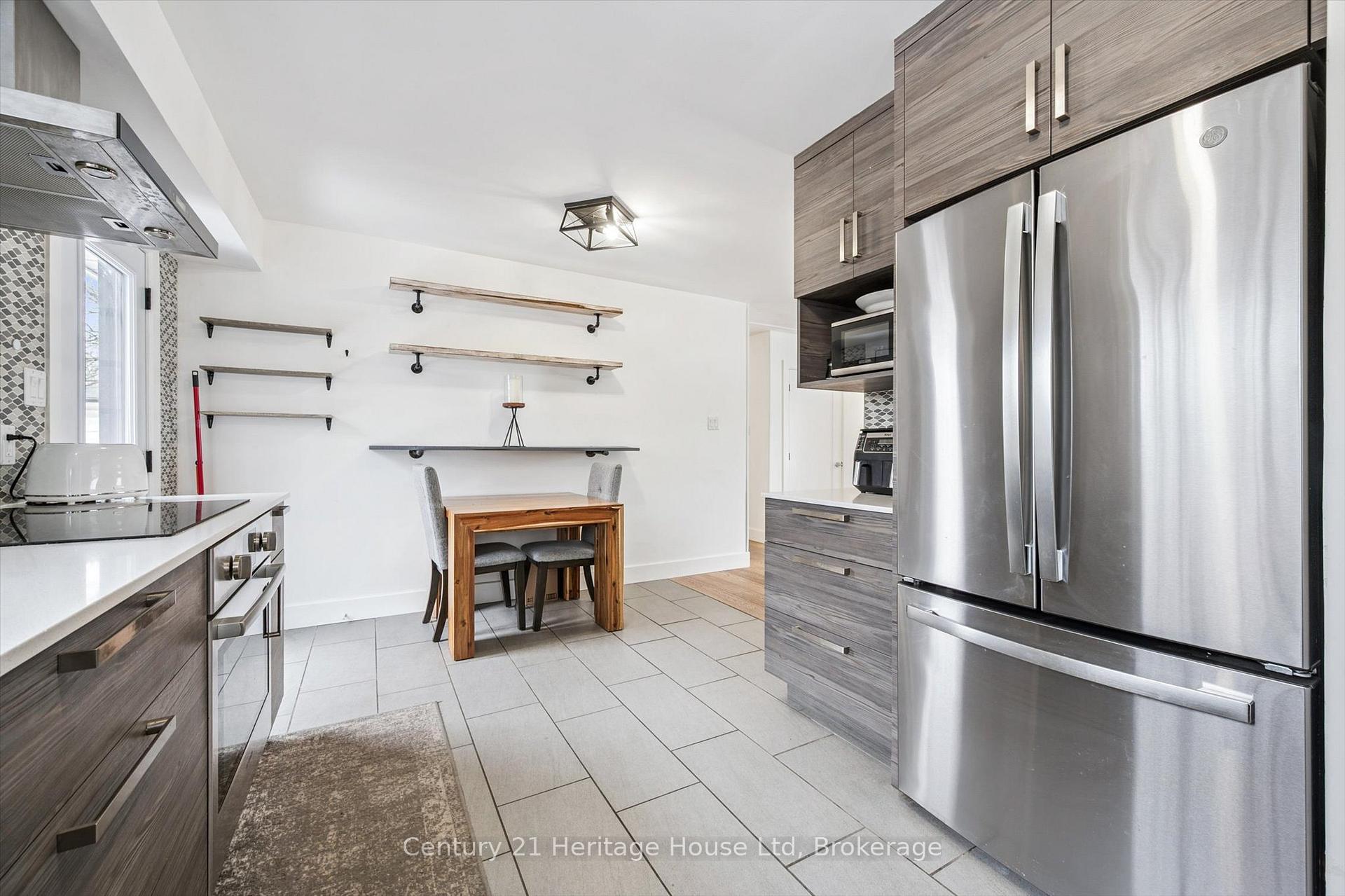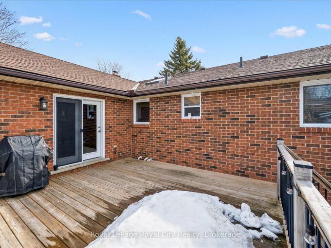 We are pleased to welcome you to this beautifully renovated walkout bungalow, set on a generous 50 x 130 ft lot with standout curb appeal and parking for 4+ vehicles on the concrete driveway. This home offers the perfect blend of style, function, and outdoor living.The main floor features a modern eat-in kitchen with Corian countertops, Bosch induction cooktop, stainless steel range hood, built-in oven, dishwasher, and French door refrigerator (2022). A raised deck off the kitchen provides the ideal space for morning coffee or evening meals overlooking the massive backyard. The adjoining dining area is bright and welcoming, with large windows at both the front and rear of the home allowing natural light to flow throughout the space.Three good-sized bedrooms and an updated 4-piece bathroom complete the main level.The fully finished walkout basement adds exceptional versatility, offering a spacious family room with feature wall and electric fireplace (2022), a generous fourth bedroom or home office, a second full 4-piece bathroom, and laundry area. Large windows and direct backyard access keep the lower level bright and functional.Step outside to a thoughtfully designed backyard retreat featuring a flagstone patio, patio stone pad (2022), hot tub and pergola (2022), shed (2022), and a substantial yard with plenty of room to entertain, garden, or enjoy year-round activities.Major renovations were completed approximately 7 years ago (2018), including kitchen, flooring, appliances, bathrooms, exterior doors, energy-efficient windows, and deck. The exterior brick was painted in 2022. Furnace replaced in 2025. Located just steps from a direct city bus route with easy access to shopping, amenities, University of Guelph, and Downtown Guelph. Situated within a highly regarded school district offering Public, French Immersion, and Catholic elementary and secondary options. A move-in-ready home offering modern updates, flexible living space, and an exceptional backyard setting.