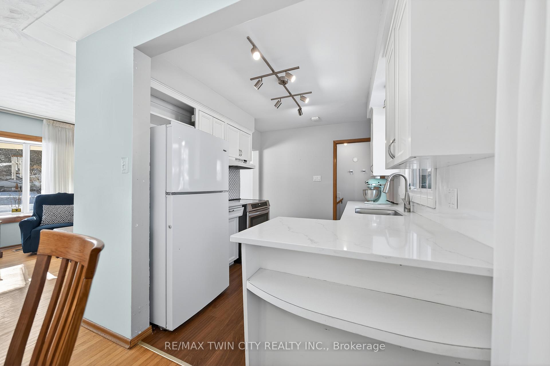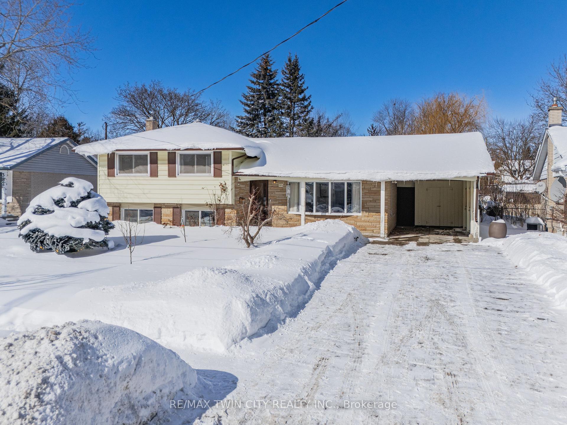 Welcome to 376 Greenbrook Drive, a well-maintained sidesplit in Kitchener’s established & family-friendly Forest Hill neighbourhood, known for its exceptional walkability to everyday amenities. Step inside this warm & inviting home offering comfortable, functional living with rm to personalize & grow. The main level features a bright, sun-filled living & dining area with a lrg picture window overlooking the mature streetscape. Hardwood flooring runs throughout the carpet-free main & upper levels, & the layout flows easily for family life. The kitchen is bright & practical with plenty of prep space, featuring new quartz counters, backsplash, premium appliances, & direct walkout to the deck & backyard. Upstairs are 3 generously sized bedrms & a full 4-pce bathrm. The lower level offers a spacious recreation rm with oversized windows, extensive built-in storage including a very lrg crawl space, & a 2-pce bathrm-ideal for a playrm, home office, or casual family space. For buyers looking ahead, the home is R2-zoned with a direct basement entrance, offering potential for an in-law suite or duplex conversion, subject to approvals. The oversized backyard is fully fenced with a lrg deck, shed, & mature trees & gardens, offering privacy & a peaceful setting-perfect for kids, pets, & summer evenings. Additional features include a covered front porch, enclosed carport, & parking for up to 5 vehicles. Recent improvements include a tankless water heater, all-in-one washer/dryer, water softener, fridge, stove, & standing freezer (new since 2024), plus updated electrical (ESA-2024), & new A/C (2025). Key components replaced approx. 13 yrs ago incl. roof, windows, & added attic insulation. Enjoy unbeatable convenience with groceries, bank, medical, dental, pharmacy, & transit steps away, plus schools, parks, trails, community centre, library, & pool all nearby. Quick access to the expressway/HWY 401 makes commuting easy. Don’t miss this incredible opportunity-this home won’t last!