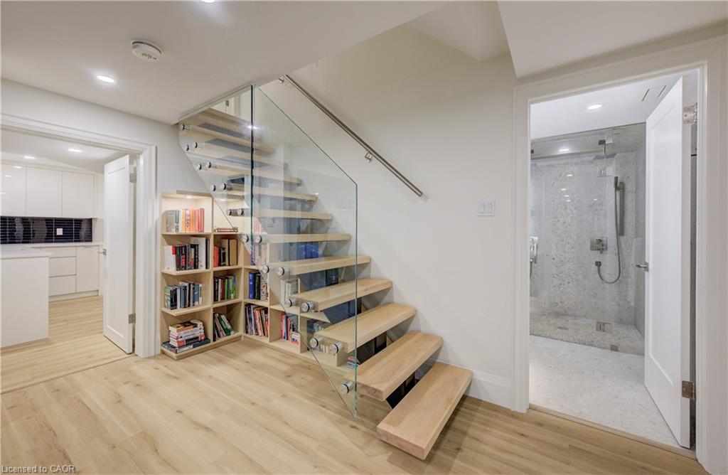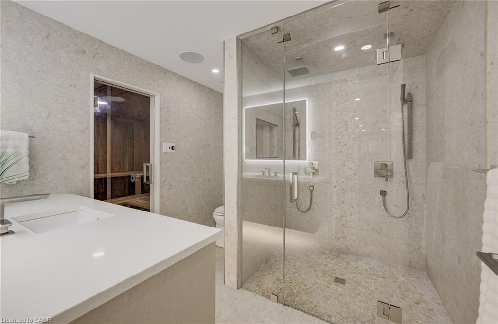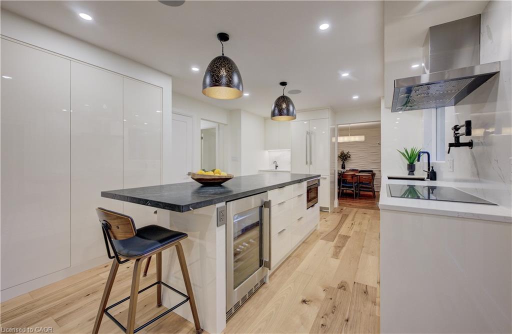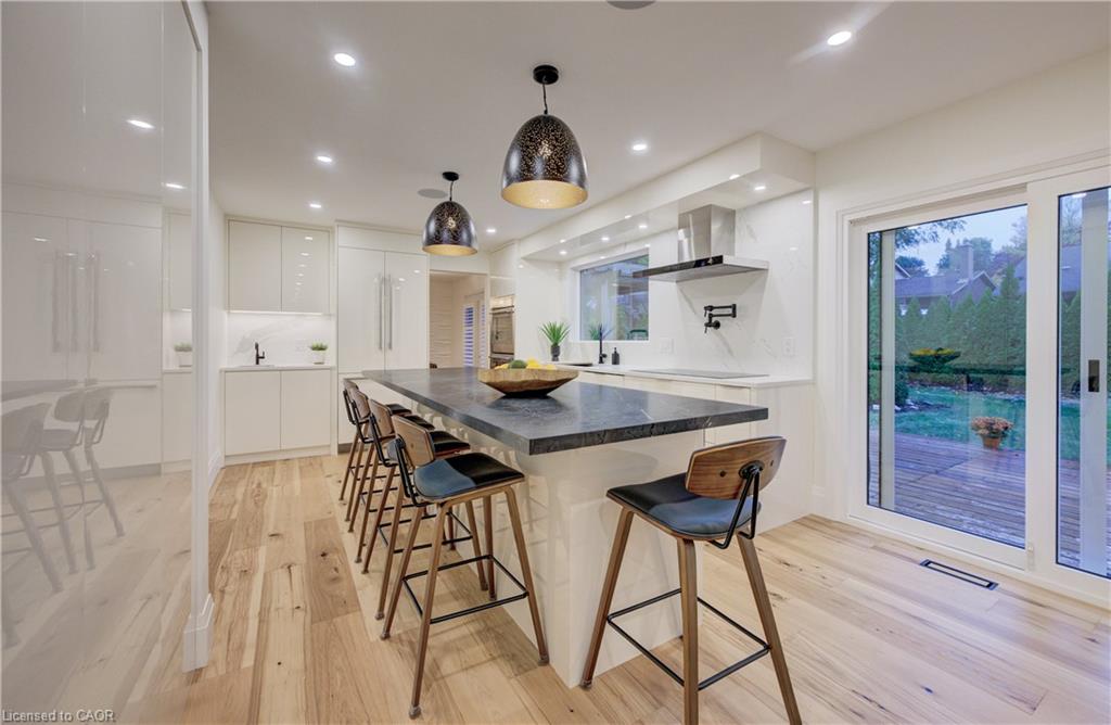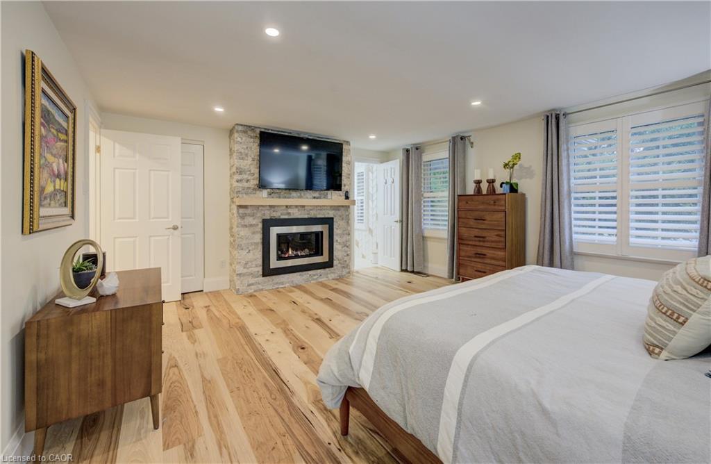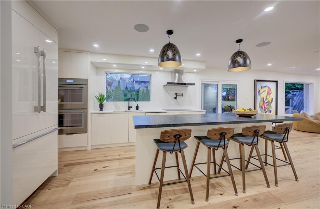 A masterpiece of design and craftsmanship, with over 3,600 sqft of living space, this executive home in Waterloo’s prestigious Old Beechwood neighbourhood has been completely transformed with over $550,000 in professional renovations. Each level has been meticulously designed, blending timeless elegance with state-of-the-art comfort. Kitchen and basement renovations by the Canadian Home and Renovations Team. Engineered hardwood, custom millwork, and leathered granite finishes anchor a space where luxury meets technology. With a Station Earth AV system, integrated Sonos sound, and smart networking throughout, you’ll know this isn’t a renovation—it’s a reinvention. Curb appeal is undeniable and a ¼-acre pie-shaped lot that widens to 128 feet at the rear. The main floor blends elegance and function, featuring a dedicated home office ideal for today’s flexible lifestyle. The open-concept kitchen/living areas impress with a leathered granite island, quartz backsplash, built-in beverage station, Thermador appliances, and a matching granite fireplace. Sunlit living spaces open to a sprawling deck with pergola dining, outdoor gas fireplace, and BBQ hookup—an effortless flow from indoor comfort to outdoor retreat. Upstairs, 4 bedrooms include spa-inspired bathrooms with heated floors, while the primary suite offers a gas fireplace, ensuite, and integrated Sonos sound. The lower level redefines recreation: a soundproofed theatre with blackout blinds/HD projection, full glass-walled gym, spa bath with sauna/double shower, custom bar with dishwasher/fridge, and den/music lounge with fireplace. Dual laundry areas on the main and lower levels add ultimate convenience. A new furnace, A/C, and tankless water heater (2022) add everyday efficiency to the elegance. Located close to Beechwood trails, Conestoga Mall, St. Jacobs Market, universities, tech hubs, and Uptown Waterloo’s dining and shopping, it offers rare privacy, prestige, and perfection—all in one address.