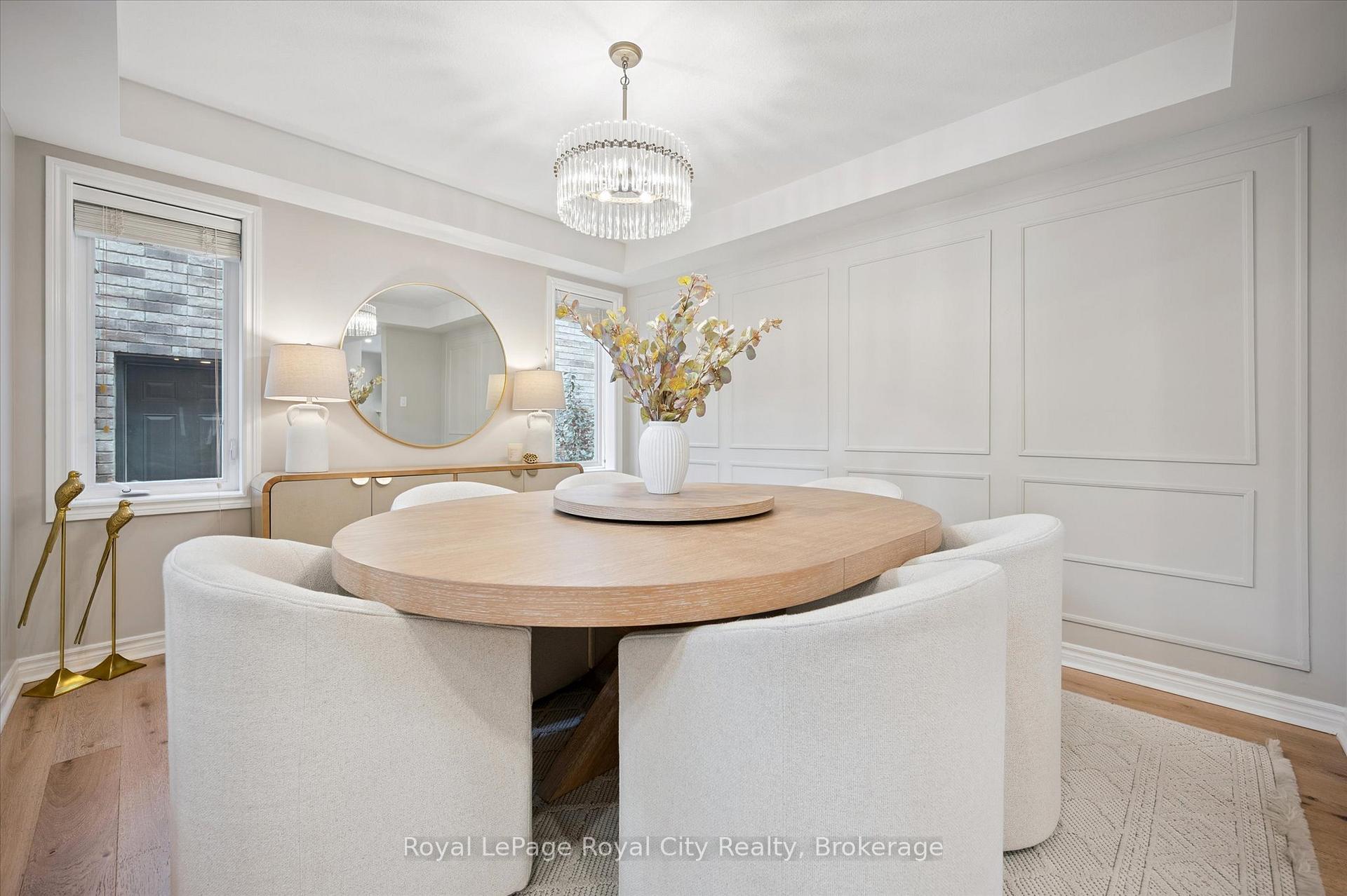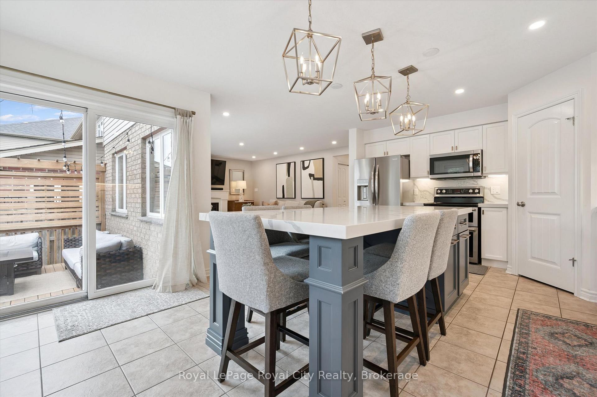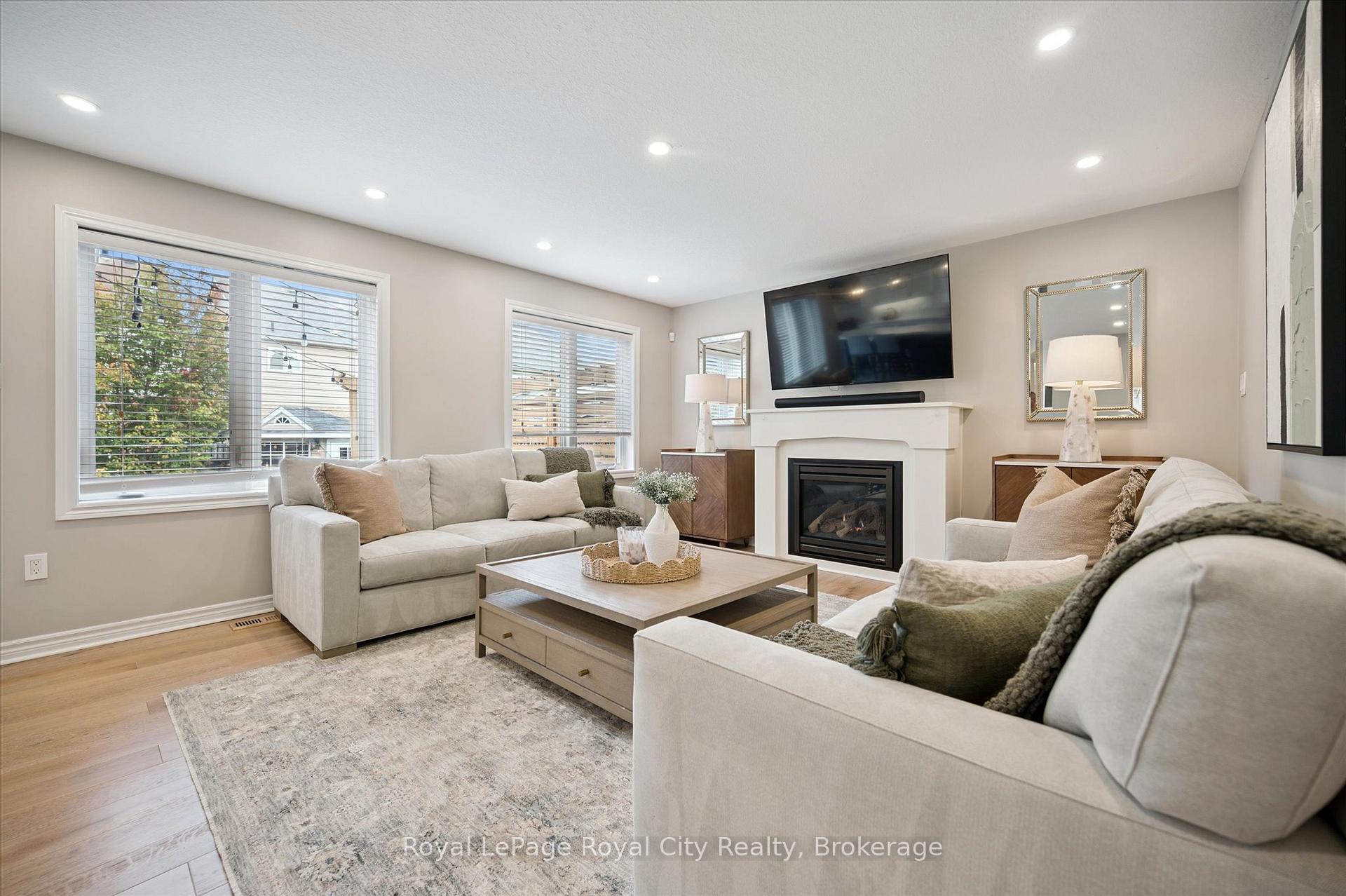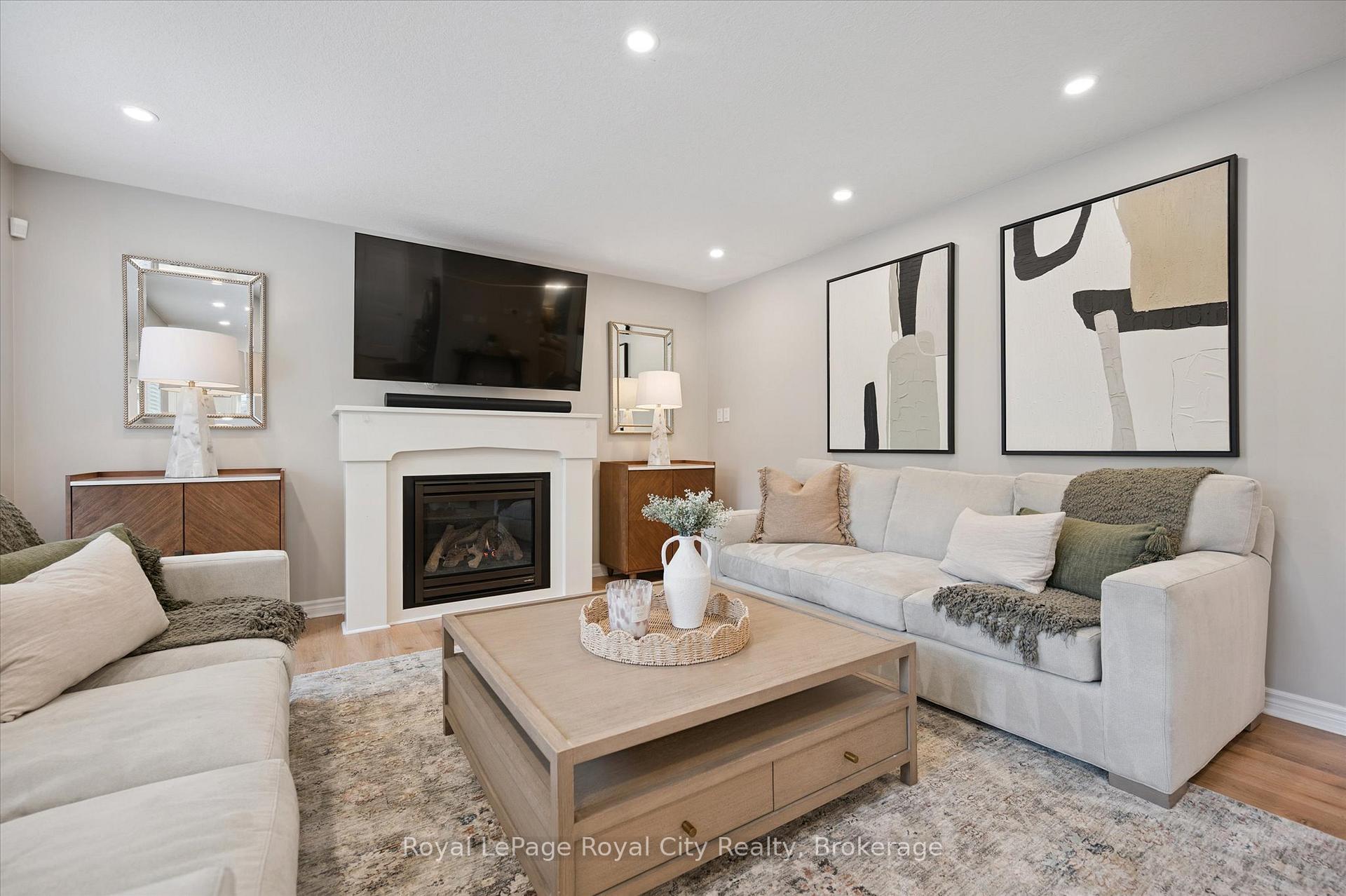 With over 3,300 total sq ft, 3 large bedrooms, and 4 bathrooms, this upscale home is thoughtfully designed for the way families live today – where comfort, connection, and style go hand in hand. The timeless brick-and-stone exterior delivers impressive curb appeal, while inside, beautiful hardwood floors signal the quality and care carried throughout the home. The main level blends everyday functionality with elevated design. A formal dining room showcases elegant wall mouldings and a designer chandelier – perfect for hosting holidays and celebrations. The living room, anchored by a cozy gas fireplace, connects seamlessly to the updated eat-in kitchen. The kitchen features stainless steel appliances, stone countertops with a seamless backsplash, under-cabinet lighting, and an oversized island with bar seating. From here, walk out to the rear deck for effortless indoor-outdoor dining. A stylish powder room and interior access to the double garage complete this family-friendly floor. Upstairs, a bright open-concept flex space offers versatility as a family room, homework zone, or home office. Double doors lead to the sophisticated primary suite, complete with wall mouldings, a walk-in closet, and a spa-inspired 5-piece ensuite with double vanity and soaker tub. Two additional bedrooms share an additional 5-piece bathroom. The finished basement extends the home’s functionality with a generous recreation room featuring a fireplace – perfect for movie nights! Out back, the fully landscaped yard is designed for both relaxation and gathering. A spacious deck overlooks the inground pool with waterfall features, surrounded by lush professional landscaping. Set in the family-friendly Pineridge/Westminster Woods community in Guelph’s sought-after South End, this home offers proximity to top-rated schools, parks, trails, everyday amenities, and quick 401 access – everything a modern family needs, right at your doorstep!