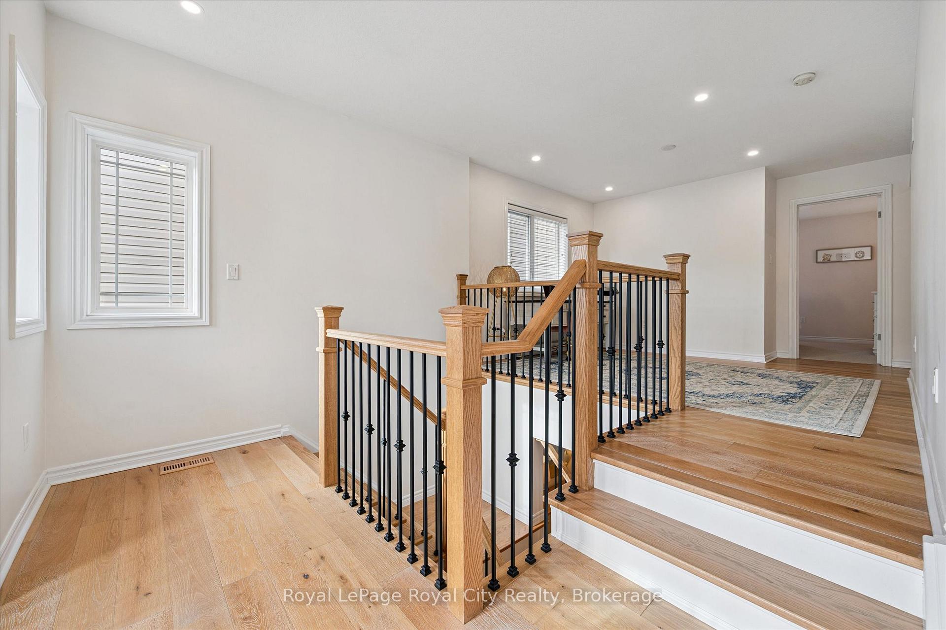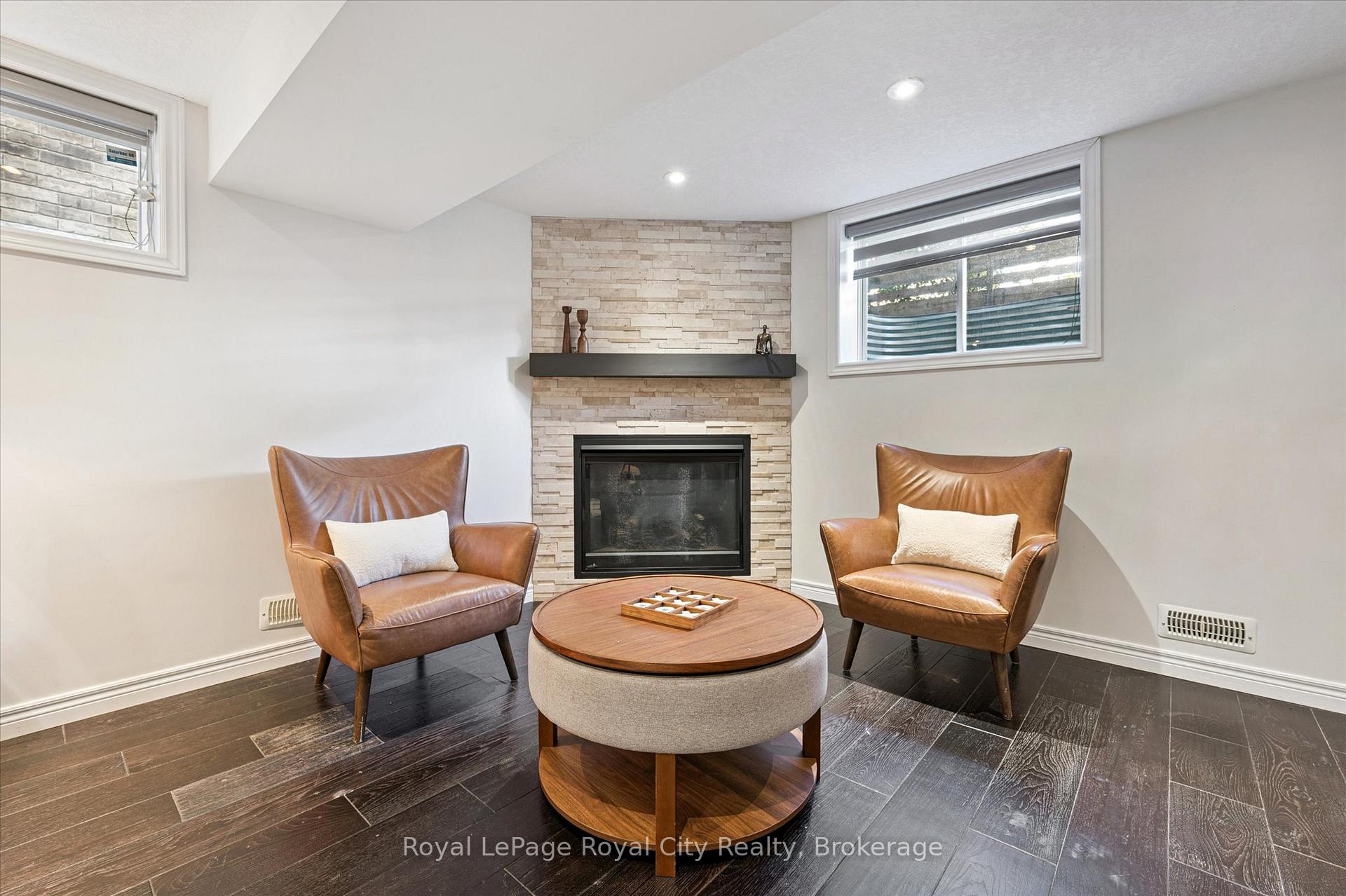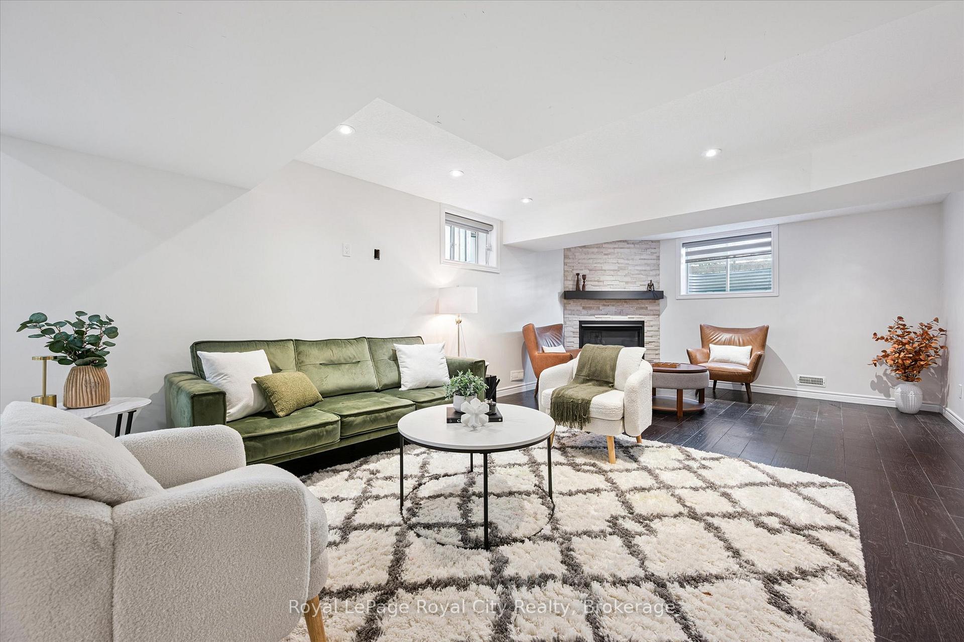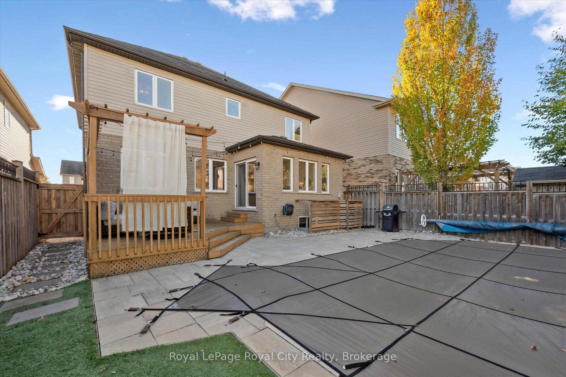 With over 3,300 total sq ft, 3 large bedrooms, and 4 bathrooms, this upscale home is thoughtfully designed for the way families live today – where comfort, connection, and style go hand in hand. The timeless brick-and-stone exterior delivers impressive curb appeal, while inside, beautiful hardwood floors signal the quality and care carried throughout the home. The main level blends everyday functionality with elevated design. A formal dining room showcases elegant wall mouldings and a designer chandelier – perfect for hosting holidays and celebrations. The living room, anchored by a cozy gas fireplace, connects seamlessly to the updated eat-in kitchen. The kitchen features stainless steel appliances, stone countertops with a seamless backsplash, under-cabinet lighting, and an oversized island with bar seating. From here, walk out to the rear deck for effortless indoor-outdoor dining. A stylish powder room and interior access to the double garage complete this family-friendly floor. Upstairs, a bright open-concept flex space offers versatility as a family room, homework zone, or home office. Double doors lead to the sophisticated primary suite, complete with wall mouldings, a walk-in closet, and a spa-inspired 5-piece ensuite with double vanity and soaker tub. Two additional bedrooms share an additional 5-piece bathroom. The finished basement extends the home’s functionality with a generous recreation room featuring a fireplace – perfect for movie nights! Out back, the fully landscaped yard is designed for both relaxation and gathering. A spacious deck overlooks the inground pool with waterfall features, surrounded by lush professional landscaping. Set in the family-friendly Pineridge/Westminster Woods community in Guelph’s sought-after South End, this home offers proximity to top-rated schools, parks, trails, everyday amenities, and quick 401 access – everything a modern family needs, right at your doorstep!