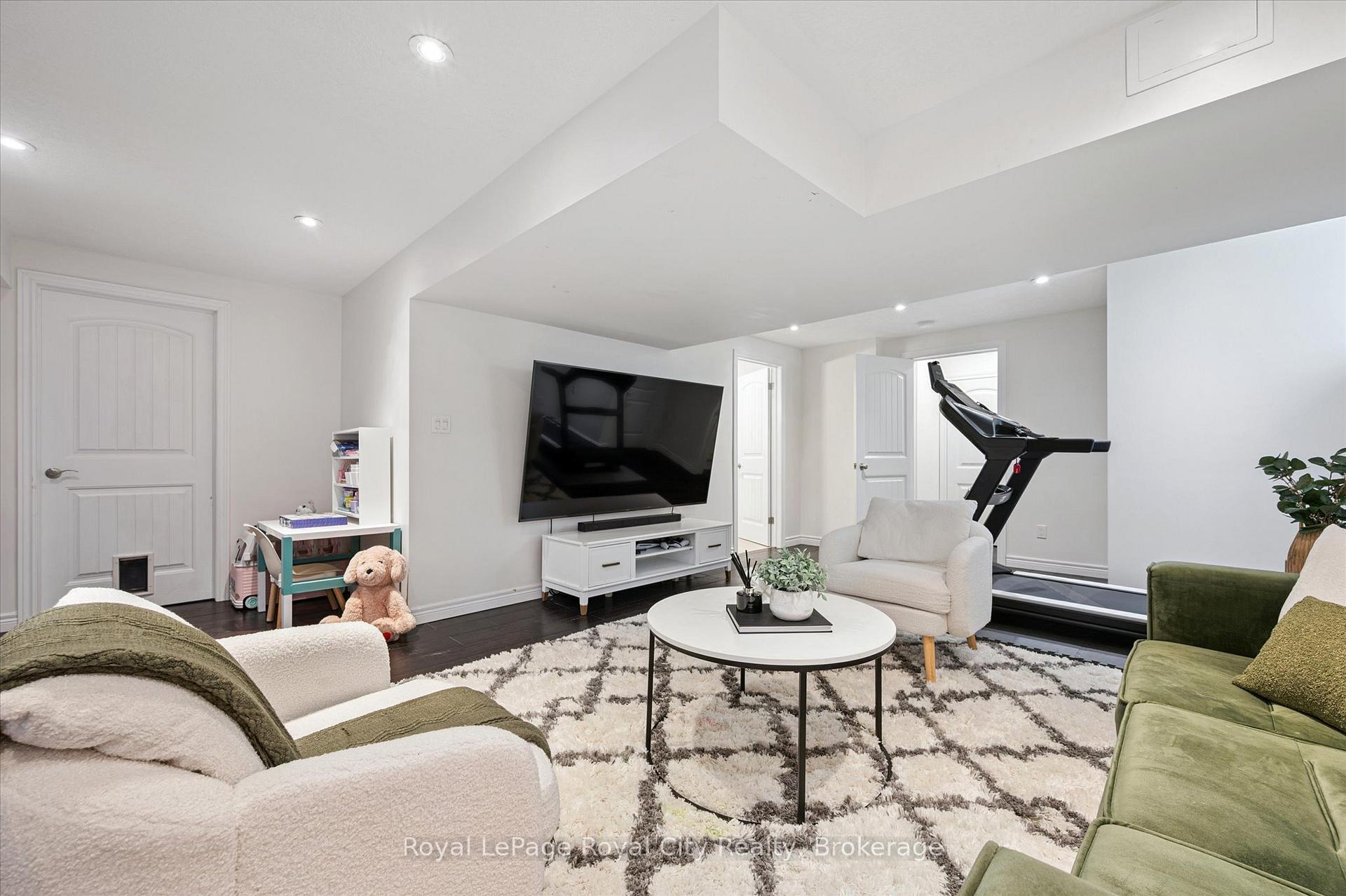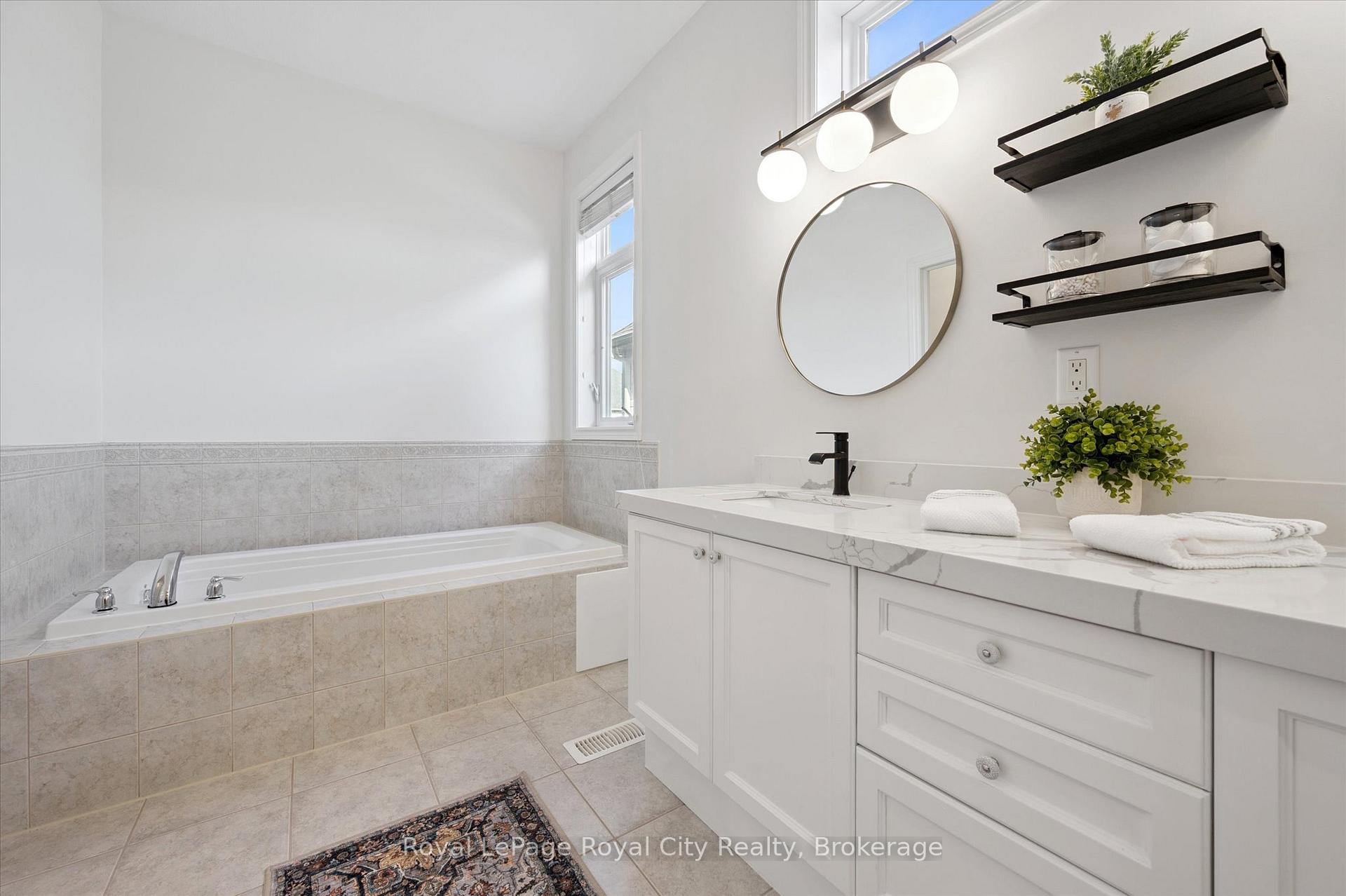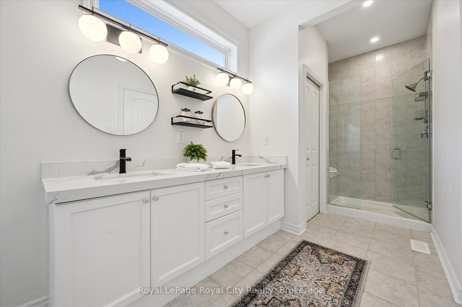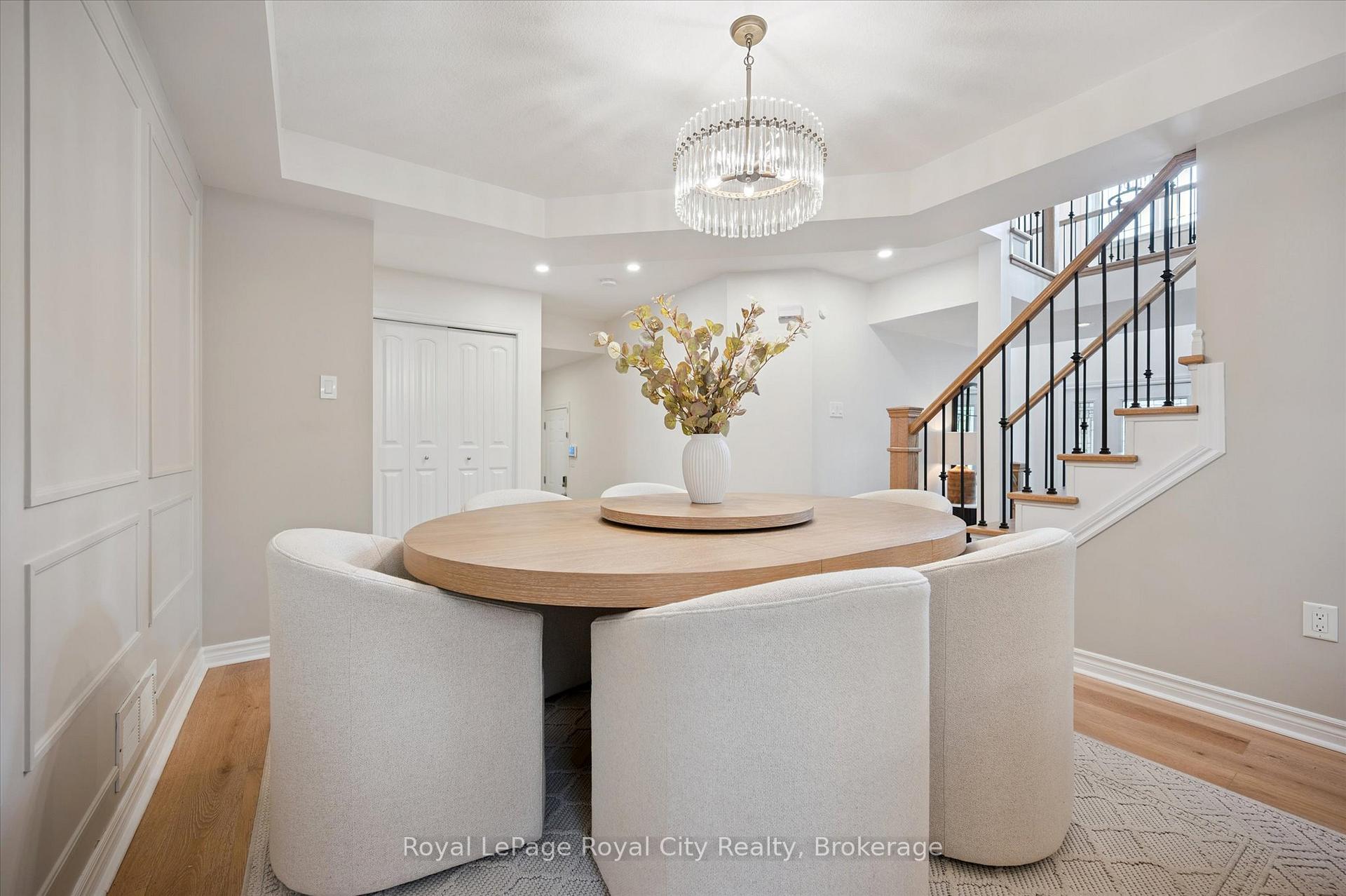 With over 3,300 total sq ft, 3 large bedrooms, and 4 bathrooms, this upscale home is thoughtfully designed for the way families live today – where comfort, connection, and style go hand in hand. The timeless brick-and-stone exterior delivers impressive curb appeal, while inside, beautiful hardwood floors signal the quality and care carried throughout the home. The main level blends everyday functionality with elevated design. A formal dining room showcases elegant wall mouldings and a designer chandelier – perfect for hosting holidays and celebrations. The living room, anchored by a cozy gas fireplace, connects seamlessly to the updated eat-in kitchen. The kitchen features stainless steel appliances, stone countertops with a seamless backsplash, under-cabinet lighting, and an oversized island with bar seating. From here, walk out to the rear deck for effortless indoor-outdoor dining. A stylish powder room and interior access to the double garage complete this family-friendly floor. Upstairs, a bright open-concept flex space offers versatility as a family room, homework zone, or home office. Double doors lead to the sophisticated primary suite, complete with wall mouldings, a walk-in closet, and a spa-inspired 5-piece ensuite with double vanity and soaker tub. Two additional bedrooms share an additional 5-piece bathroom. The finished basement extends the home’s functionality with a generous recreation room featuring a fireplace – perfect for movie nights! Out back, the fully landscaped yard is designed for both relaxation and gathering. A spacious deck overlooks the inground pool with waterfall features, surrounded by lush professional landscaping. Set in the family-friendly Pineridge/Westminster Woods community in Guelph’s sought-after South End, this home offers proximity to top-rated schools, parks, trails, everyday amenities, and quick 401 access – everything a modern family needs, right at your doorstep!