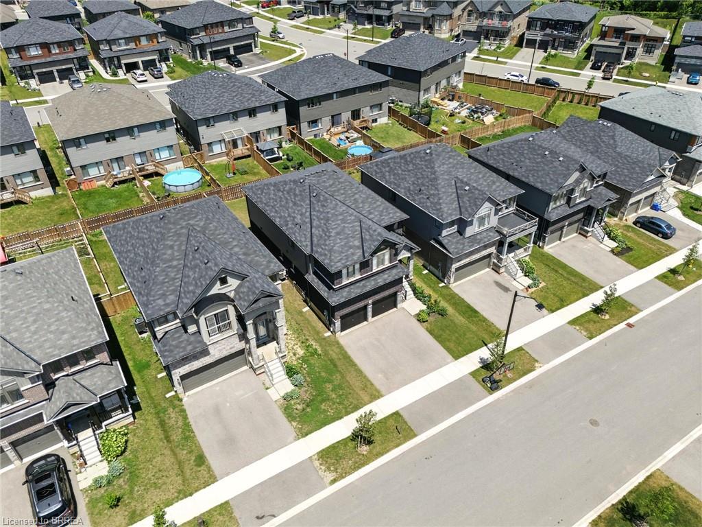 Welcome home to 38 Lydia Lane, Paris. Commuters enjoy a short 1-2 min drive to highway 403 and just a few minutes to all major amenities find this conveniently located family home! Built in 2021, this Losani home named the Woodside model has 4 true bedrooms on the second level, but what is currently being used as a nursery is the 5th bedroom (open to the primary bedroom) could also become a great den/ office attached to the primary bedroom, or a larger walk-in closet with a window. This bright and spacious floorplan is great for a family, with up to 5 beds and 2.5 baths. The heart of the home has a chef-inspired kitchen, beautifully extended with extra cabinetry, sleek quartz countertops, and equipped with premium GE Café appliances—perfect for families who love to bake, cook and entertain. The main level showcases engineered hardwood flooring and leads to a fully fenced backyard, ideal for children and pets. Upstairs, you’ll find generously sized bedrooms, two full bathroom including a luxurious ensuite in the primary suite. You’ll love this functional, family-friendly layout, this home is move-in ready—just unpack and start enjoying everything it has to offer!