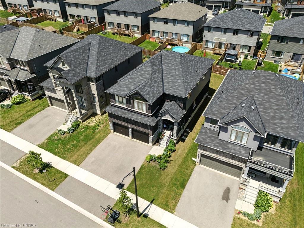 Welcome home to 38 Lydia Lane, Paris. Commuters enjoy a short 1-2 min drive to highway 403 and just a few minutes to all major amenities find this conveniently located family home! Built in 2021, this Losani home named the Woodside model has 4 true bedrooms on the second level, but what is currently being used as a nursery is the 5th bedroom (open to the primary bedroom) could also become a great den/ office attached to the primary bedroom, or a larger walk-in closet with a window. This bright and spacious floorplan is great for a family, with up to 5 beds and 2.5 baths. The heart of the home has a chef-inspired kitchen, beautifully extended with extra cabinetry, sleek quartz countertops, and equipped with premium GE Café appliances—perfect for families who love to bake, cook and entertain. The main level showcases engineered hardwood flooring and leads to a fully fenced backyard, ideal for children and pets. Upstairs, you’ll find generously sized bedrooms, two full bathroom including a luxurious ensuite in the primary suite. You’ll love this functional, family-friendly layout, this home is move-in ready—just unpack and start enjoying everything it has to offer!