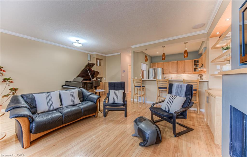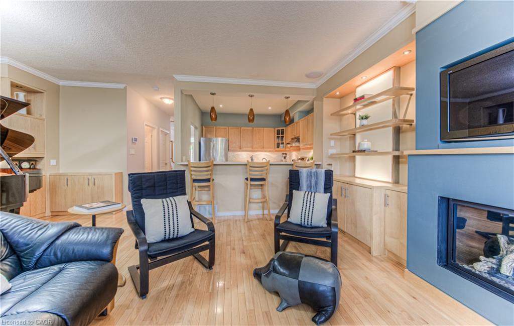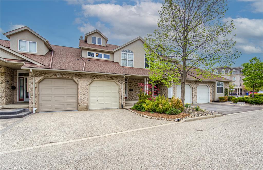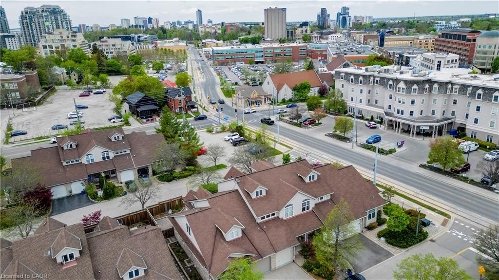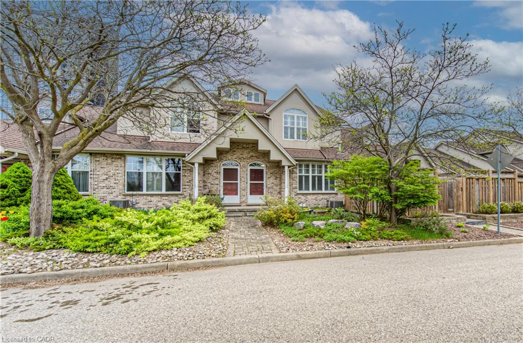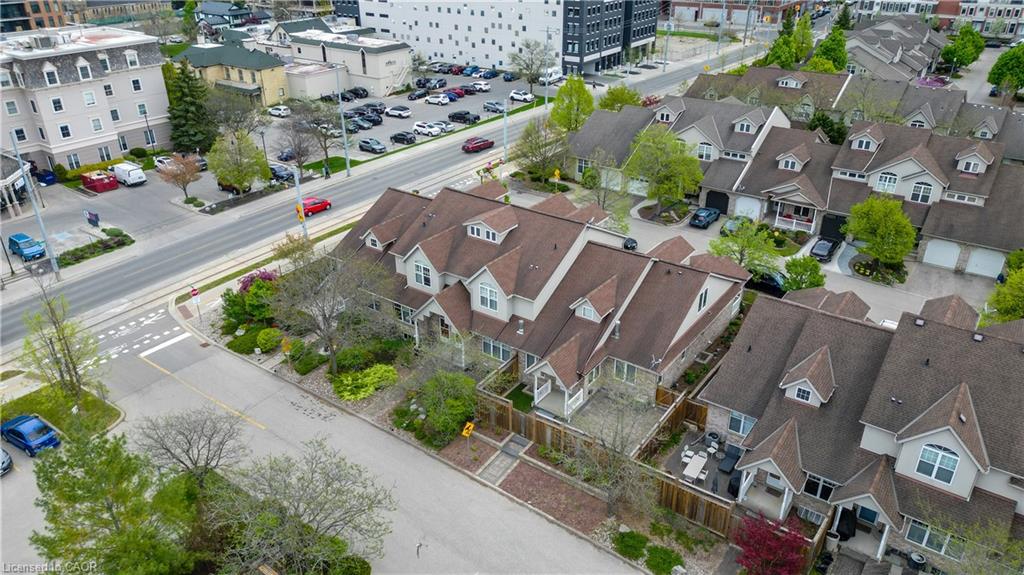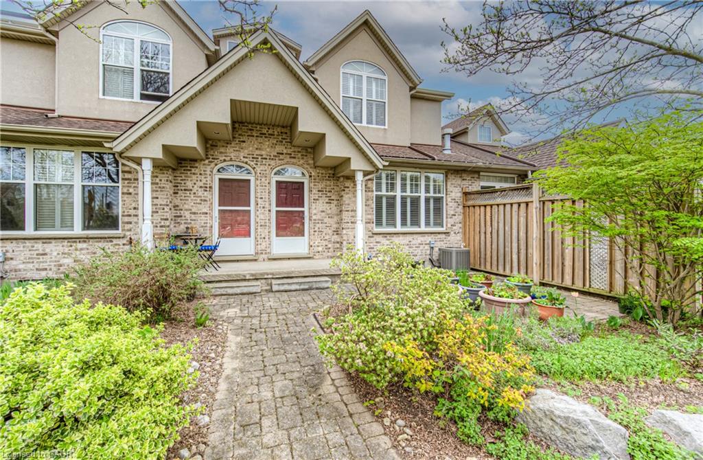 Prime Uptown Waterloo Location! Just one block from King Street, this beautifully maintained townhome places you steps from the best restaurants, shops, and cultural hotspots Uptown has to offer. Enjoy close proximity to the Perimeter Institute, CIGI, and Waterloo Park. Step inside to a spacious foyer with soaring ceilings that welcome you into a bright and open living space. The great room features custom built-in shelving and cabinetry surrounding a cozy gas fireplace, with large windows and a patio door that fill the room with natural light and offer refreshing cross breezes. The kitchen is well-equipped with ample cabinetry, generous counter space, and a breakfast bar—perfect for casual dining or entertaining. A convenient laundry room and 2-piece bath complete the main floor. Upstairs, you’ll find two bedrooms and two full bathrooms. The expansive primary suite includes large windows with views of Uptown, a walk-in closet, and a 4-piece ensuite with a separate tub and shower. The second bedroom is ideal for guests or a home office. The finished basement provides additional versatile living space—just add your choice of flooring to complete it. It includes a third bedroom, a hobby room, a workout or rec area, and another 4-piece bathroom. Outdoor living is easy with a charming covered front porch and a private back patio garden—perfect for your morning coffee or a bistro set. Parking for two vehicles (one in the garage, one in the driveway), plus quick access to Light Rail Transit make this a truly exceptional Uptown home.