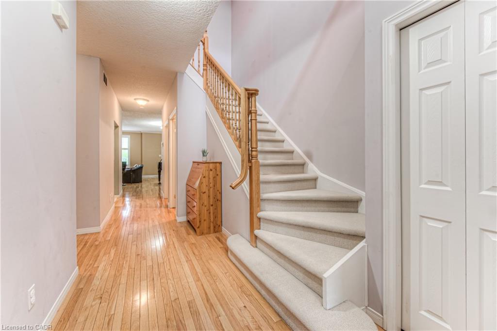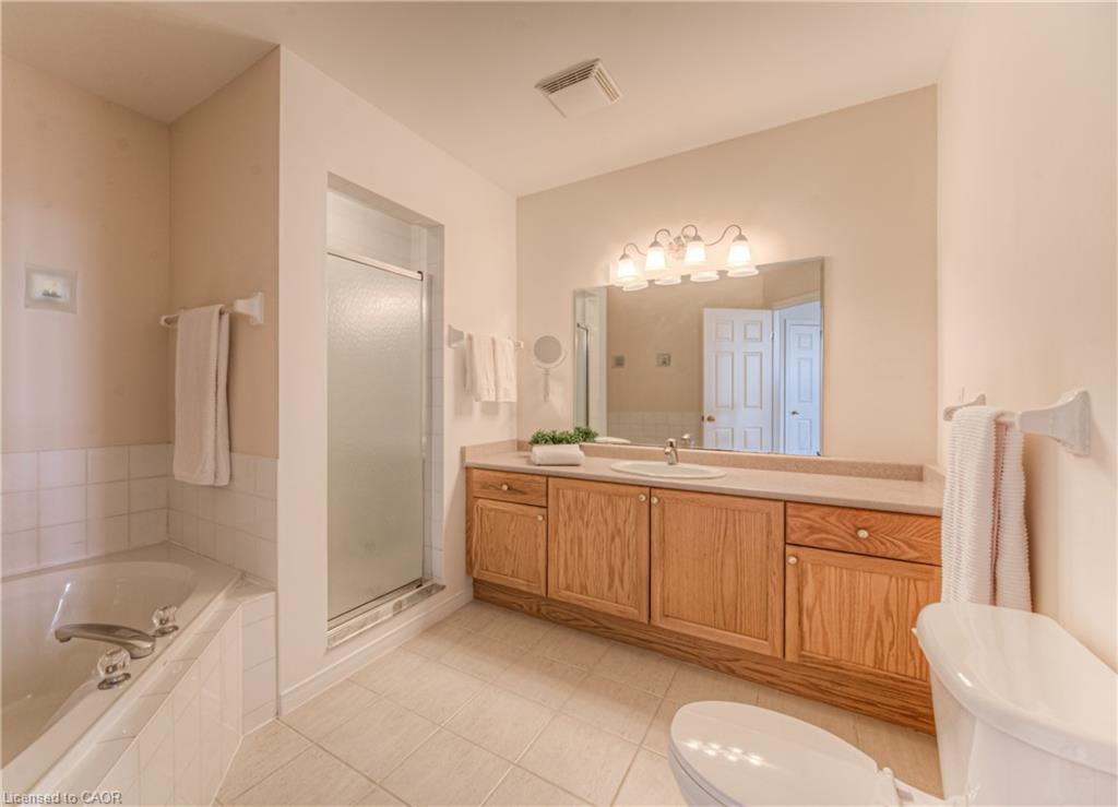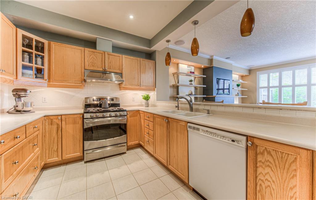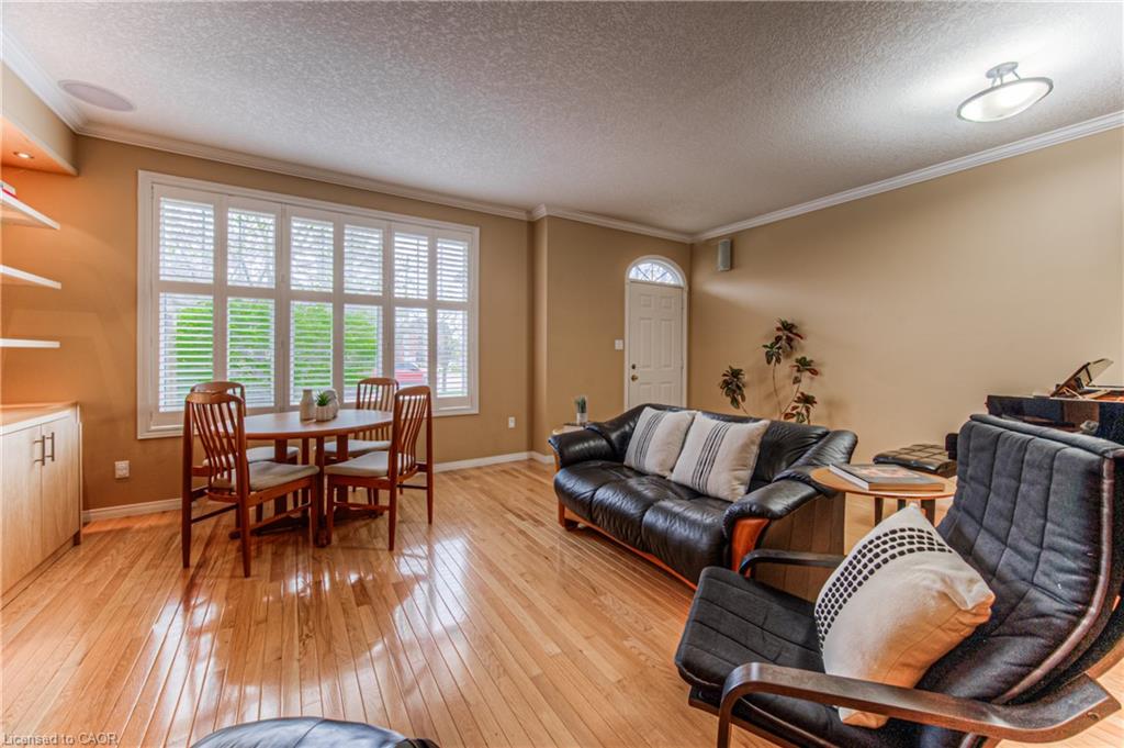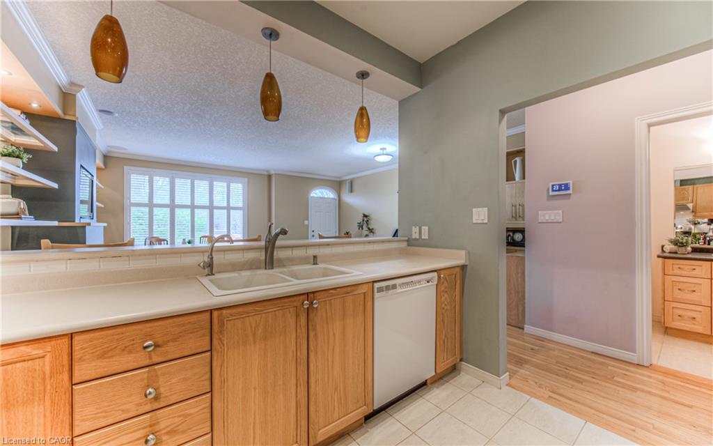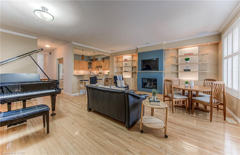 Prime Uptown Waterloo Location! Just one block from King Street, this beautifully maintained townhome places you steps from the best restaurants, shops, and cultural hotspots Uptown has to offer. Enjoy close proximity to the Perimeter Institute, CIGI, and Waterloo Park. Step inside to a spacious foyer with soaring ceilings that welcome you into a bright and open living space. The great room features custom built-in shelving and cabinetry surrounding a cozy gas fireplace, with large windows and a patio door that fill the room with natural light and offer refreshing cross breezes. The kitchen is well-equipped with ample cabinetry, generous counter space, and a breakfast bar—perfect for casual dining or entertaining. A convenient laundry room and 2-piece bath complete the main floor. Upstairs, you’ll find two bedrooms and two full bathrooms. The expansive primary suite includes large windows with views of Uptown, a walk-in closet, and a 4-piece ensuite with a separate tub and shower. The second bedroom is ideal for guests or a home office. The finished basement provides additional versatile living space—just add your choice of flooring to complete it. It includes a third bedroom, a hobby room, a workout or rec area, and another 4-piece bathroom. Outdoor living is easy with a charming covered front porch and a private back patio garden—perfect for your morning coffee or a bistro set. Parking for two vehicles (one in the garage, one in the driveway), plus quick access to Light Rail Transit make this a truly exceptional Uptown home.