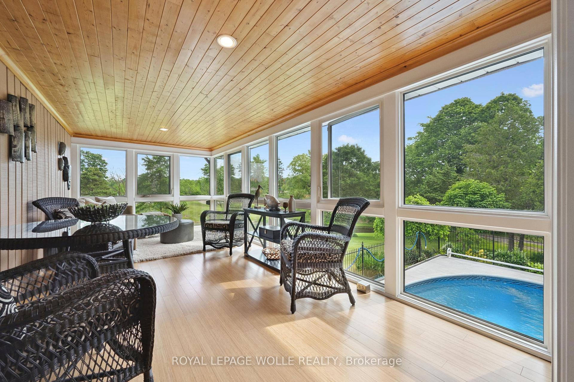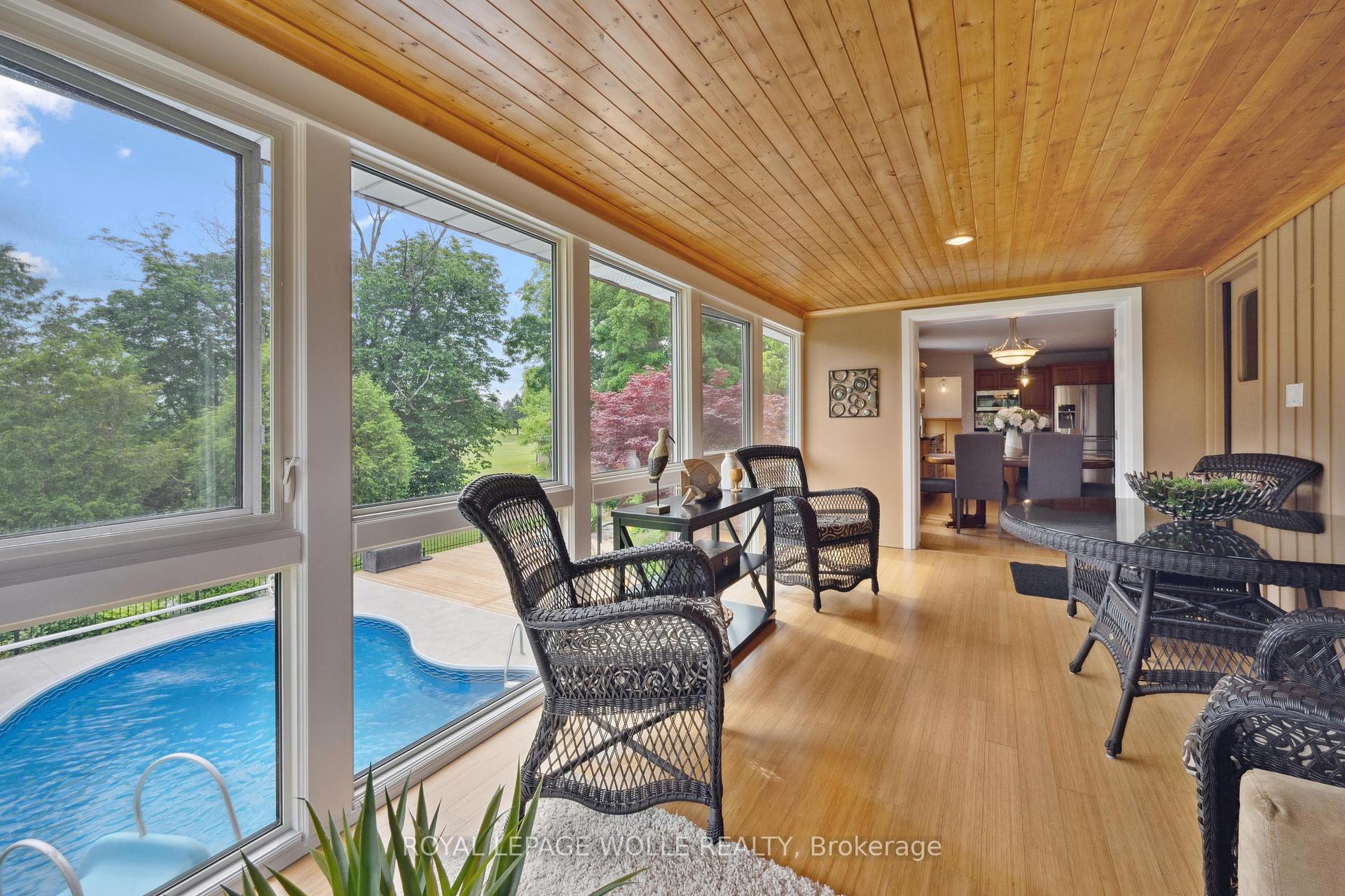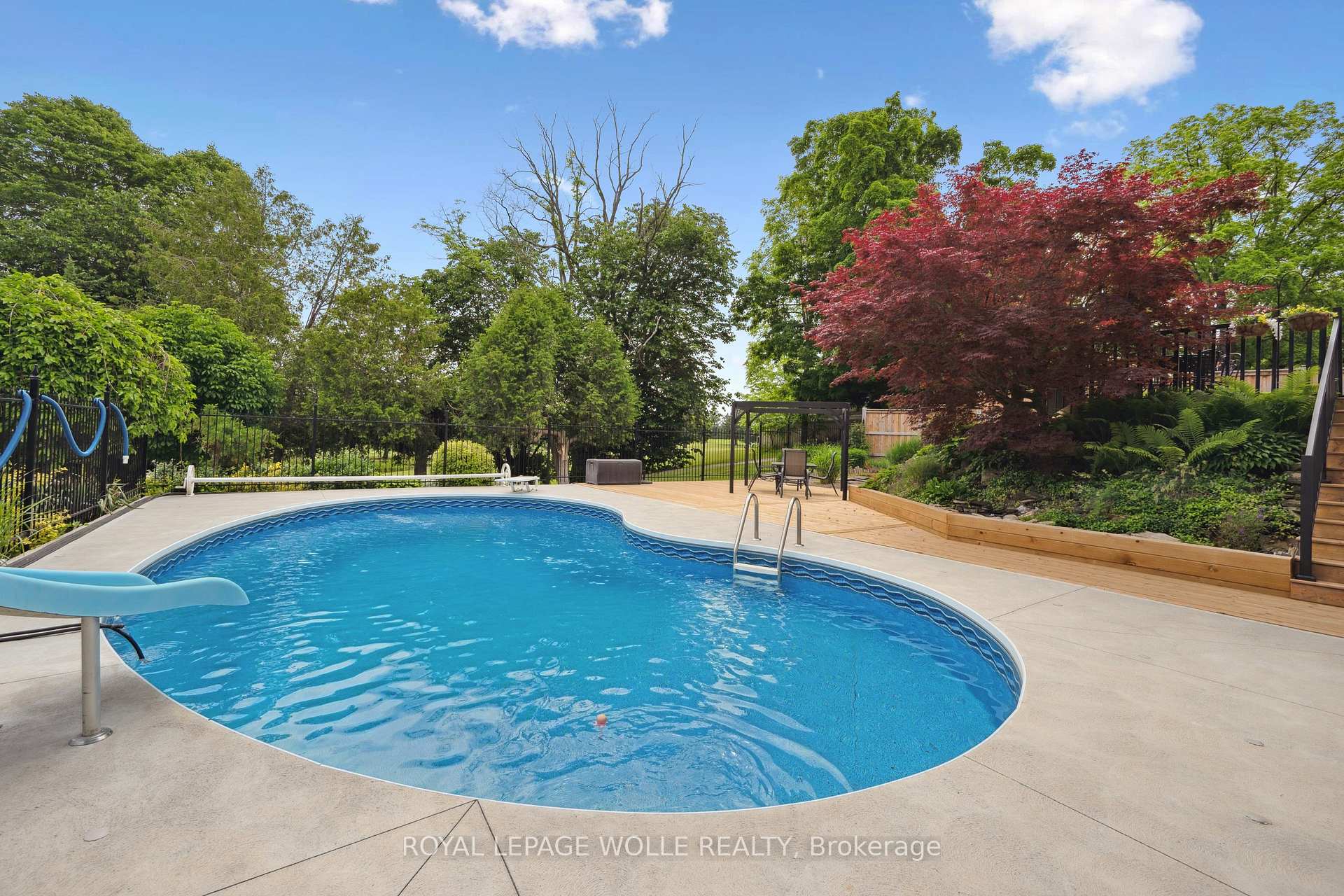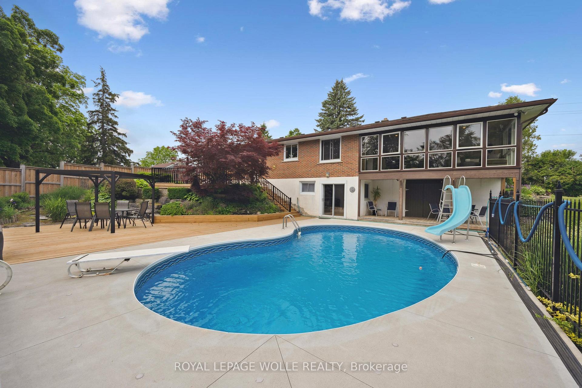 PRICED TO SELL!! What a spectacular CENTRALLY LOCATED property overlooking Brookfield Golf Course in Cambridge!! Welcome to 3850 Beaverdale Road. This amazing property is Boasting 1.78 acres with a river, golf course, great privacy and an inground pool all on the property. You just cant get views like this anywhere! Enjoy great curb appeal as you walk up your stamped concrete driveway with parking for several cars. As you enter this 3 bed 2 bath bungalow you will be impressed how all windows lead you to looking at your expansive view. The main floor is carpet free and is bright and open with an incredible 3 season sunroom. The walkout basement includes a bathroom, rec room, den and walks out to your inground pool area. Many important upgrades have been done on this property including the Septic tank and weeper (2015) , pool concrete patio and liner (2022), lower deck out back (2024) upper deck (2023), Hot water tank (25) ,Water softener (2023), Furnace (2021) Windows throughout (2006) sunroom windows (10-15yr) washing machine (2023) kitchen done (2004) New pressure tank for well (2025) Let your creativity begin on this solid brick bungalow which is move in ready or set to make it your own oasis!