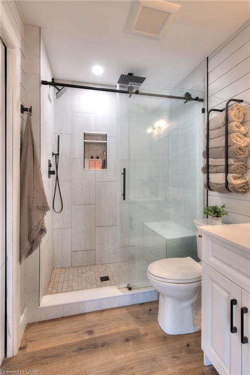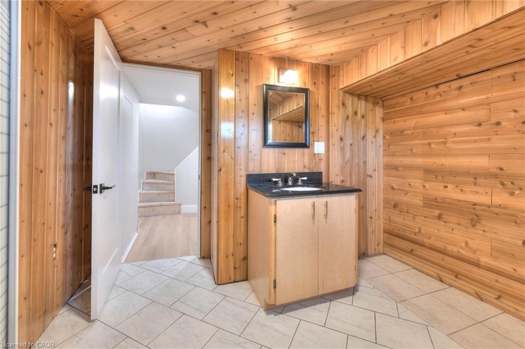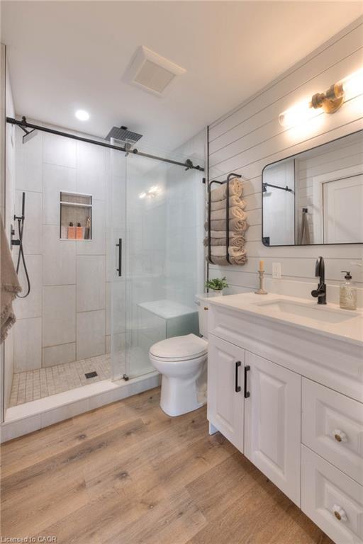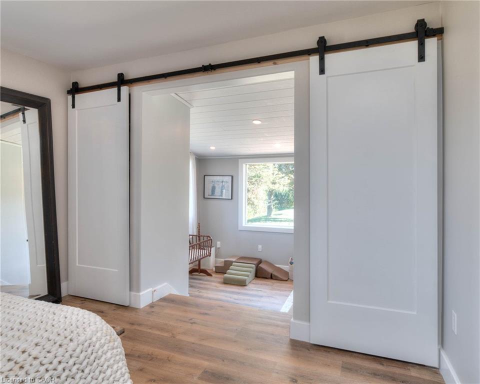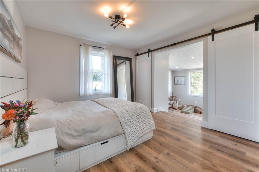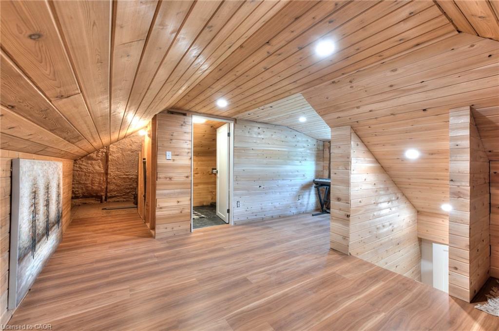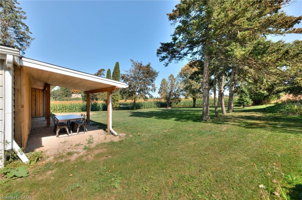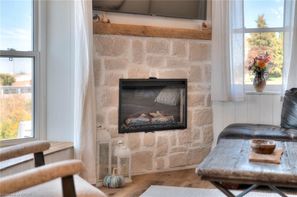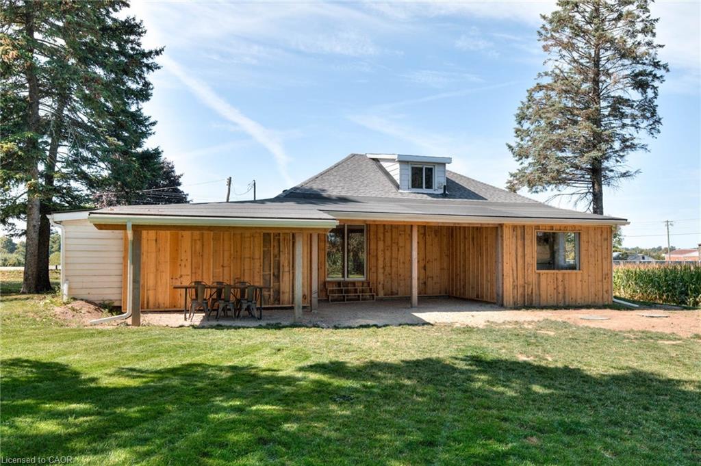 Enjoy the best of country living with modern comfort in this beautifully renovated home on a deep lot backing onto open fields. Mature trees frame the property, while expansive rural views create a peaceful backdrop just minutes from Elmira. The open-concept kitchen and living area centers the home; large enough to accommodate a dining table. Luxury vinyl plank floors run throughout, anchoring a renovated kitchen with stainless appliances, granite countertops, valance/toe-kick lighting, pot filler, and a large island. The adjoining living room features oversized windows and a stone fireplace with a Napoleon insert. A spacious primary bedroom has double closets and a stylish 3-piece bath with shiplap accents and a glass walk-in shower. A versatile bonus room finished with shiplap, large windows, and recessed lighting offers a playroom, nursery, or office with beautiful views. Convenient main-floor laundry/mud room makes everyday living a breeze. The second level is a warm, wood-clad retreat with endless possibilities. With pine ceilings, and a half bath, the loft works beautifully as a guest suite, studio, or bedroom. Downstairs extends your living space with a modern rec room, additional bedroom, and a second 3-piece bath. Updated finishes and recessed lighting create a fresh, comfortable atmosphere. Utility and storage areas complete the lower level. An extended covered rear patio offers shade and shelter for dining or relaxing while the sun sets over neighbouring fields. The attached garage and paved driveway provide ample parking and storage options. Recent updates include: septic tank (2025); main floor bathroom, backyard graded & seeded (2023); concrete driveway, roof, furnace and heat pump (2022); UV filtration system, newer windows, and spray foam insulation throughout. This move-in ready property is ideal for anyone looking to enjoy small-town peaceful living with style and comfort, but with the urban amenities of nearby Elmira only a short drive away.