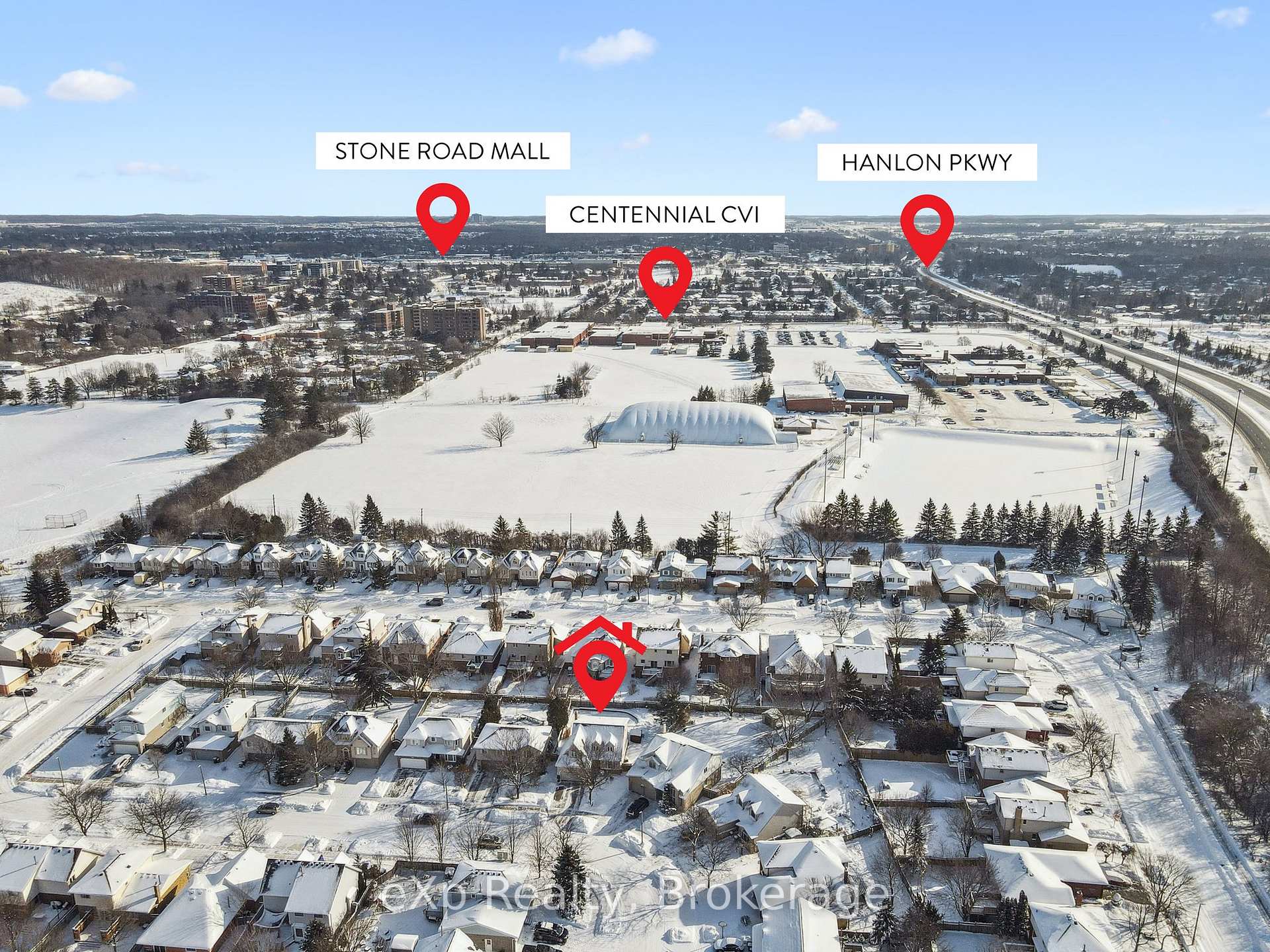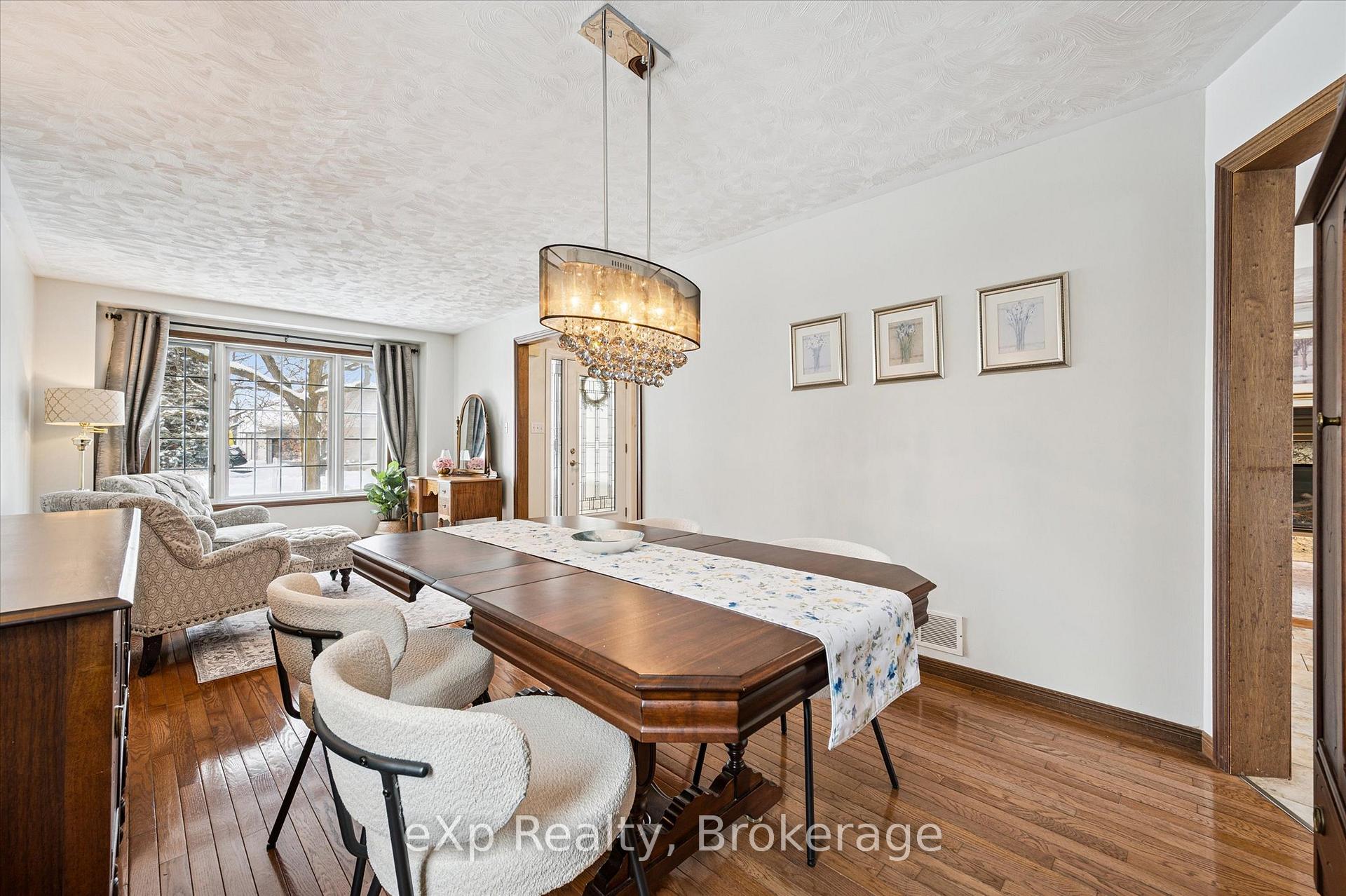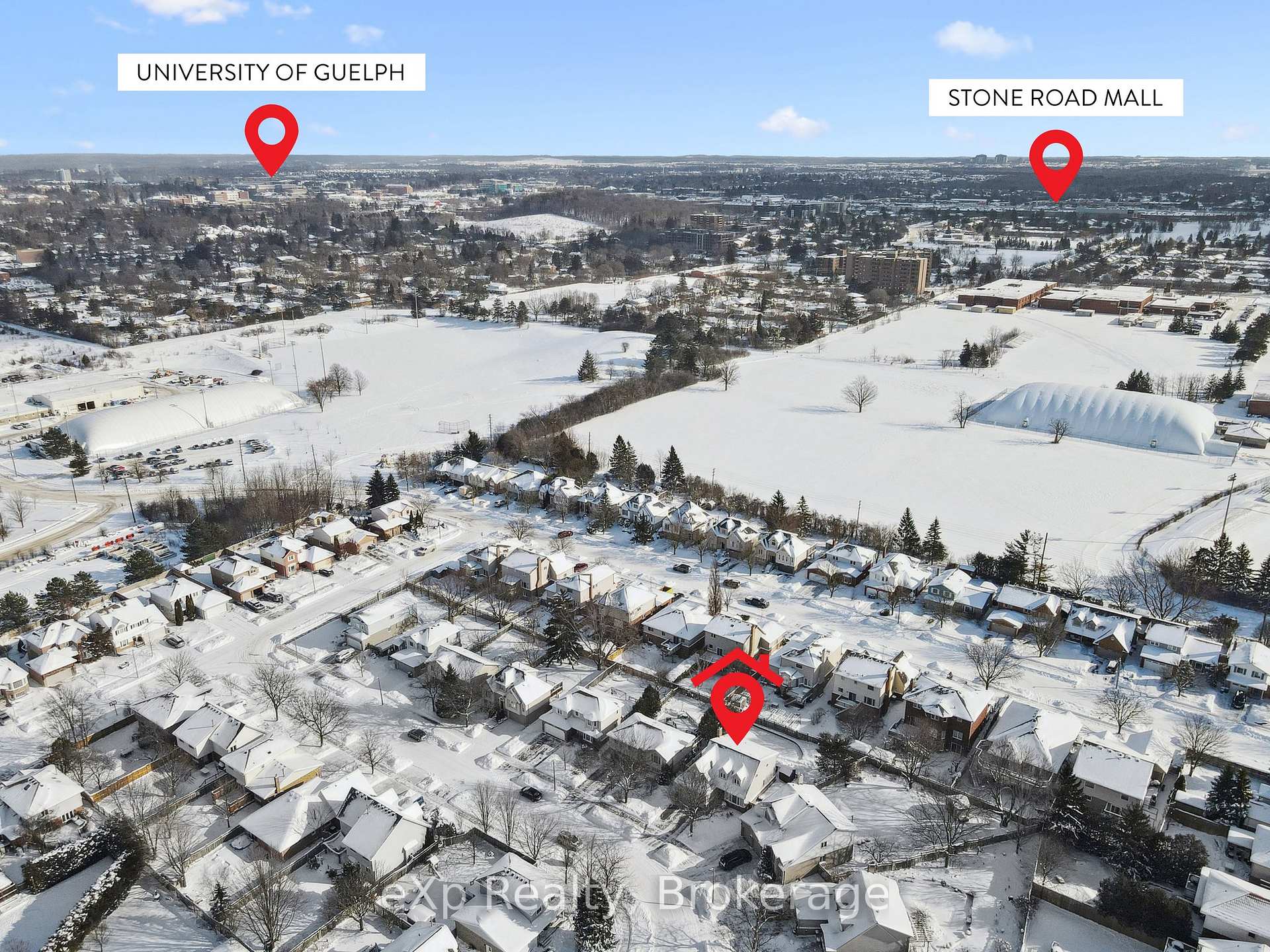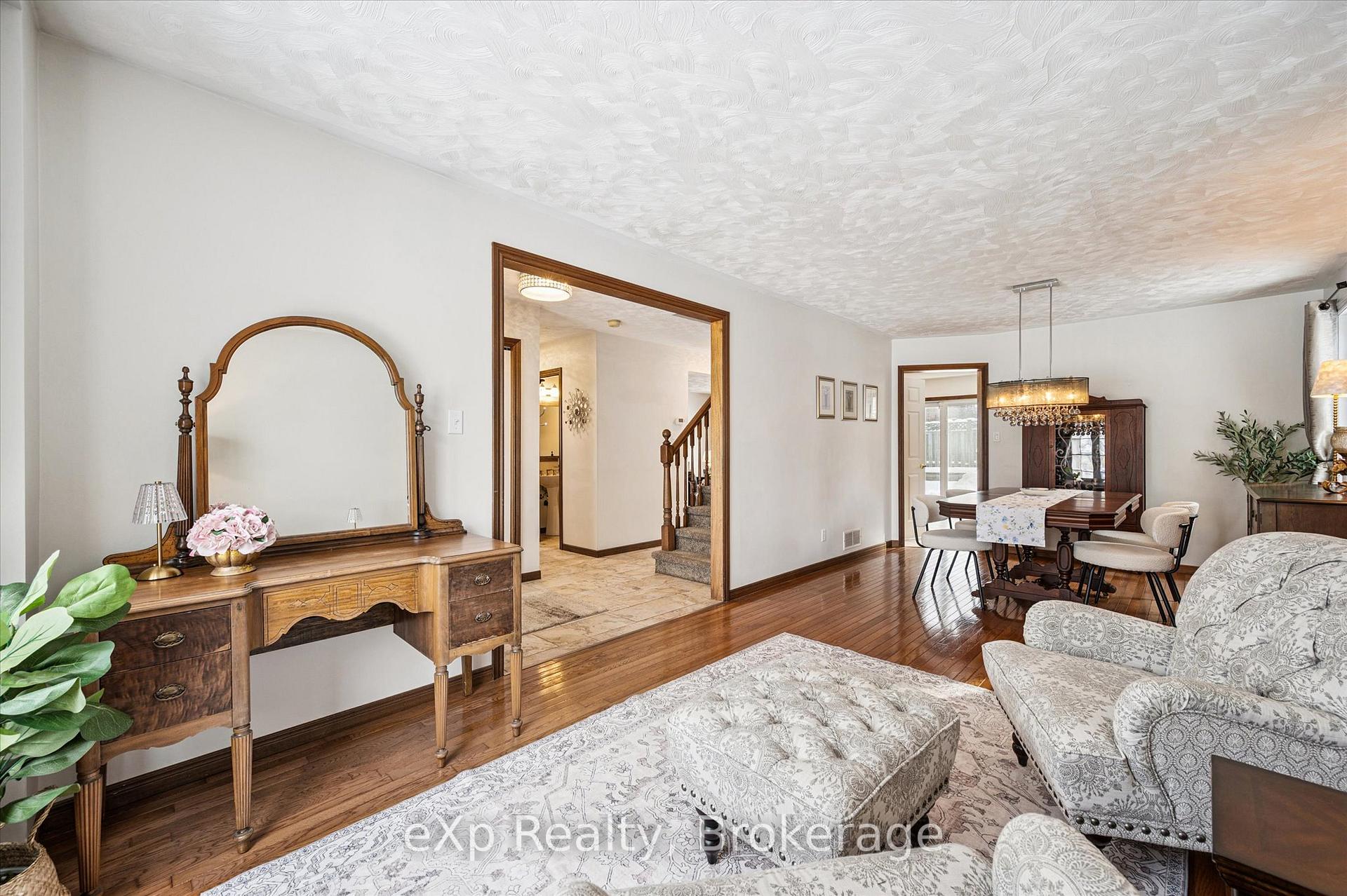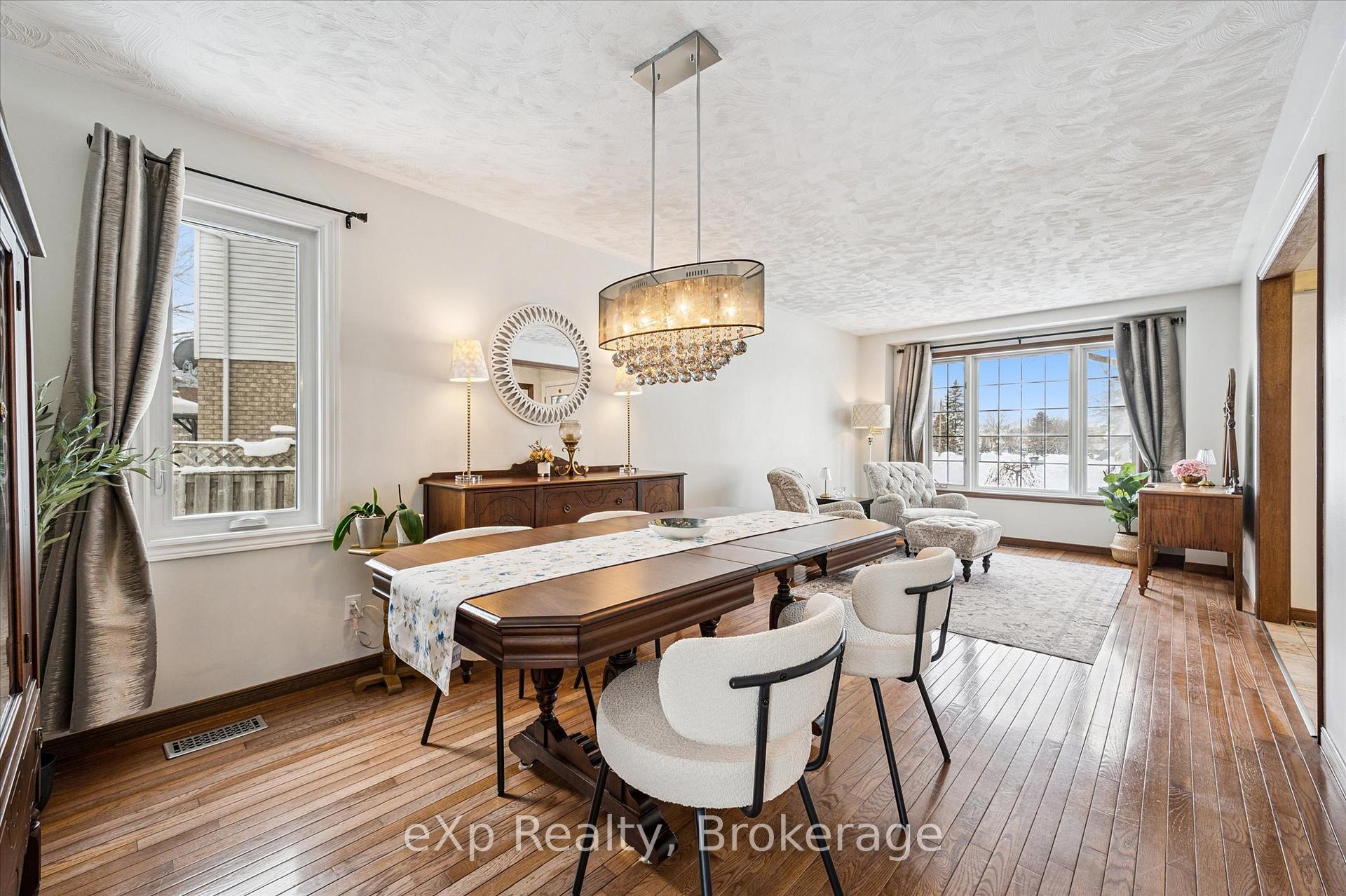 Located on a quiet crescent, this four-bedroom home with an inground pool is in search of its next family! Centrally located adjacent to Old University with easy highway access, yet surrounded by beautiful parks and walking trails along the river that lead right to downtown Guelph. Built by Thomasfield Homes, the front has great curb-appeal with its double car garage and stamped asphalt driveway. The backyard is pie shaped and has a 32×17 ft inground pool with concrete and interlock surround, a hot tub, plus ample grass for the kids or pets to play. The main floor has an updated kitchen and appliances including gas stove (2017), formal living room and dining room with hardwood flooring, a main level family room with gas fireplace, 2-piece bathroom plus a very convenient mudroom from the garage that also has hookups ready for main level laundry should you desire. Upstairs has four bedrooms and two bathrooms that were both updated in 2020. If you need more space, the basement is also finished with a large family room. Other notable updates: Roof and eaves (2024), most windows, flooring and carpet (2017), pool equipment and liner (2014), hot tub, patio door, gas fireplace (2013), furnace and AC (2009). You won’t find many four-bedroom homes with inground pools in this price point, schedule a private viewing today!