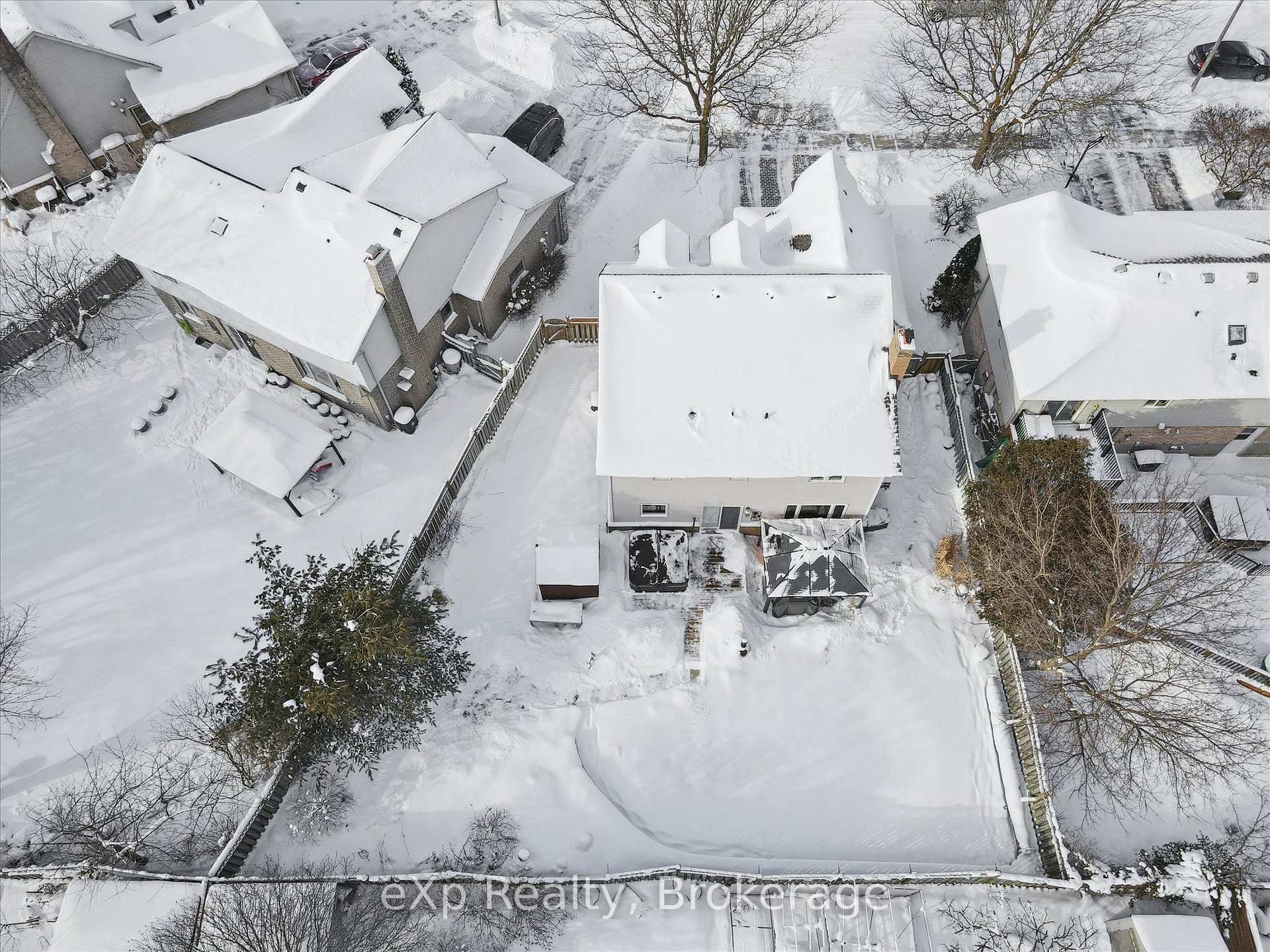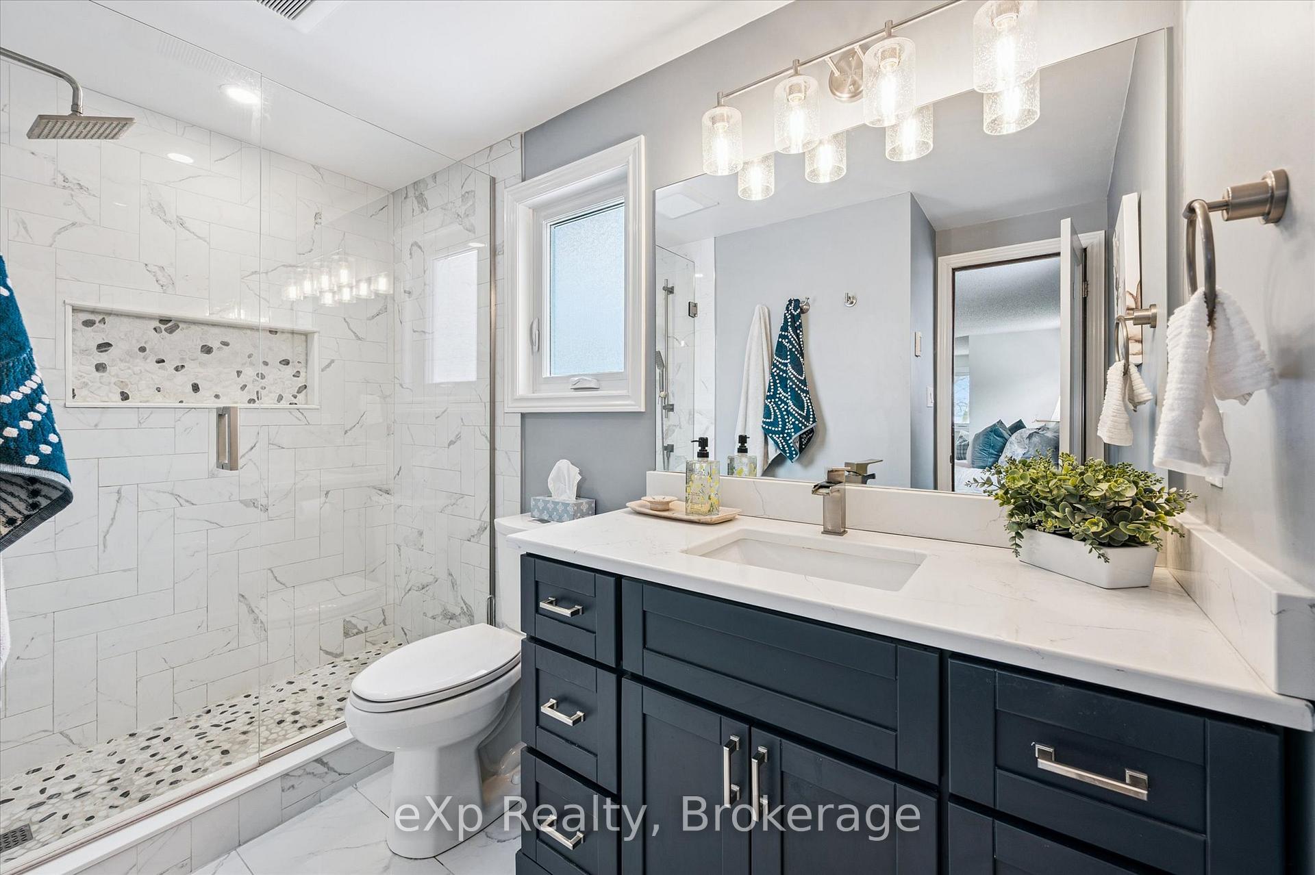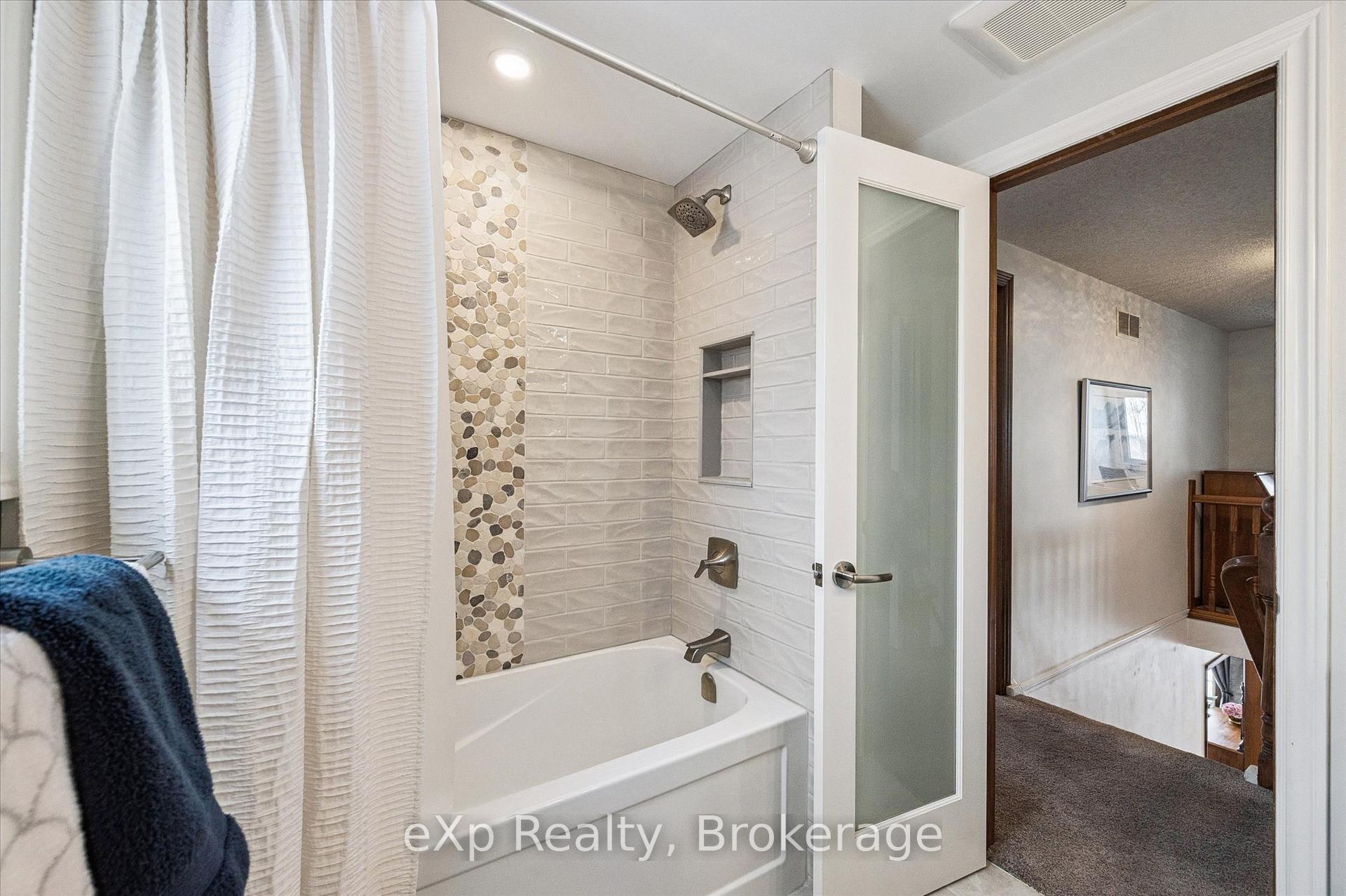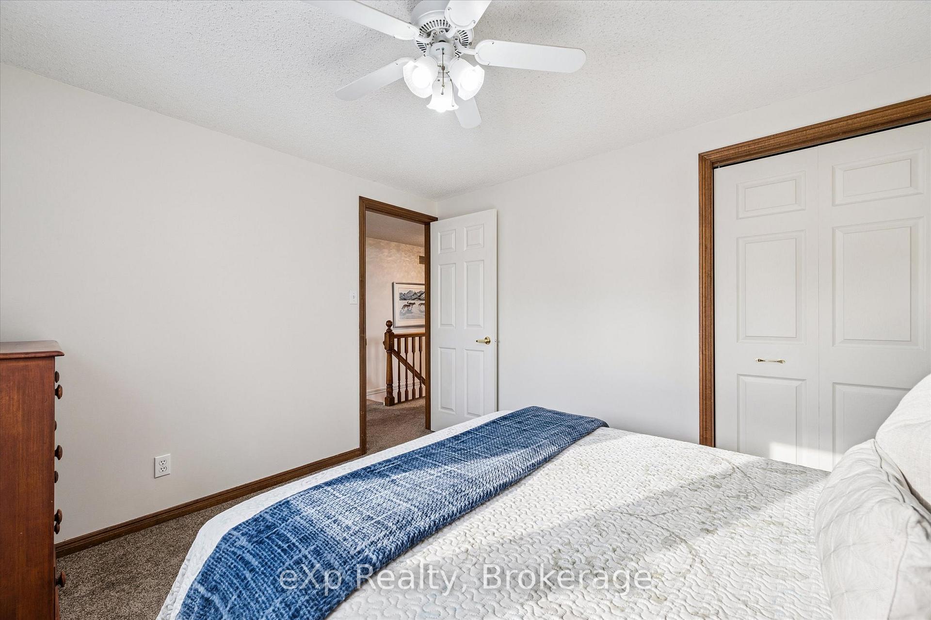 Located on a quiet crescent, this four-bedroom home with an inground pool is in search of its next family! Centrally located adjacent to Old University with easy highway access, yet surrounded by beautiful parks and walking trails along the river that lead right to downtown Guelph. Built by Thomasfield Homes, the front has great curb-appeal with its double car garage and stamped asphalt driveway. The backyard is pie shaped and has a 32×17 ft inground pool with concrete and interlock surround, a hot tub, plus ample grass for the kids or pets to play. The main floor has an updated kitchen and appliances including gas stove (2017), formal living room and dining room with hardwood flooring, a main level family room with gas fireplace, 2-piece bathroom plus a very convenient mudroom from the garage that also has hookups ready for main level laundry should you desire. Upstairs has four bedrooms and two bathrooms that were both updated in 2020. If you need more space, the basement is also finished with a large family room. Other notable updates: Roof and eaves (2024), most windows, flooring and carpet (2017), pool equipment and liner (2014), hot tub, patio door, gas fireplace (2013), furnace and AC (2009). You won’t find many four-bedroom homes with inground pools in this price point, schedule a private viewing today!