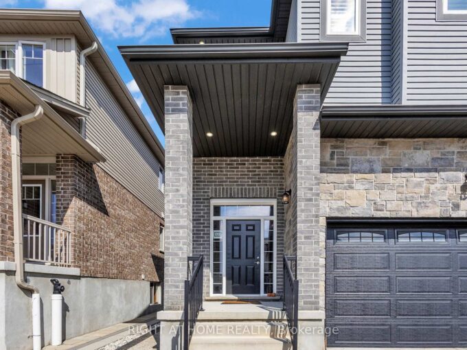 Stunning 2023 Bronte Model by Tribute Homes in the Heart of Fergus. Welcome to this exceptional 2023 Bronte model, expertly crafted by Tribute Homes and located in the picturesque town of Fergus, renowned for its rich heritage and the annual Highland Games. This beautifully designed residence combines modern comfort, thoughtful layout, and timeless appeal. Offering 3 bedrooms and 3 bathrooms, this move-in-ready home is tailored for contemporary living. The main floor showcases 9-foot ceilings, enhancing the sense of space and natural light throughout. The modern kitchen features stainless steel appliances, a large breakfast island with seating for two, and patio doors opening directly to the backyard — ideal for entertaining or family gatherings. The inviting great room is highlighted by a gas fireplace and rear yard views, while a dedicated dining area and convenient powder room complete the main level. Upstairs, the primary suite offers a private retreat with a spacious walk-in closet and a 4-piece ensuite. Two additional well-appointed bedrooms share a second 4-piece bathroom, providing ample space for family or guests. The unfinished basement and 200-amp electrical service offer excellent potential for future customization — whether you envision a recreation room, home office, gym, or additional storage. A single-car garage and private driveway accommodating a second vehicle add to the home’s practicality. Perfect for families, first-time buyers, or anyone seeking a turnkey property, this home is ideally located within walking distance of local parks, and only minutes from schools, shopping, dining, and essential amenities. Historic downtown Fergus is a short drive away, while Elora Gorge and Belwood Lake Conservation Area provide endless opportunities for outdoor recreation. Enjoy the charm and community spirit of small-town living with the convenience of an easy commute to Guelph, Kitchener-Waterloo, Cambridge, and the GTA.