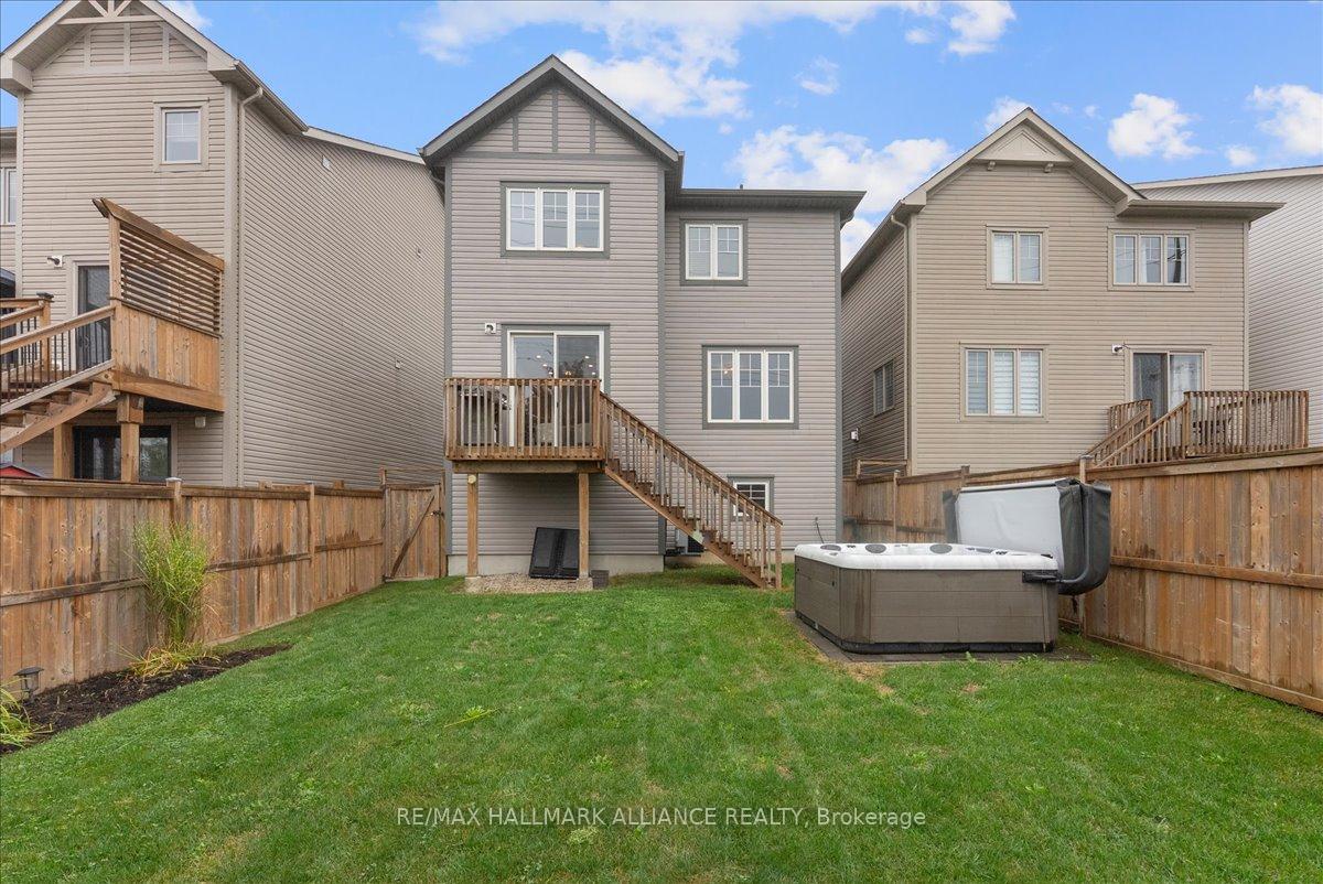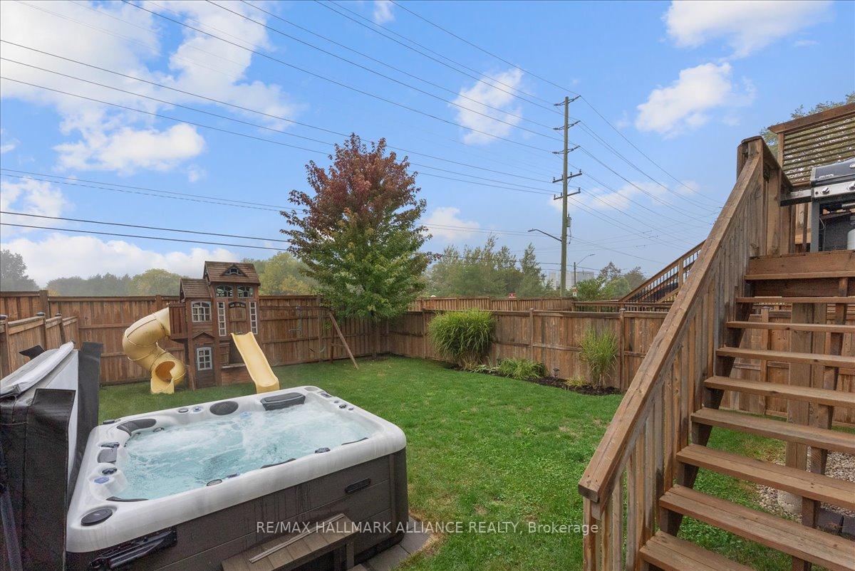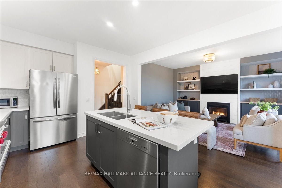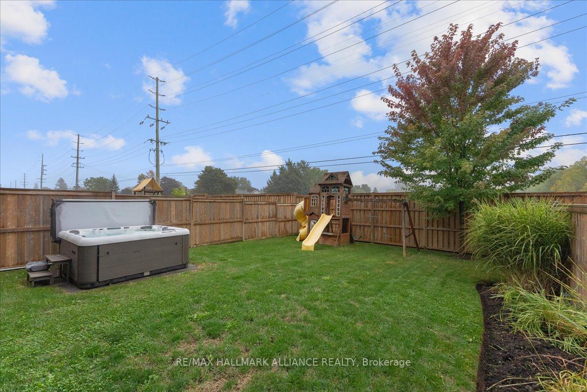 Step into comfort and style in this beautifully upgraded 4-bedroom, 3-bath detached home in Fergus. Backing onto the peaceful green space of Forfar Park and just steps from the Elora Cataract Trail, this home offers the perfect blend of nature and modern living.The main floor features an open-concept layout with 9-foot ceilings, rich hardwood flooring, oak staircase and striking custom woodwork throughout. The chefs kitchen stands out with sleek tuxedo-style cabinetry, premium finishes, Wolf Gas Stove, and a functional design ideal for entertaining. Gather in the family room around the cozy gas fireplace, framed by custom built-in’s and flooded with natural light. Upstairs, four generously sized bedrooms provide ample closet space and plush broadloom, with the primary suite offering a luxurious 5-piece ensuite with soaker tub, double vanity, and walk-in shower. The unfinished basement offers endless potential – whether you’re dreaming of a home gym, recreation space, or in-law suite, it’s a blank canvas ready for your personal touch. Step outside to your own backyard retreat, featuring a hot tub, children’s play area, and lush green space with no rear neighbours!