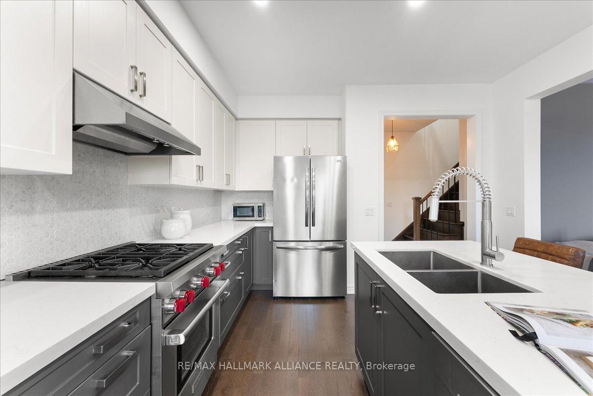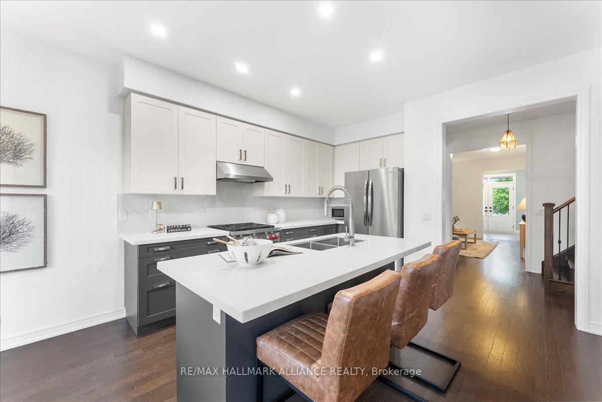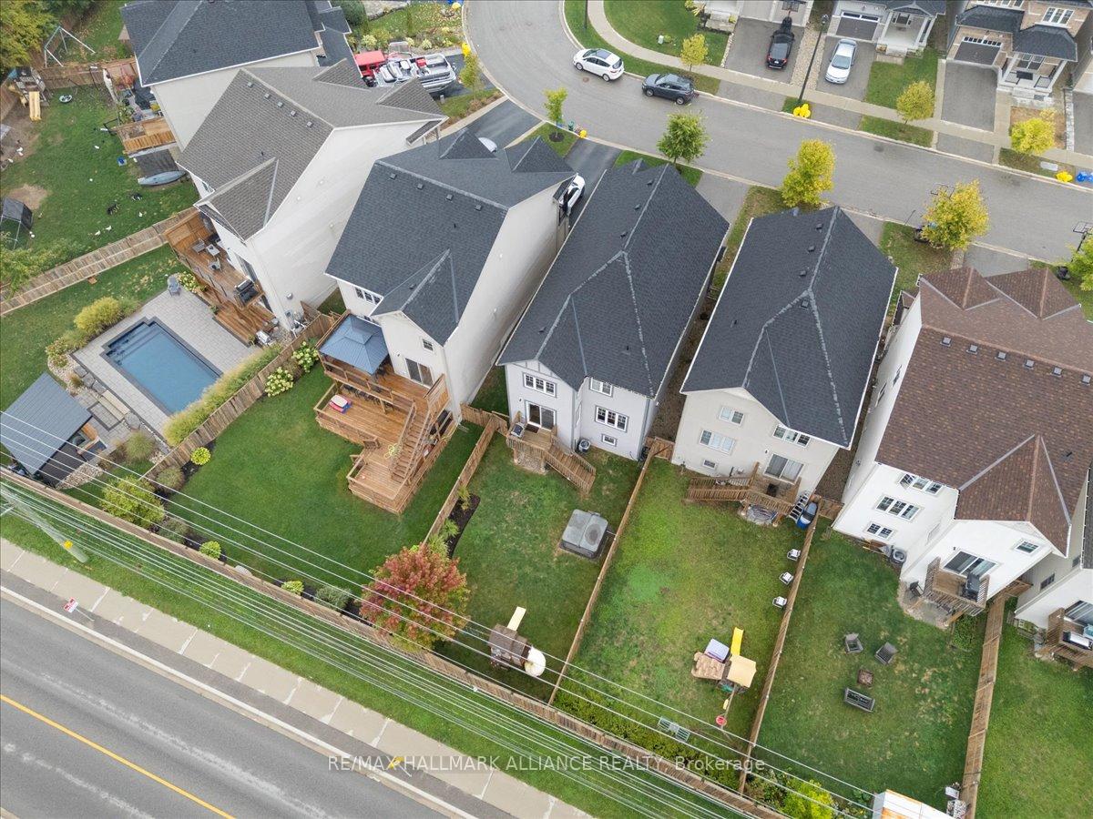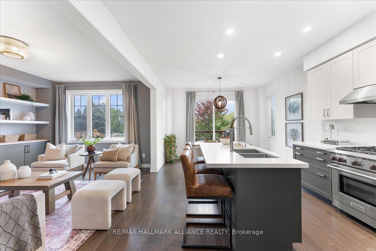 Step into comfort and style in this beautifully upgraded 4-bedroom, 3-bath detached home in Fergus. Backing onto the peaceful green space of Forfar Park and just steps from the Elora Cataract Trail, this home offers the perfect blend of nature and modern living.The main floor features an open-concept layout with 9-foot ceilings, rich hardwood flooring, oak staircase and striking custom woodwork throughout. The chefs kitchen stands out with sleek tuxedo-style cabinetry, premium finishes, Wolf Gas Stove, and a functional design ideal for entertaining. Gather in the family room around the cozy gas fireplace, framed by custom built-in’s and flooded with natural light. Upstairs, four generously sized bedrooms provide ample closet space and plush broadloom, with the primary suite offering a luxurious 5-piece ensuite with soaker tub, double vanity, and walk-in shower. The unfinished basement offers endless potential – whether you’re dreaming of a home gym, recreation space, or in-law suite, it’s a blank canvas ready for your personal touch. Step outside to your own backyard retreat, featuring a hot tub, children’s play area, and lush green space with no rear neighbours!