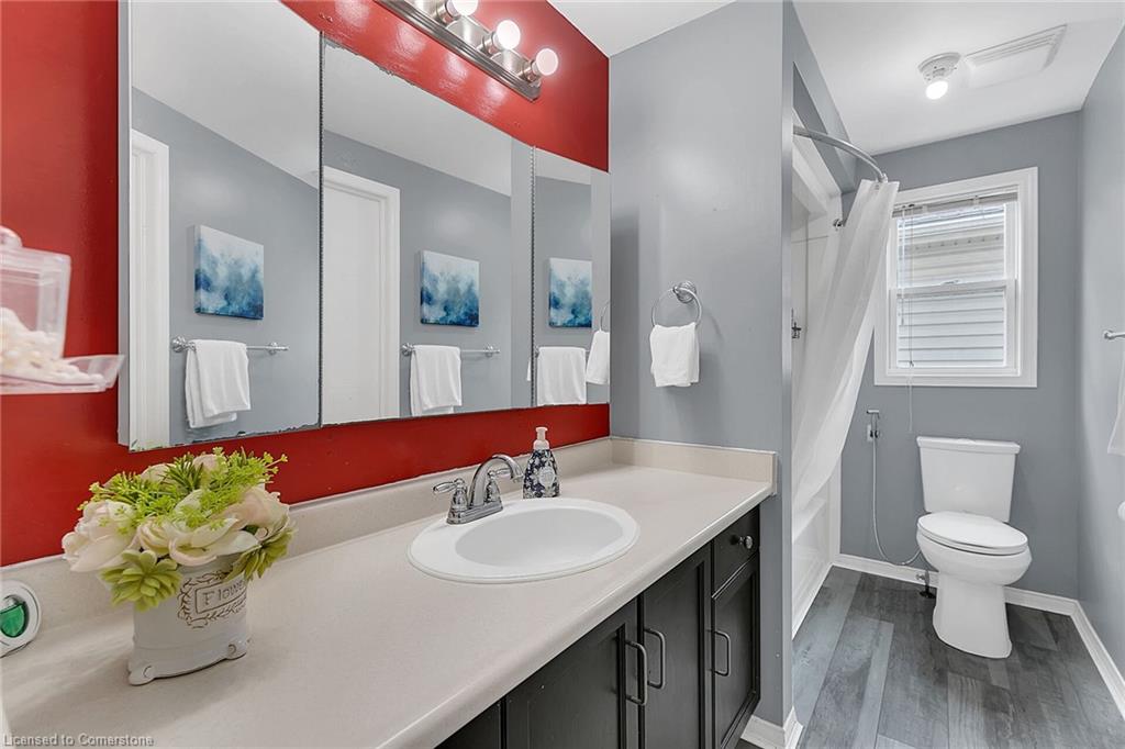 Welcome to 39 McMeekan Drive! Walk into this stunning detached home and it’ll be love at first sight! Move-in ready with over 2,000 sqft of living space. Boasting large windows and laminate flooring throughout. As you enter, you’ll have a powder room and access to the attached single-car garage. Stepping further inside to the eat-in kitchen, complete with stainless steel appliances and ample storage space. The sunken living room is spacious and the perfect space for entertaining! Sliding doors lead to your large private, fully fenced yard. Relish the winter as you sit by the fireplace watching the snowfall, or enjoy the summer sun with a BBQ on your deck! Upstairs, you’ll find 2 great-sized bedrooms and laundry. The master bedroom features double closets and en-suite access to the 4-piece bathroom. The finished basement offers you even more to work with, complete with a rec-room, den and 2-piece bathroom. Located in the quiet and desirable Hespeler area of Cambridge. A family-friendly area walking distance to Sault Park and many more parks; close to trails, schools, many amenities and the 401. Don’t miss out on the opportunity to call this house your new home! Schedule a safe and private viewing today.