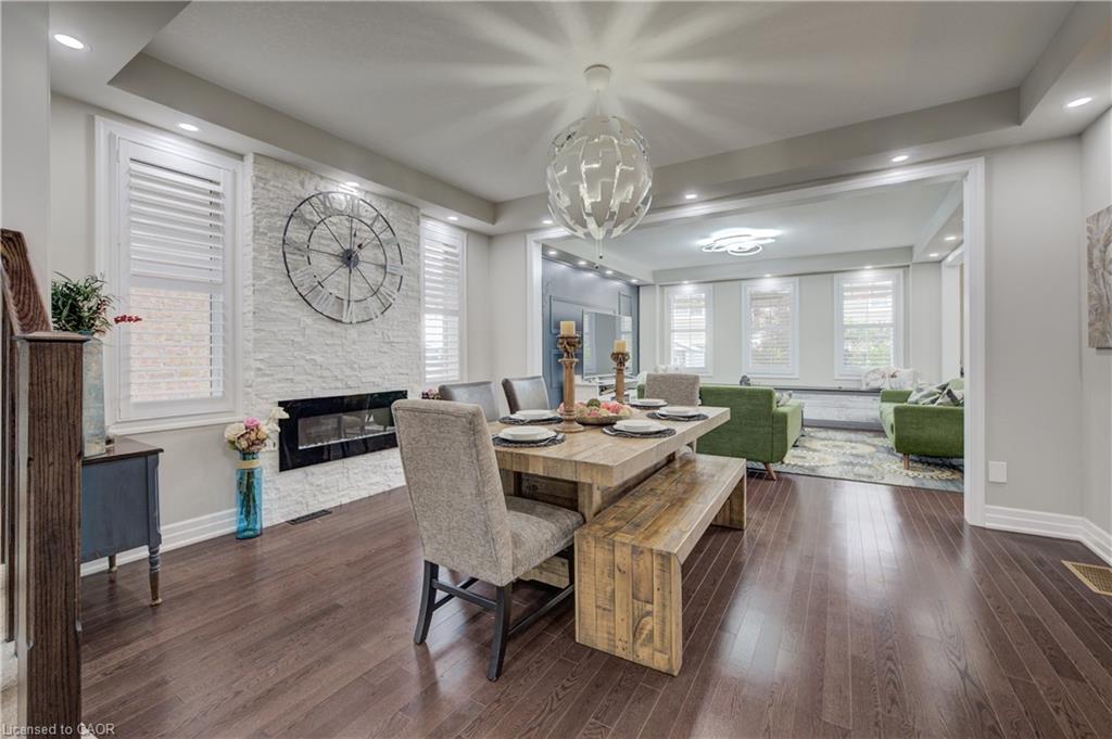 A SHOWSTOPPER ON THE INSIDE AND OUT. IMMEDIATELY EVERY BUYER WILL APPRECIATE THE EXTERIOR WORK THAT MAKES THIS ONE OF THE BEST IN THE NEIGHBORHOOD. Beautiful 4 Bedroom, 4 Bathroom Home with In-Law Potential Welcome to this spacious and modern family home offering 4 bedrooms, 4 bathrooms, and a versatile layout with in-law capability. The main level features an inviting open-concept design, highlighted by an electric fireplace feature wall in the dining room, a dedicated tucked away, cozy office space, and a seamless flow between the kitchen and living room. The stunning eat-in kitchen is a cooking lover’s dream, showcasing sleek dark cabinetry, stainless steel appliances, ample cabinet and countertop space, and room for a cozy breakfast table beside the sliding doors that lead to the backyard. Upstairs, you’ll find all 4 bedrooms conveniently located, along with a laundry area for added ease. The primary suite offers a generous layout with a walk-in closet and a luxurious 4-piece ensuite featuring a glass stand-up shower, soaker tub, and dual sinks. Two additional bathrooms complete the second level. The partially finished basement includes a second kitchen, with plenty of space to design a potential in-law suite, storage, or additional living areas to suit your needs.